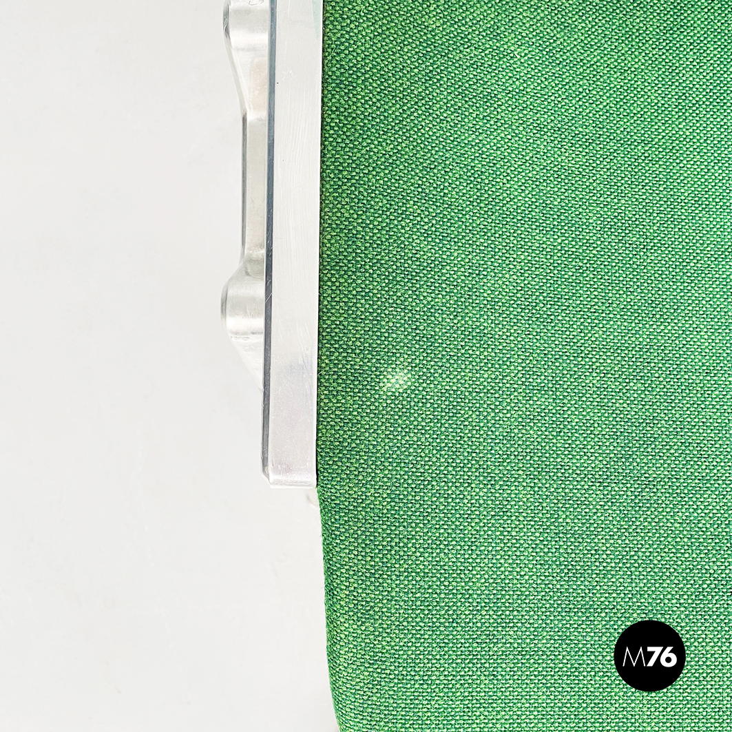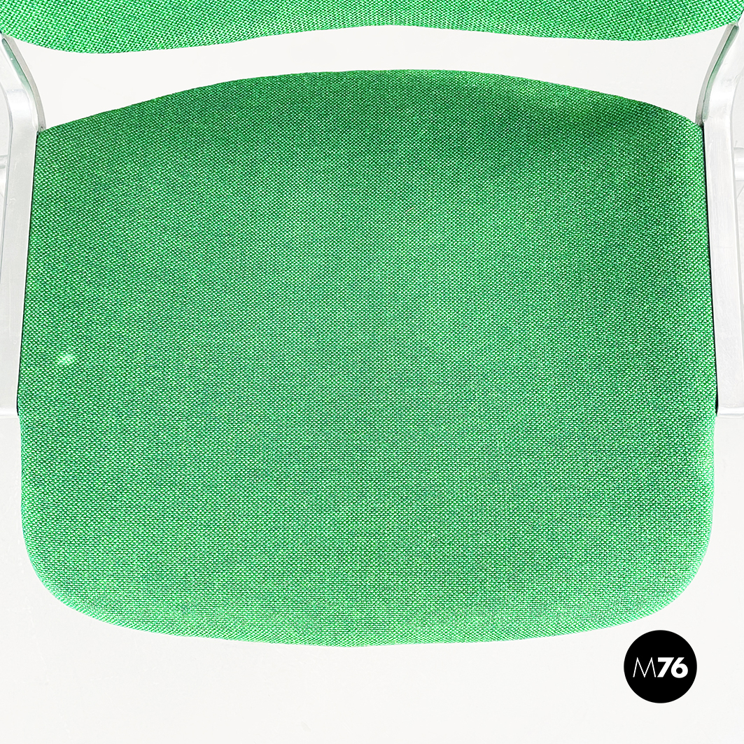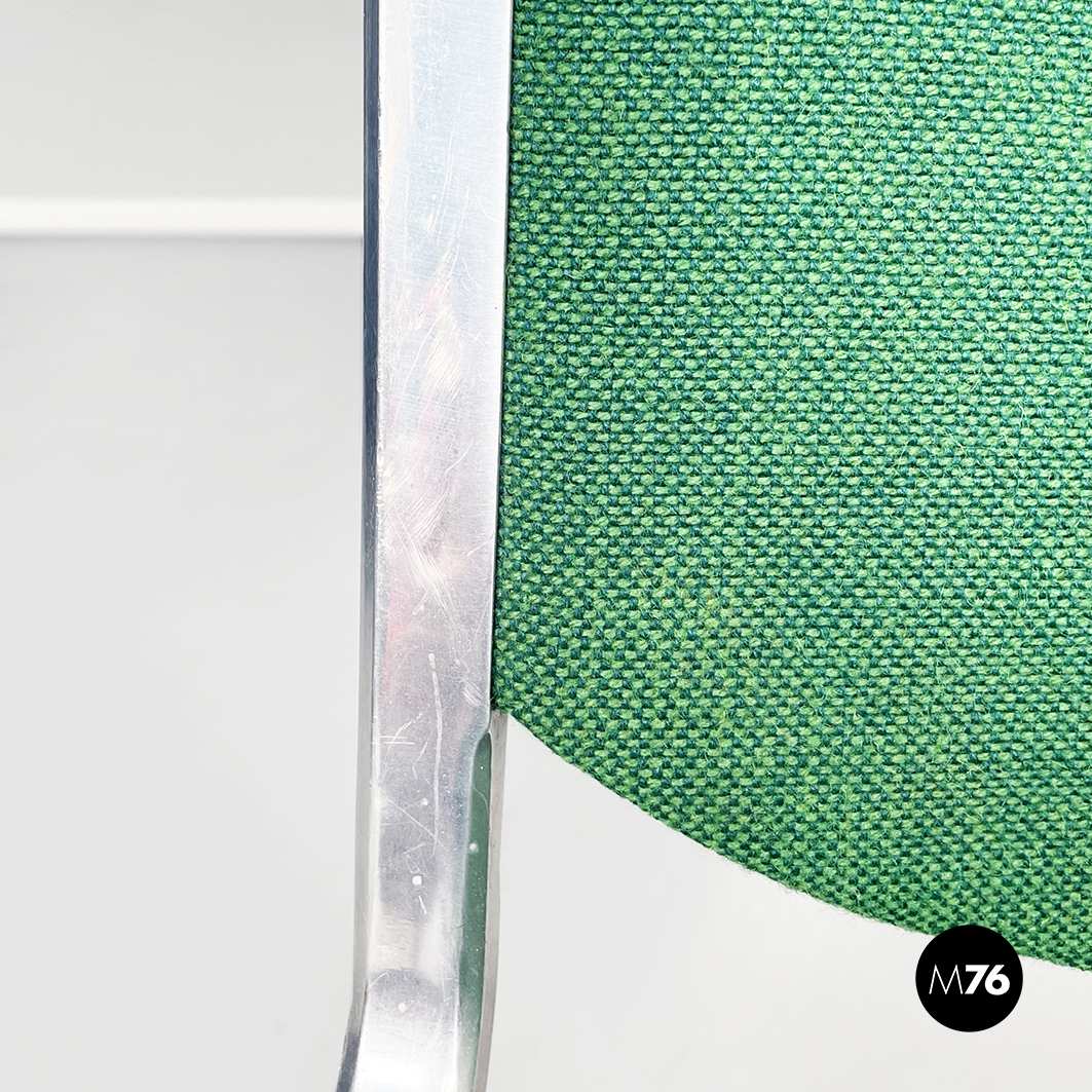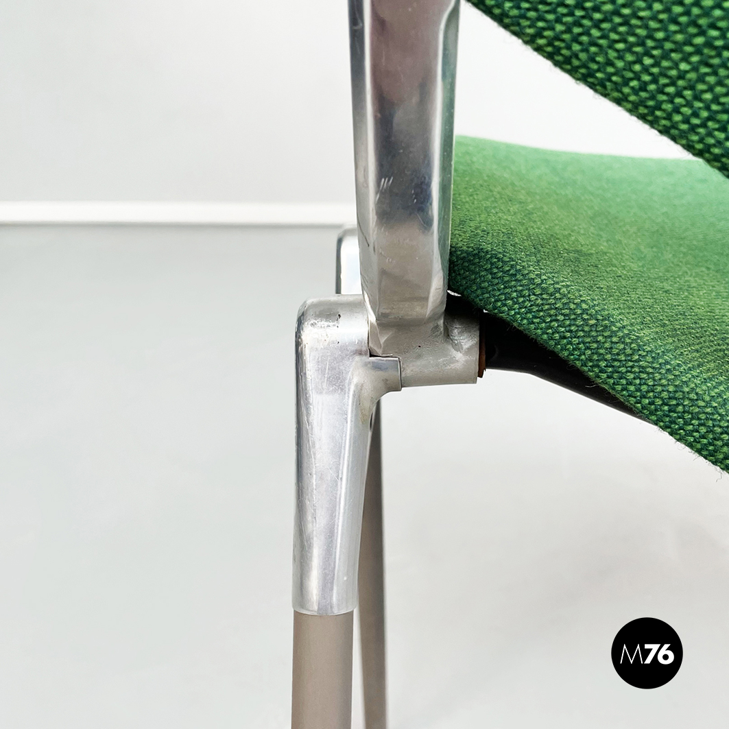 Sedia modello DSC con seduta e schienale di forma stondata e rivestiti in tessuto verde brillante. La struttura robusta è in allumininio con gambe a sezione tonda rivestite in plastica grigia.