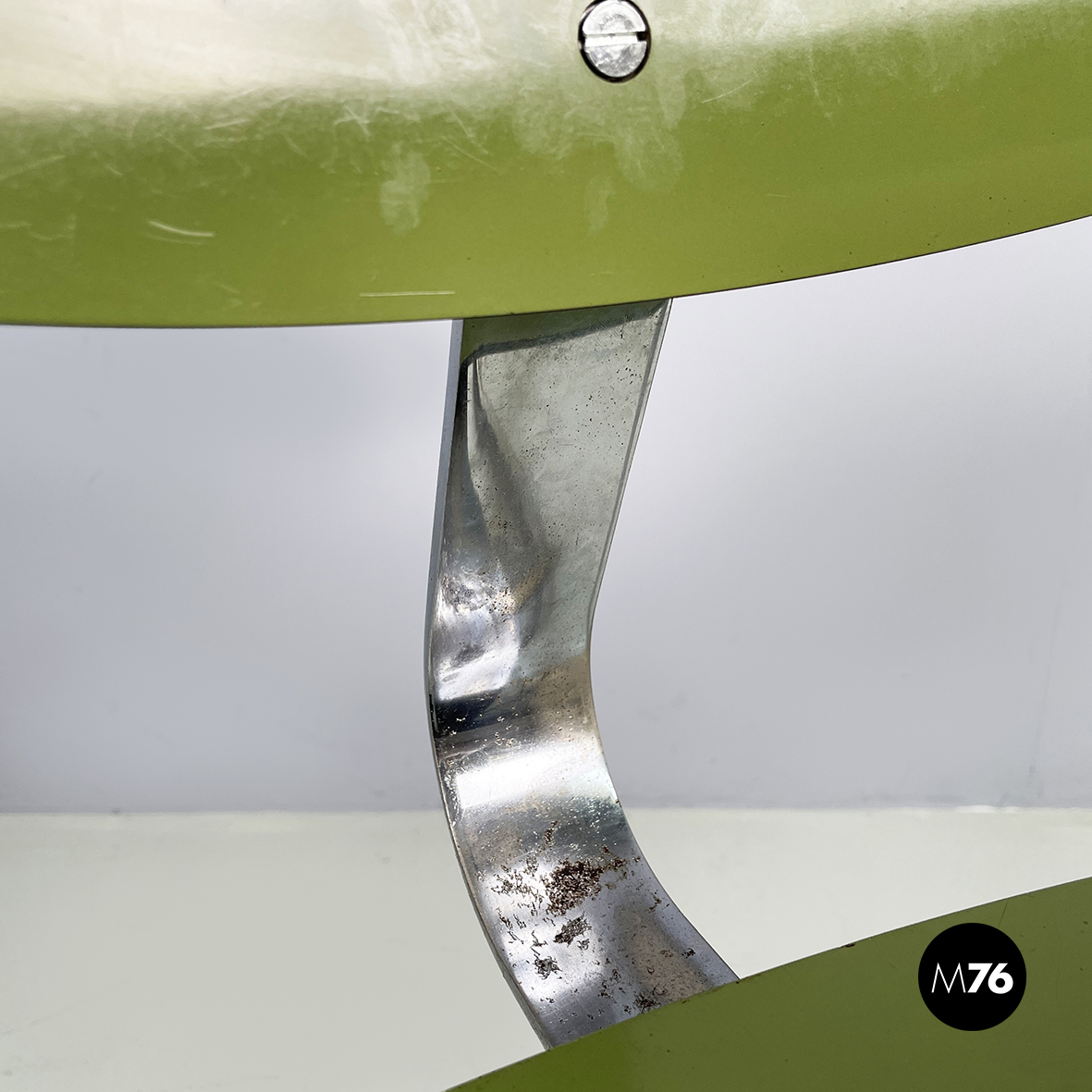 Buone condizioni. Piccole mancanze di colore alla formica. Il metallo presenta segni del tempo e di ossidazione.