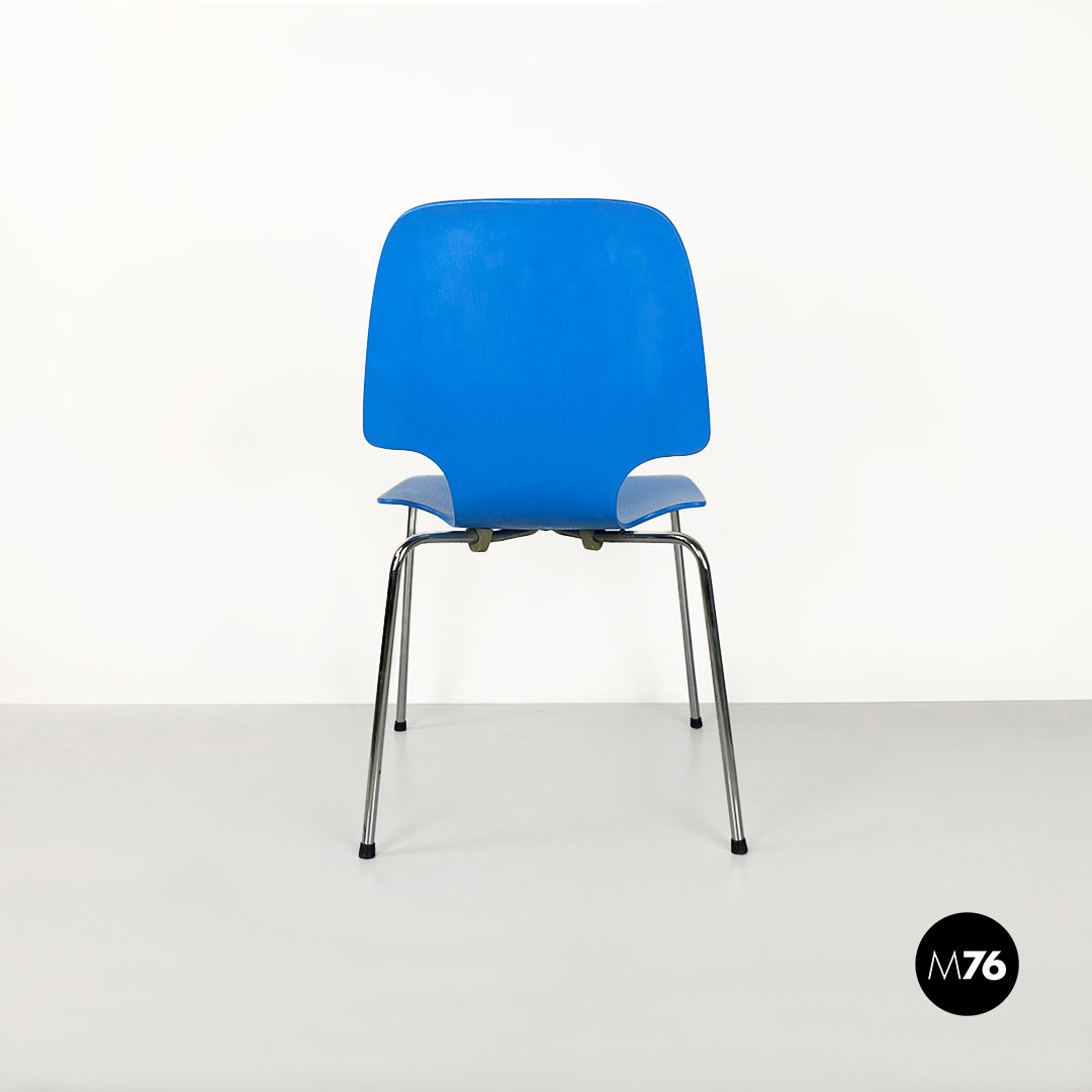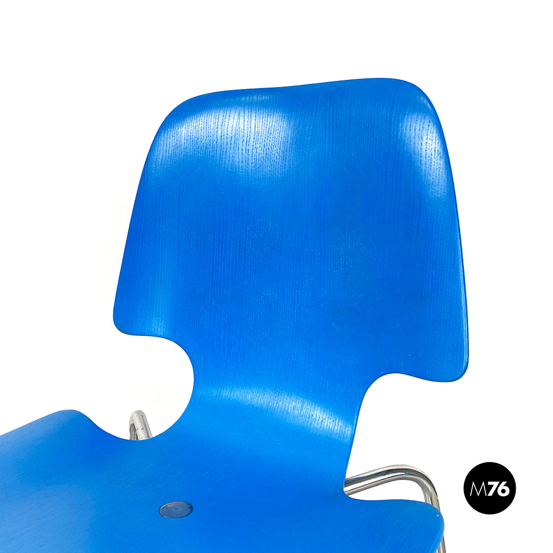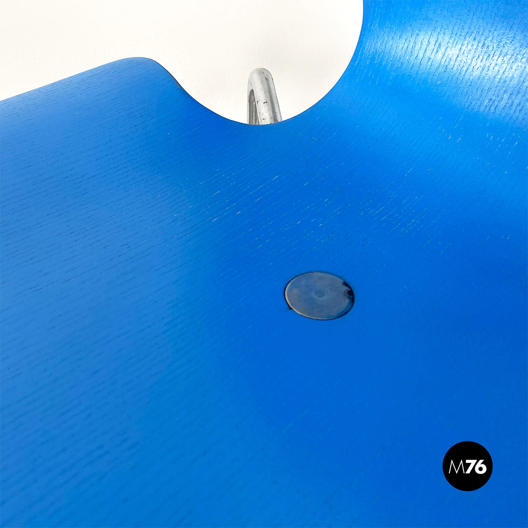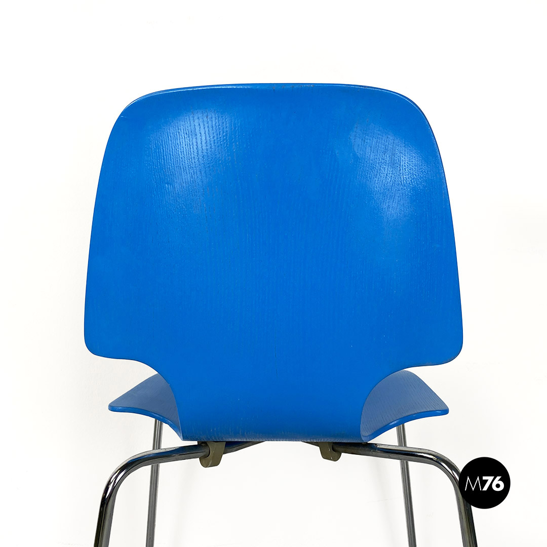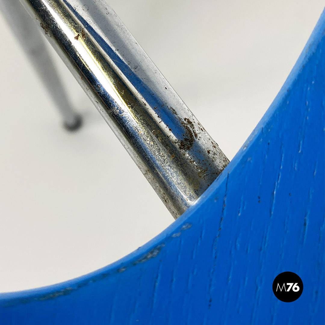 Sedia in legno curvato azzurro e acciaio, 1960 ca.