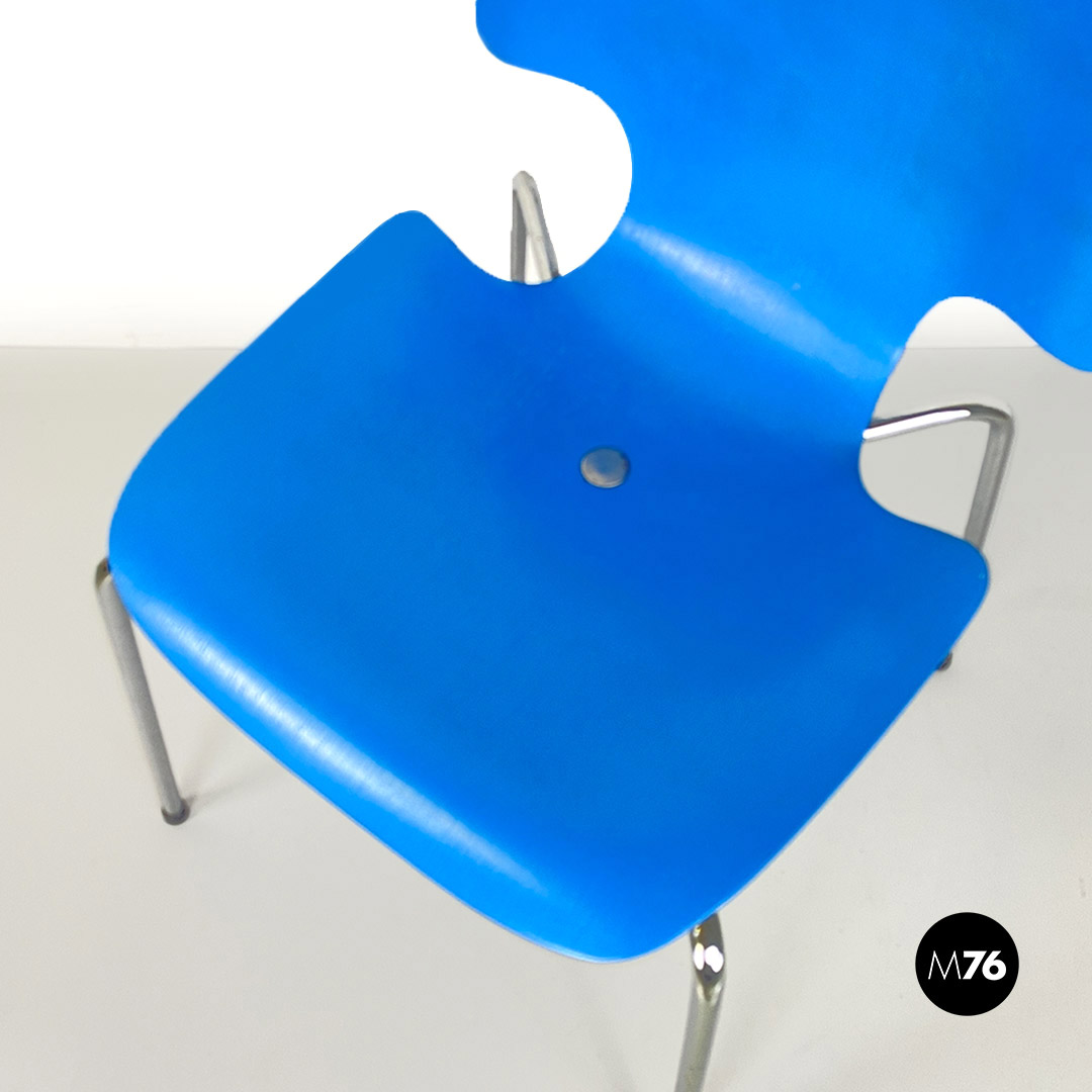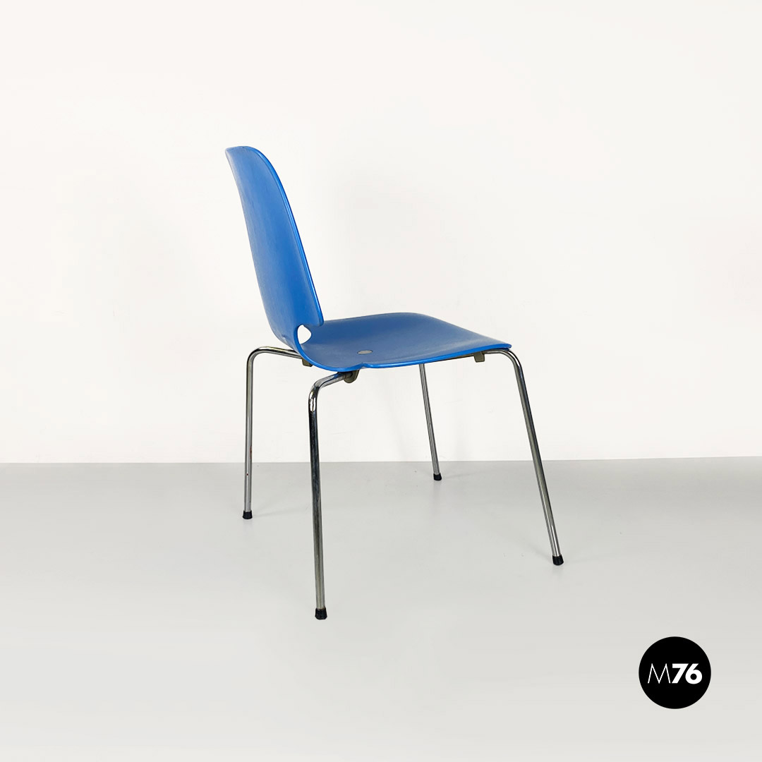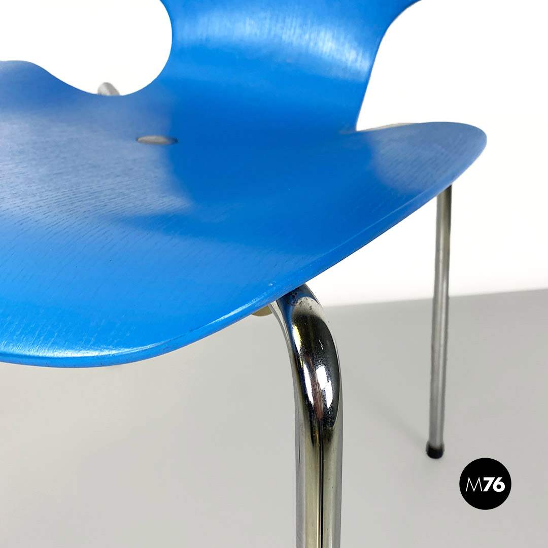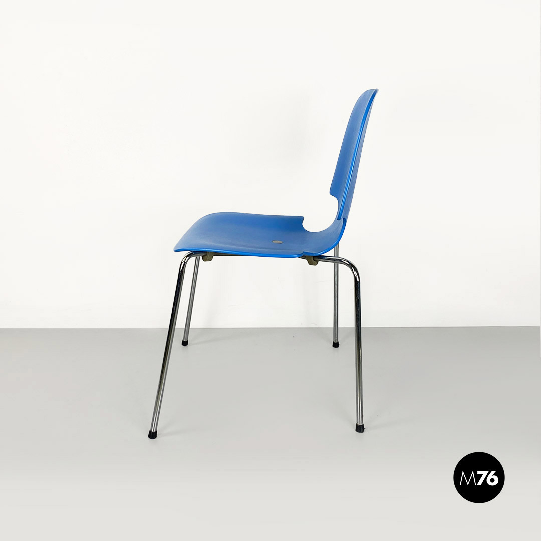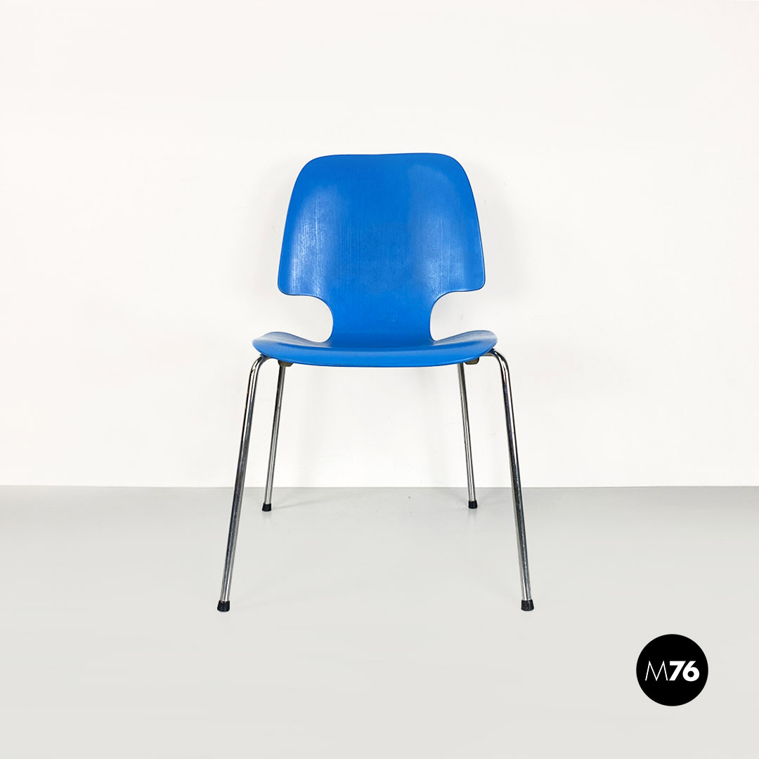Sedia in legno curvato azzurro e acciaio, 1960 ca.