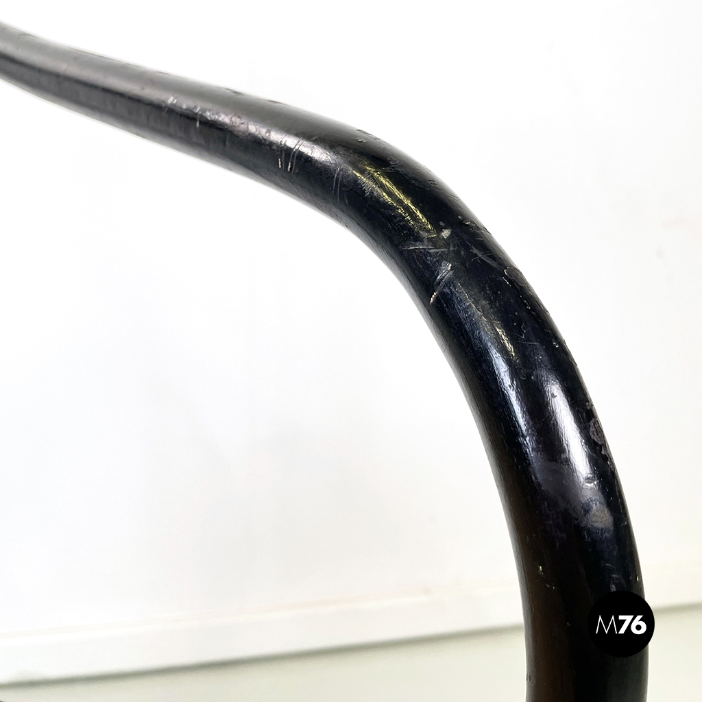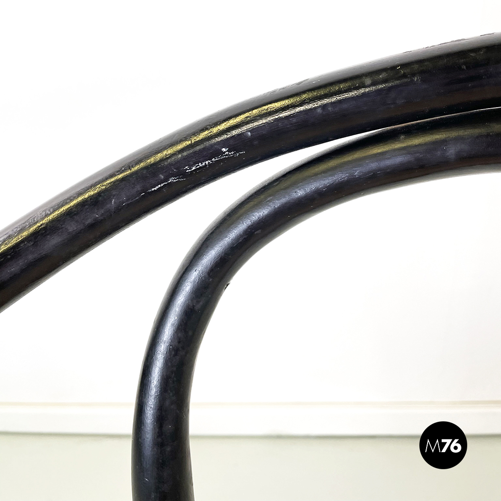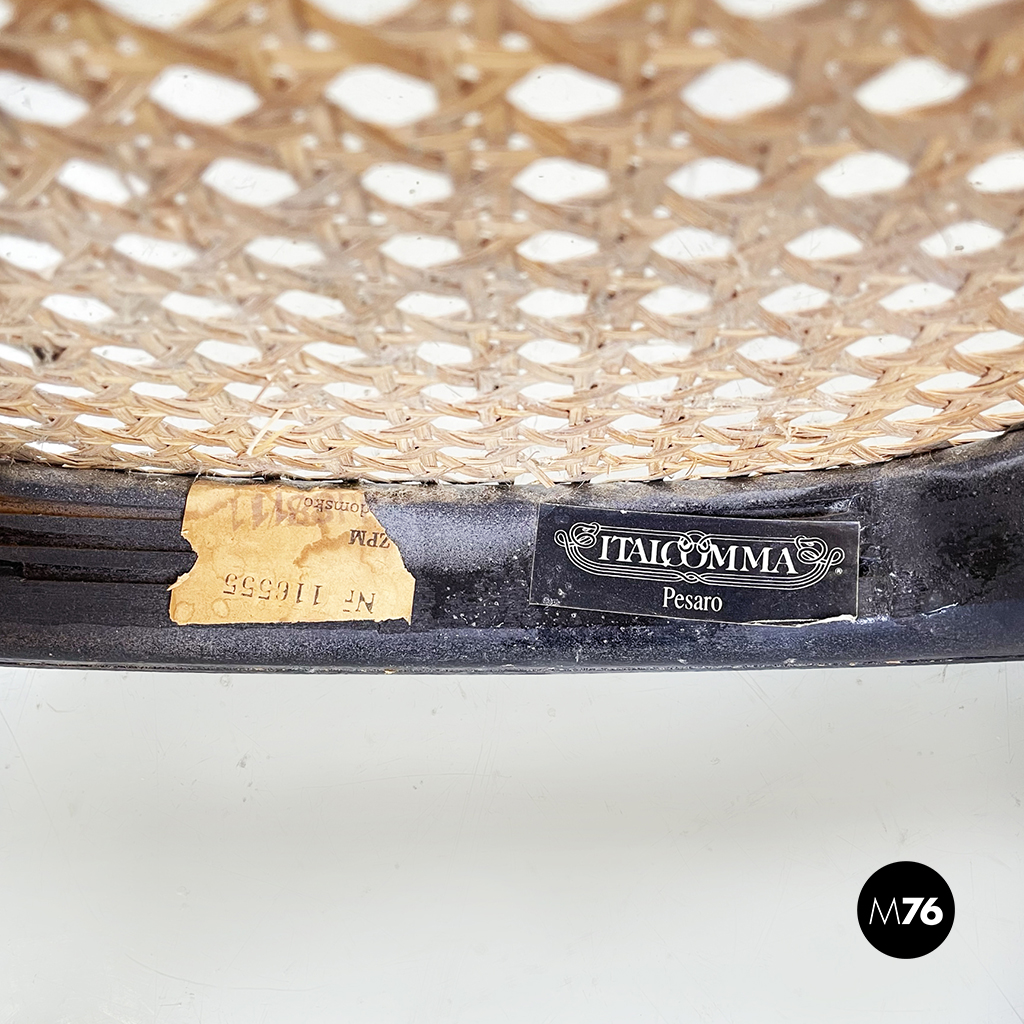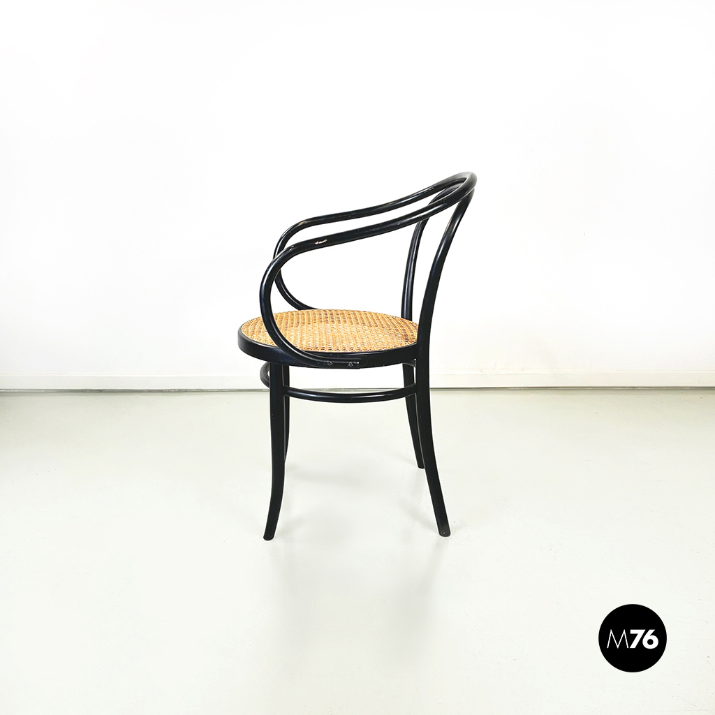 Sedia con seduta tonda in paglia di Vienna. La struttura, che comprende schienale e gambe, è in legno incurvato a sezione tonda e verniciato nero.