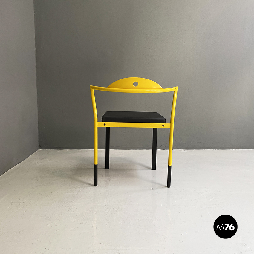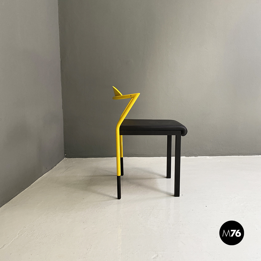 Sedia in metallo giallo e pelle nera, 1980 ca.
