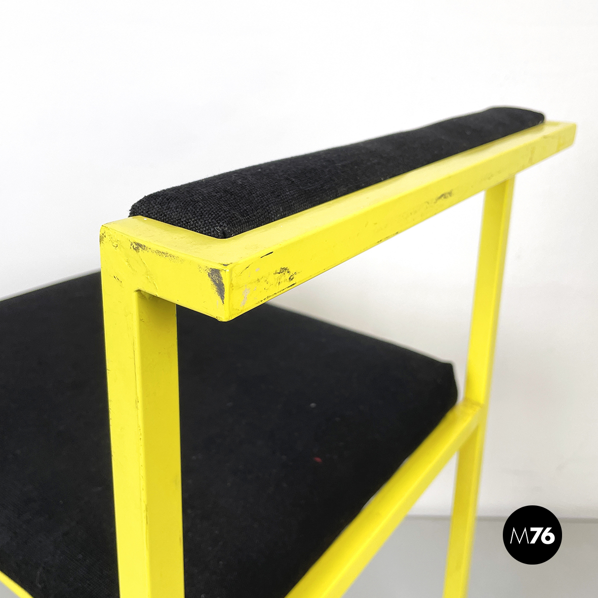 Sedia in metallo giallo e tessuto nero, 1980 ca.