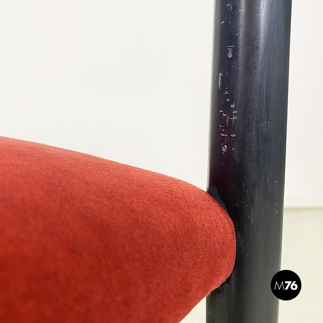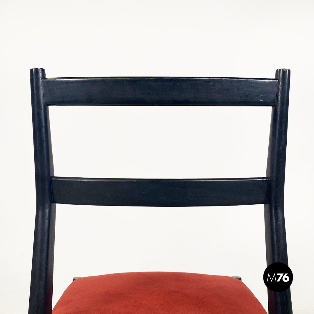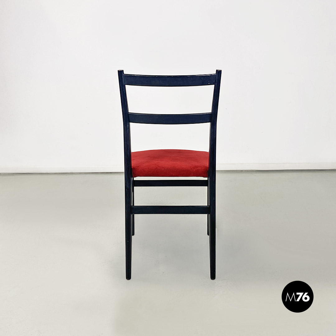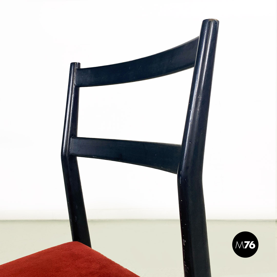 Sedia modello Leggera con struttura in legno di faggio tinto nero, con seduta imbottita e rivestita in tessuto rosso.
