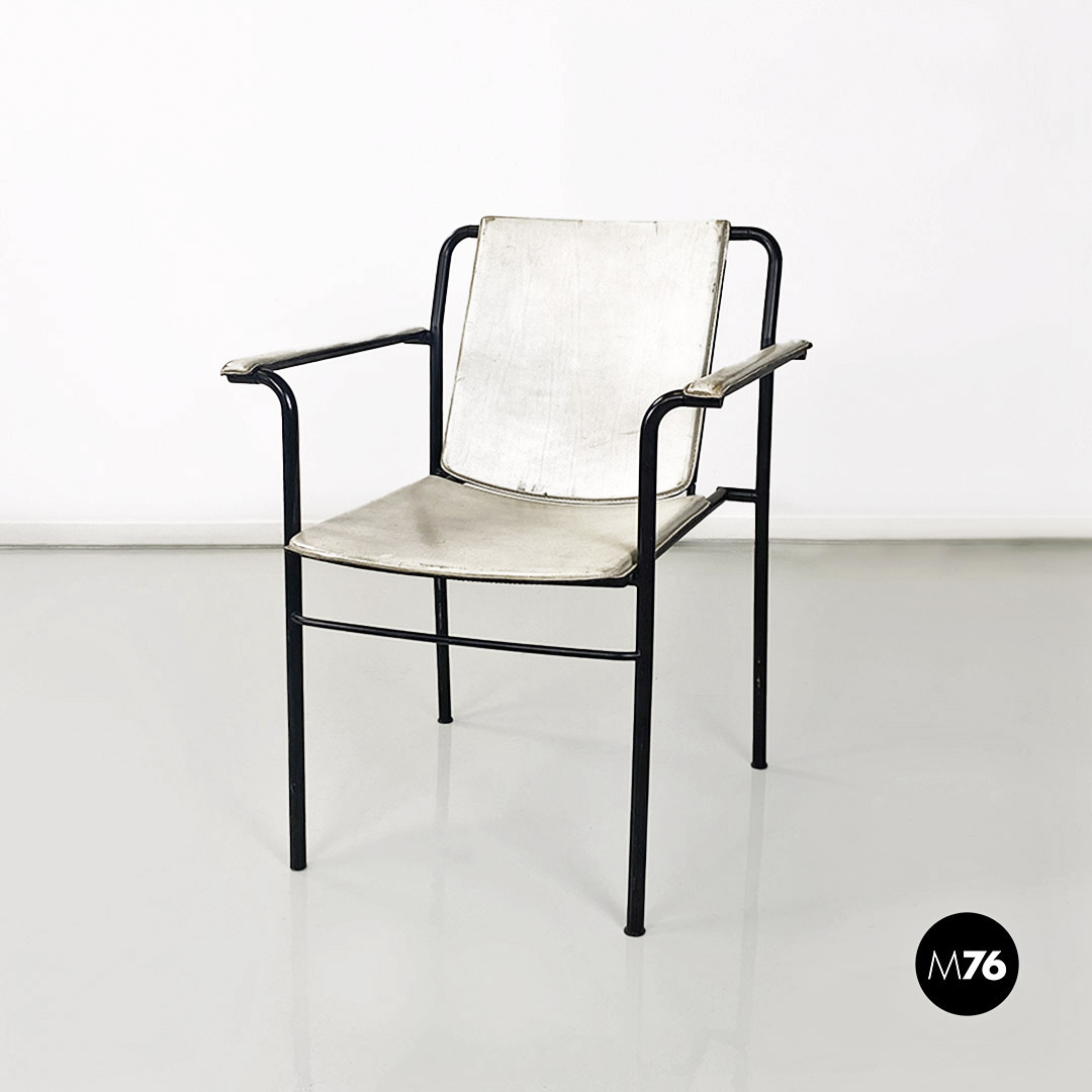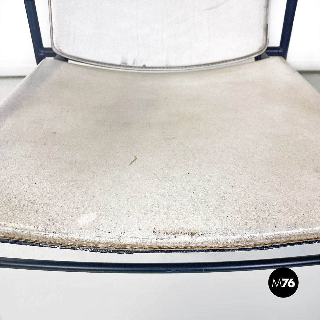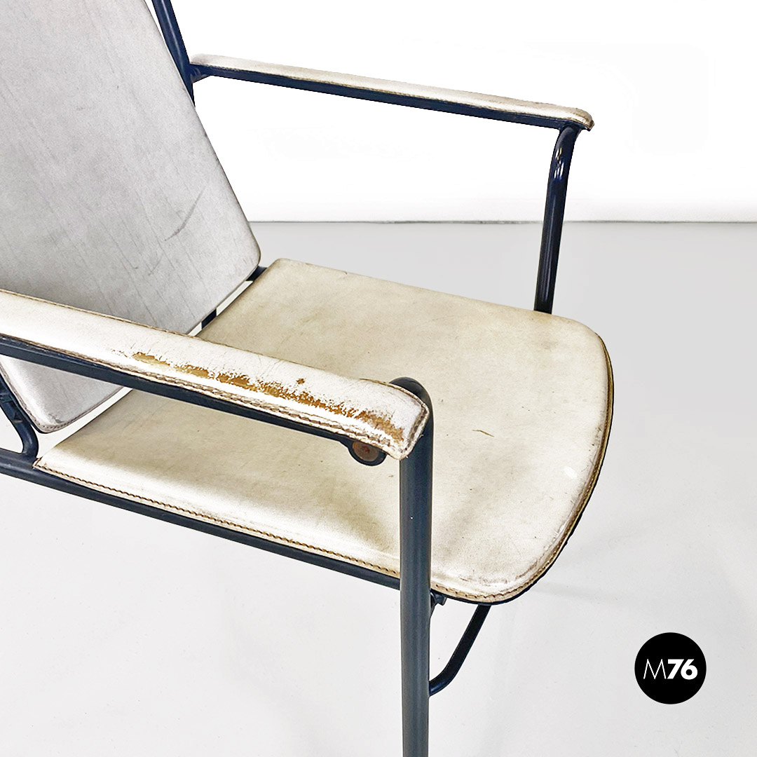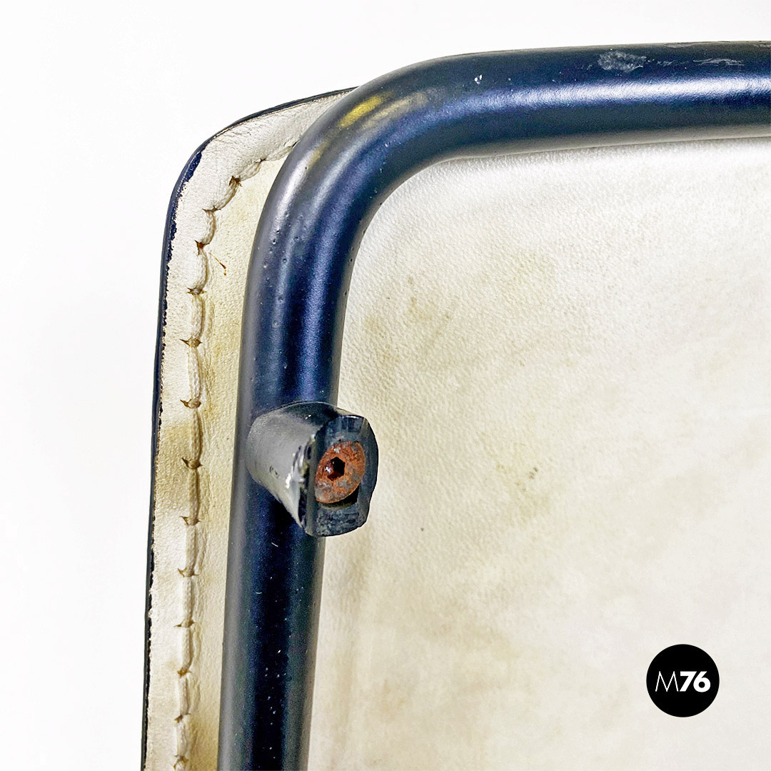 Sedia pieghevole in pelle bianca e metallo nero, 1980 ca.