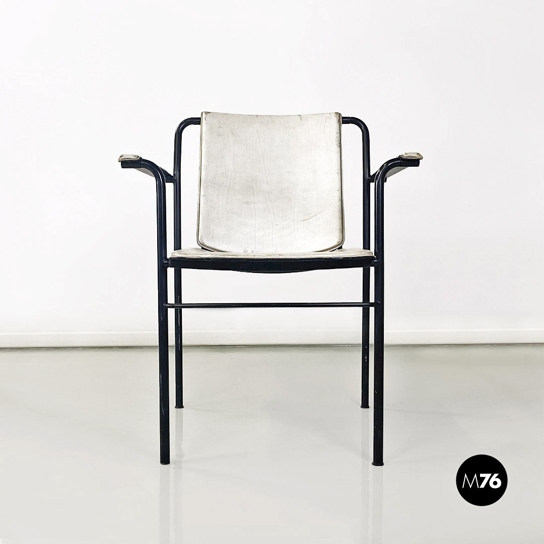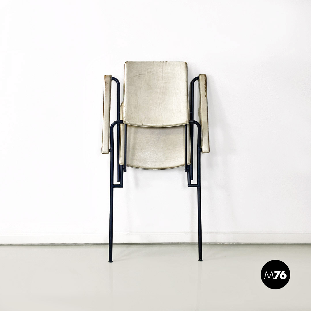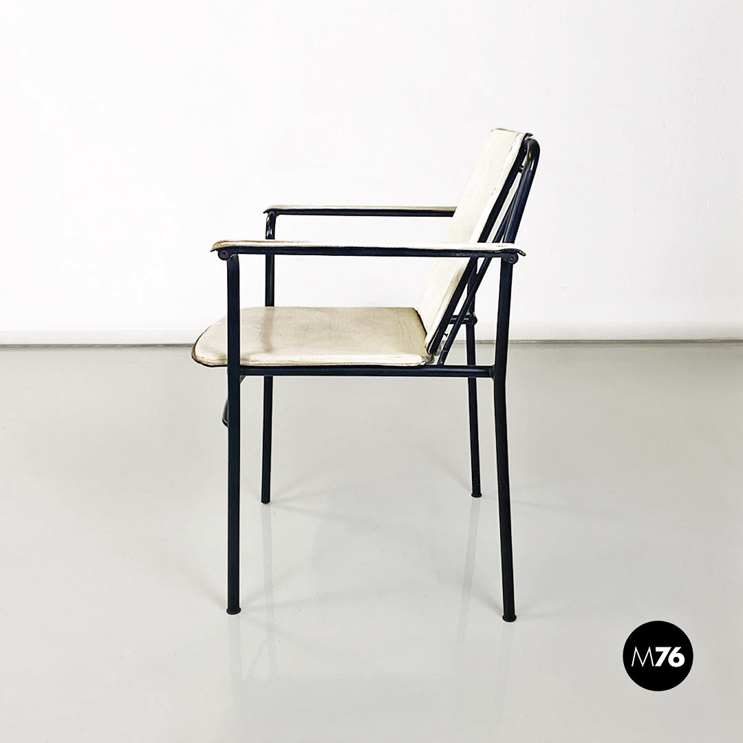 Sedia pieghevole in pelle bianca e metallo nero, 1980 ca.