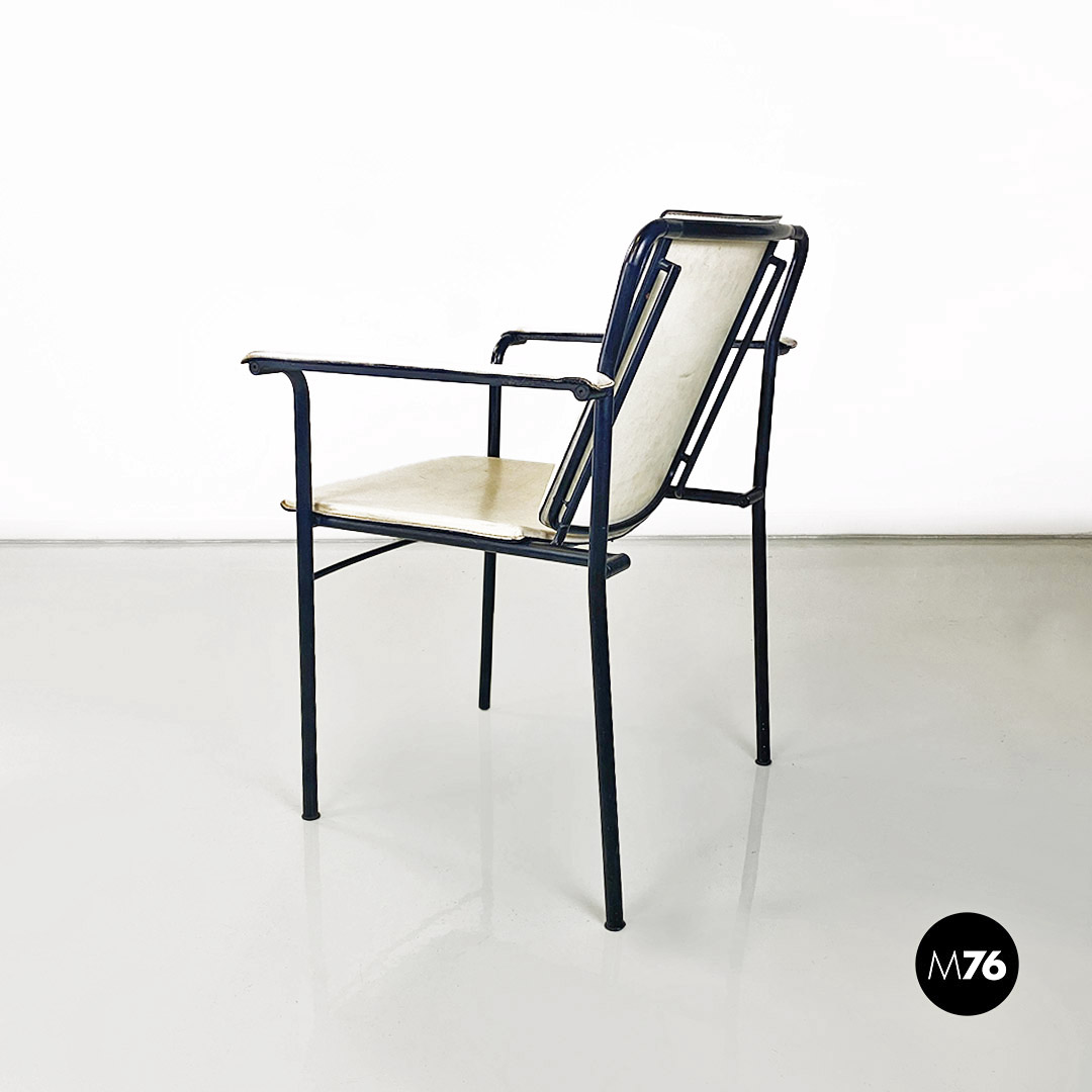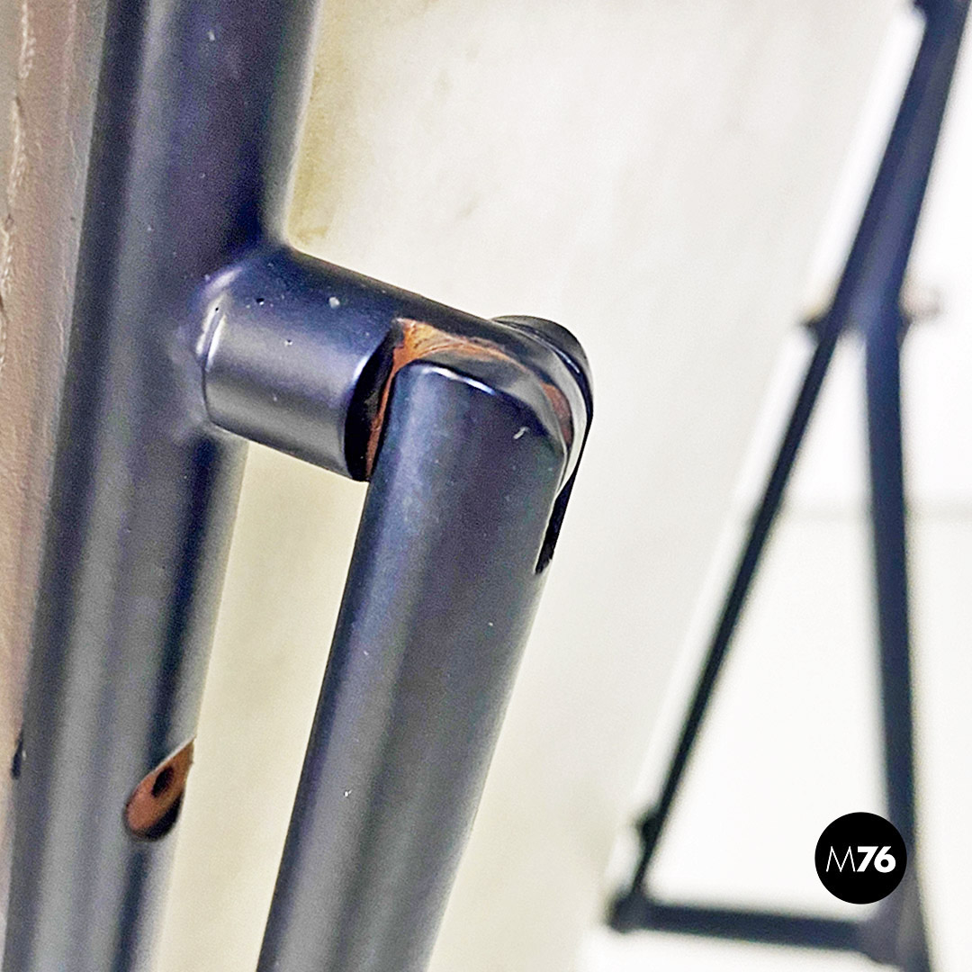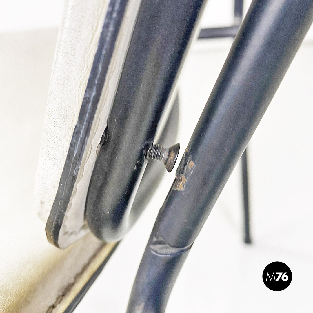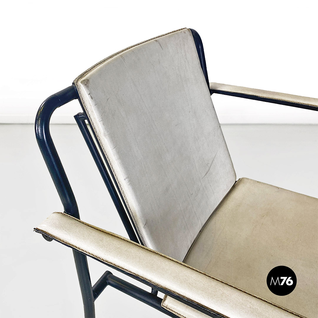 Sedia pieghevole in pelle bianca e metallo nero, 1980 ca.
