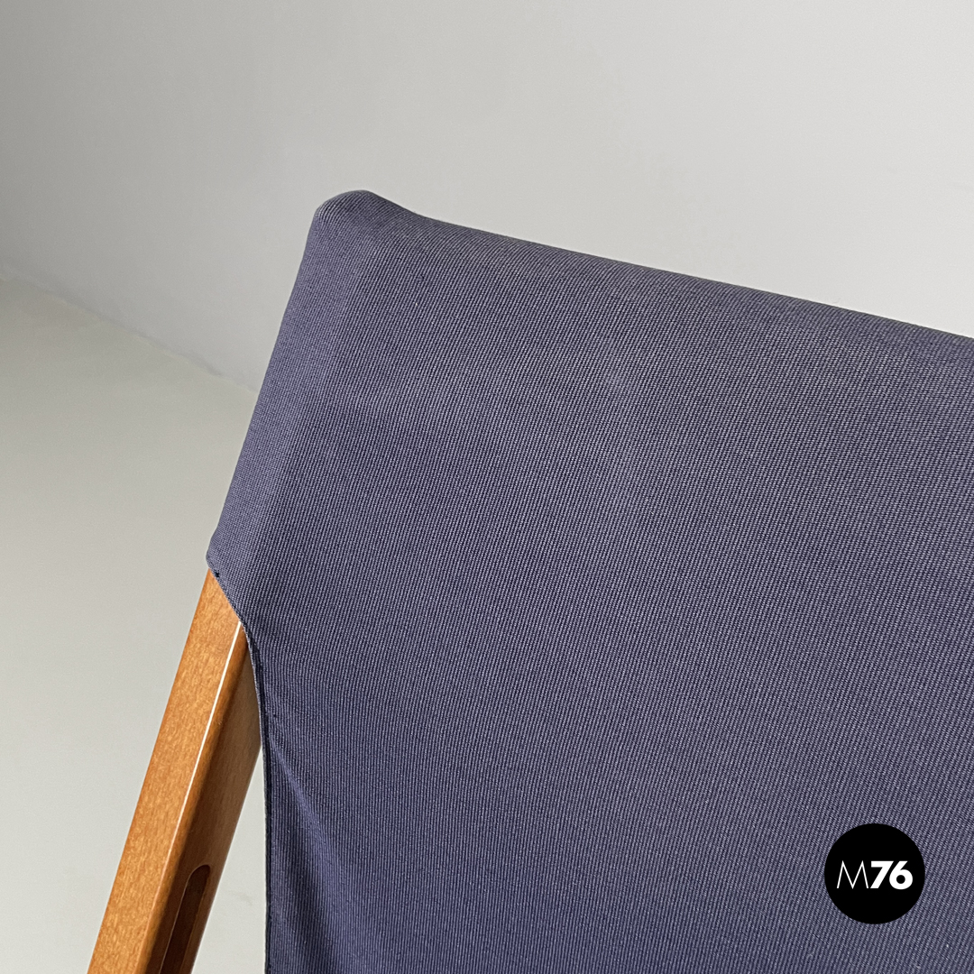 Sedia pieghevole in tessuto blu e legno, 1990 ca.