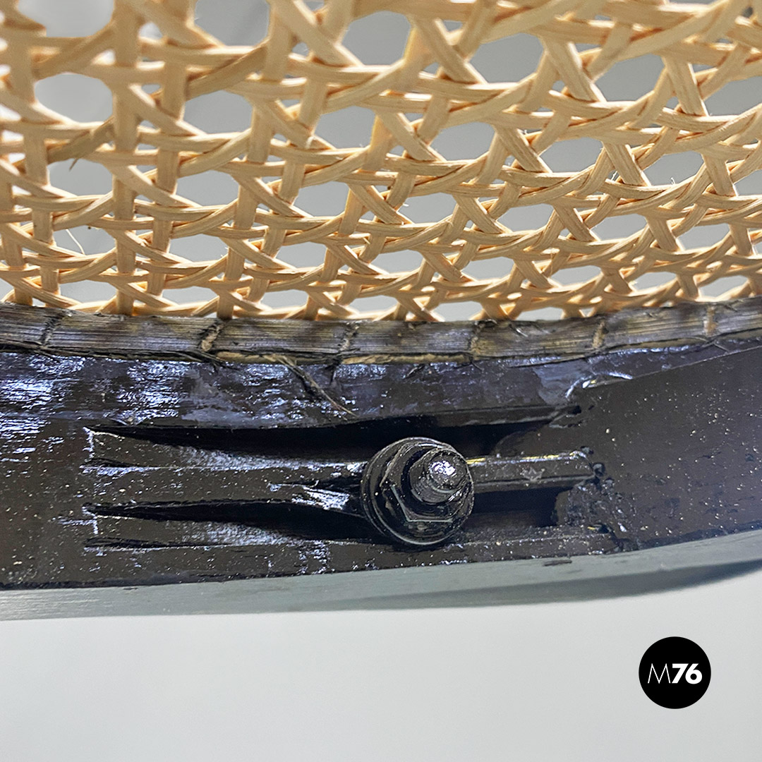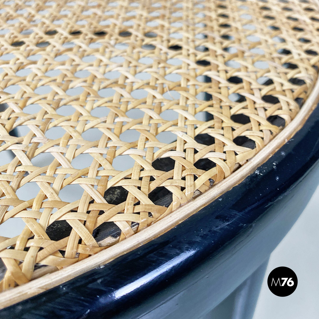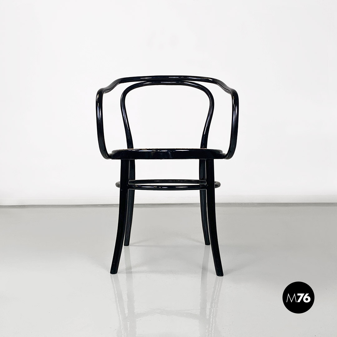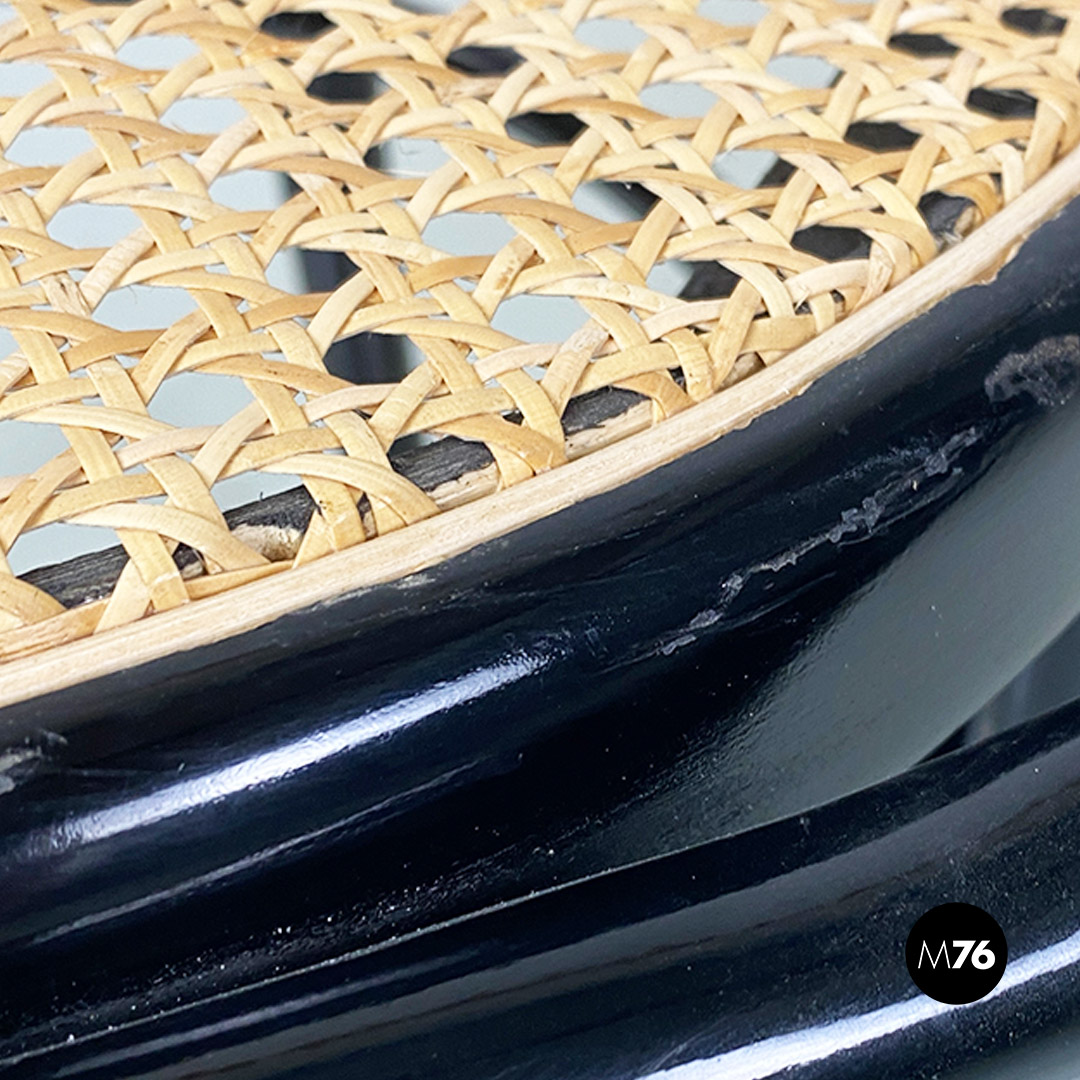Set di otto sedie modello 209, con struttura in faggio curvato verniciato nero, con anello sempre in legno curvato posto sotto la seduta tonda a rinforzare la struttura, facendo da connettore tra le quattro zampe e sedile in paglia di Vienna. Sedie provenienti da un edificio del 1800 posto alle spalle del Duomo di Milano.