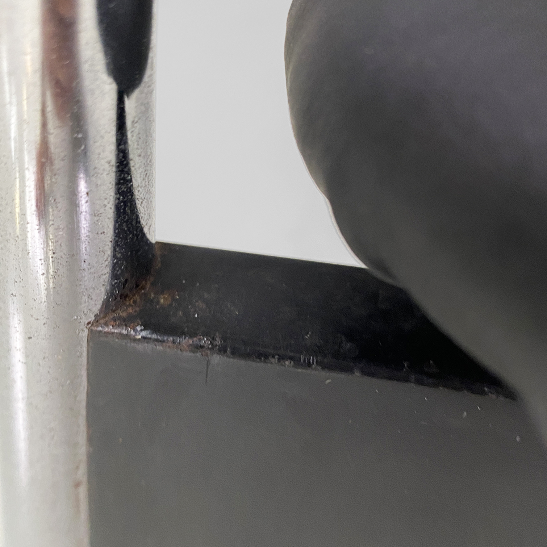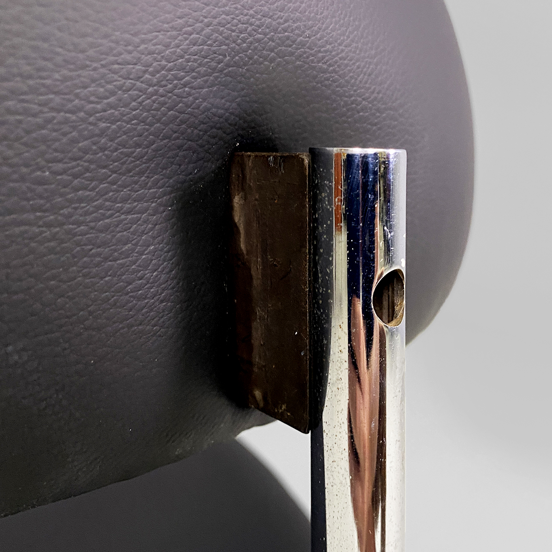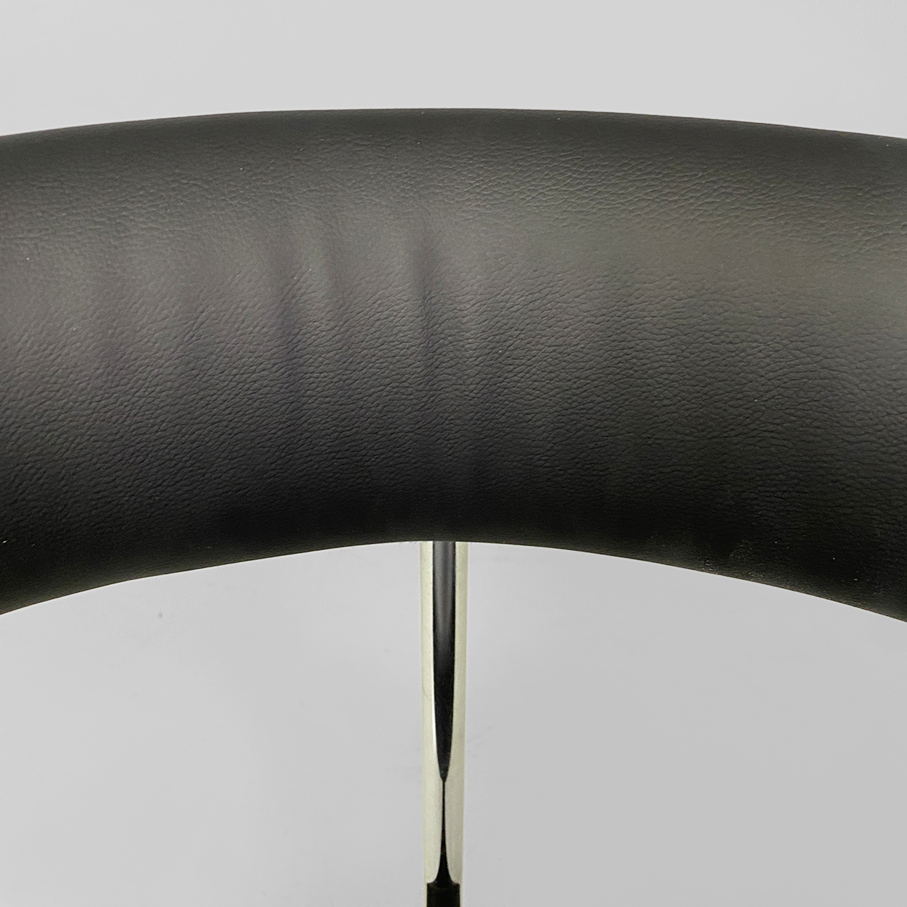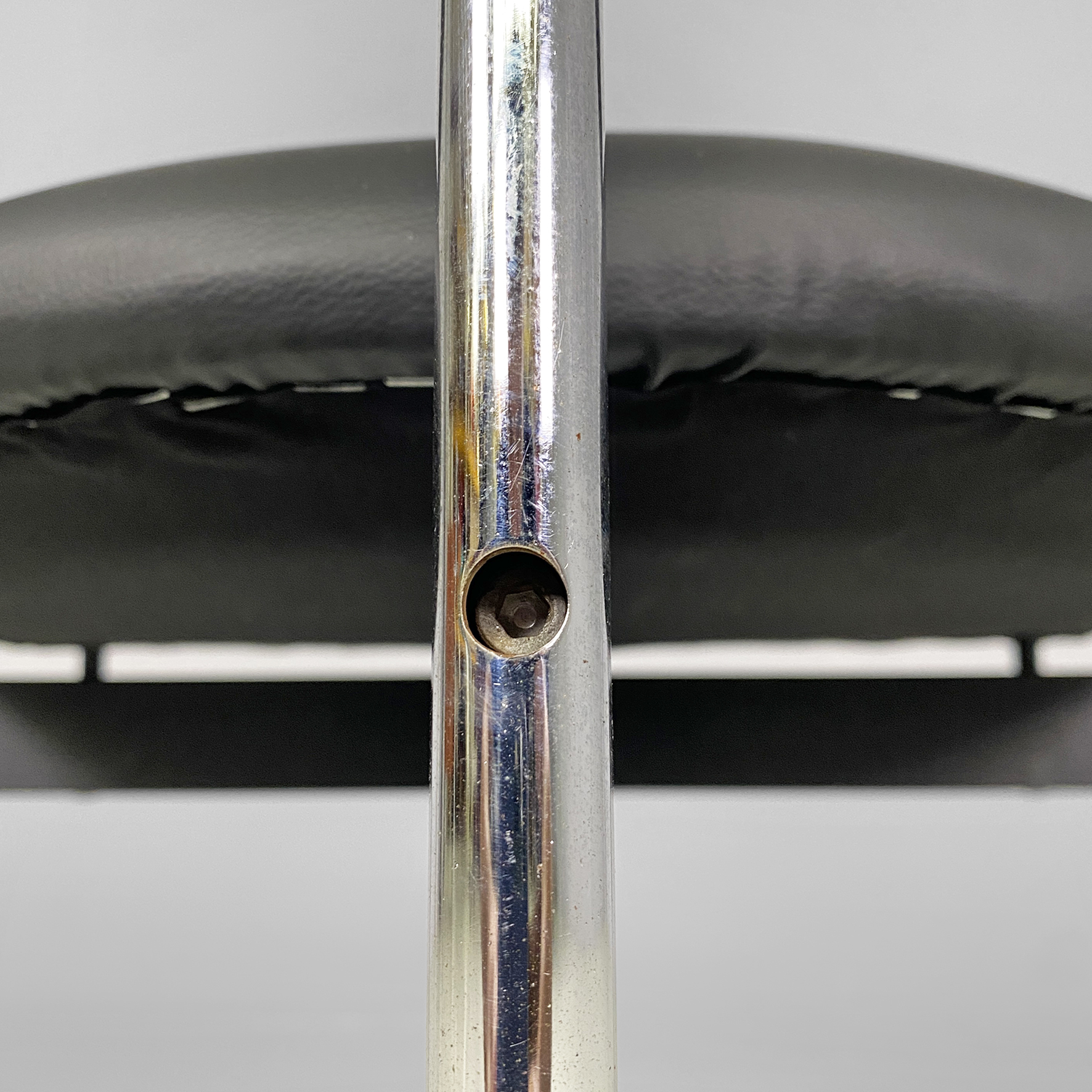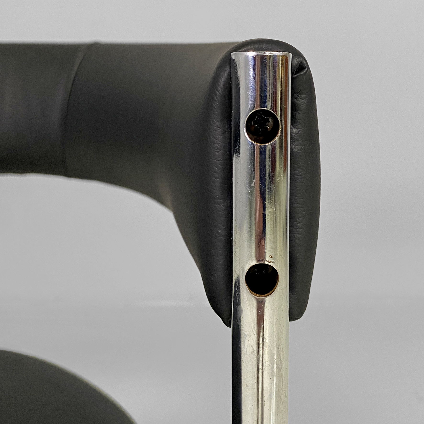 Sedie a pozzetto in acciaio e pelle nera, 1970 ca.