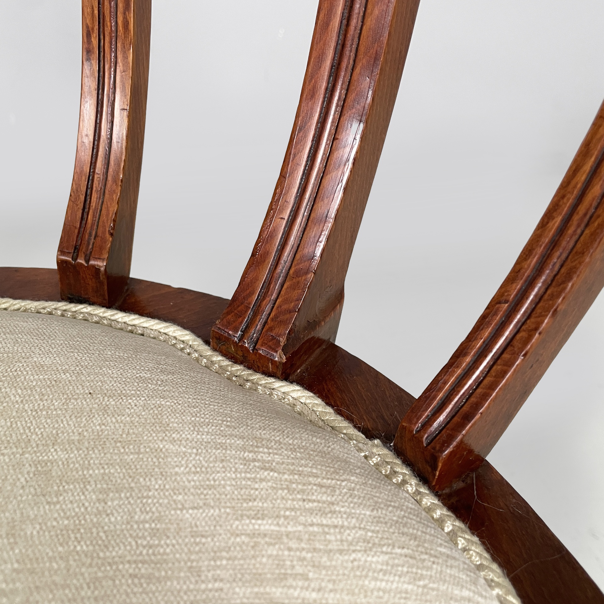 Buone condizioni, leggeri segni. Legno restaurato. Seduta tappezzata a nuovo.
