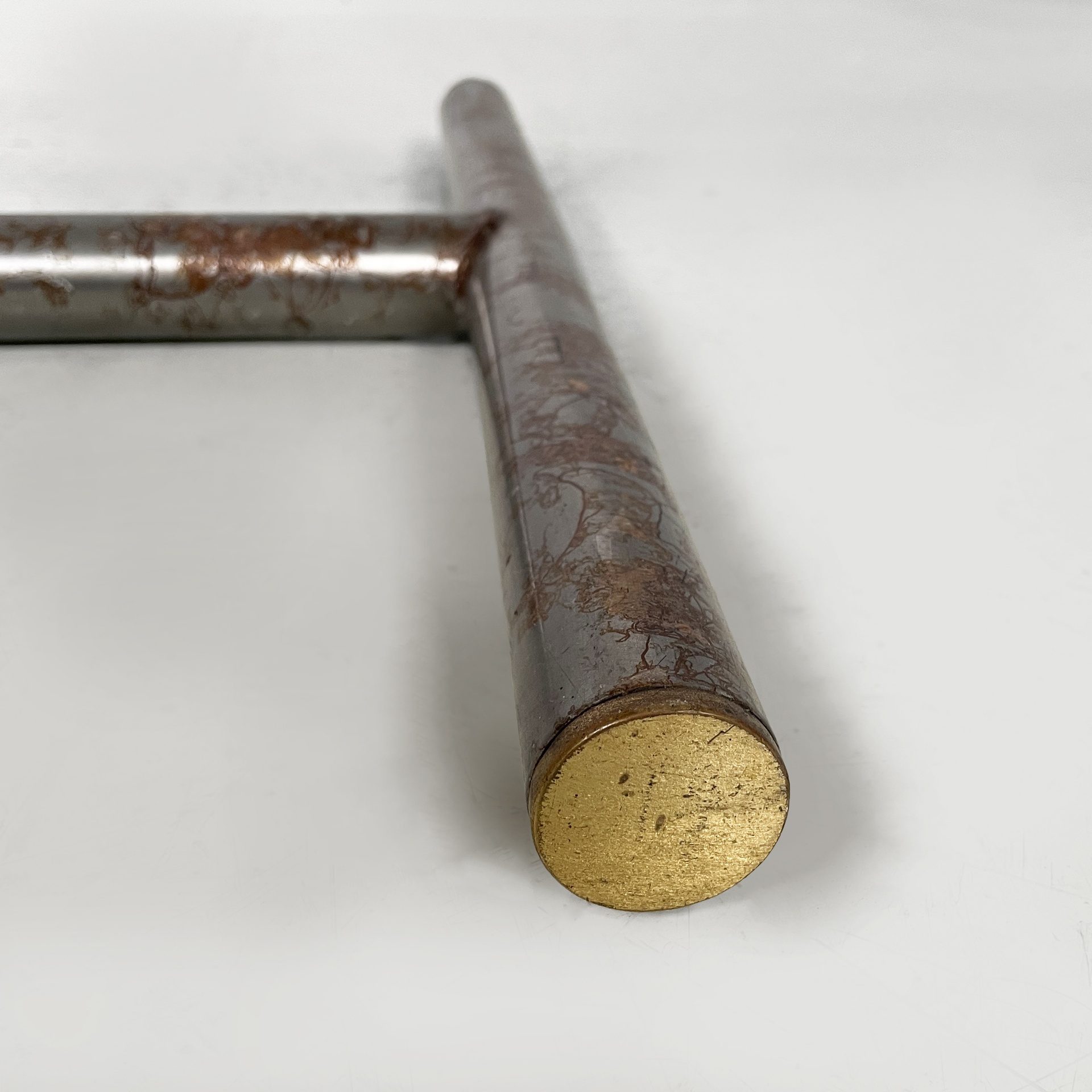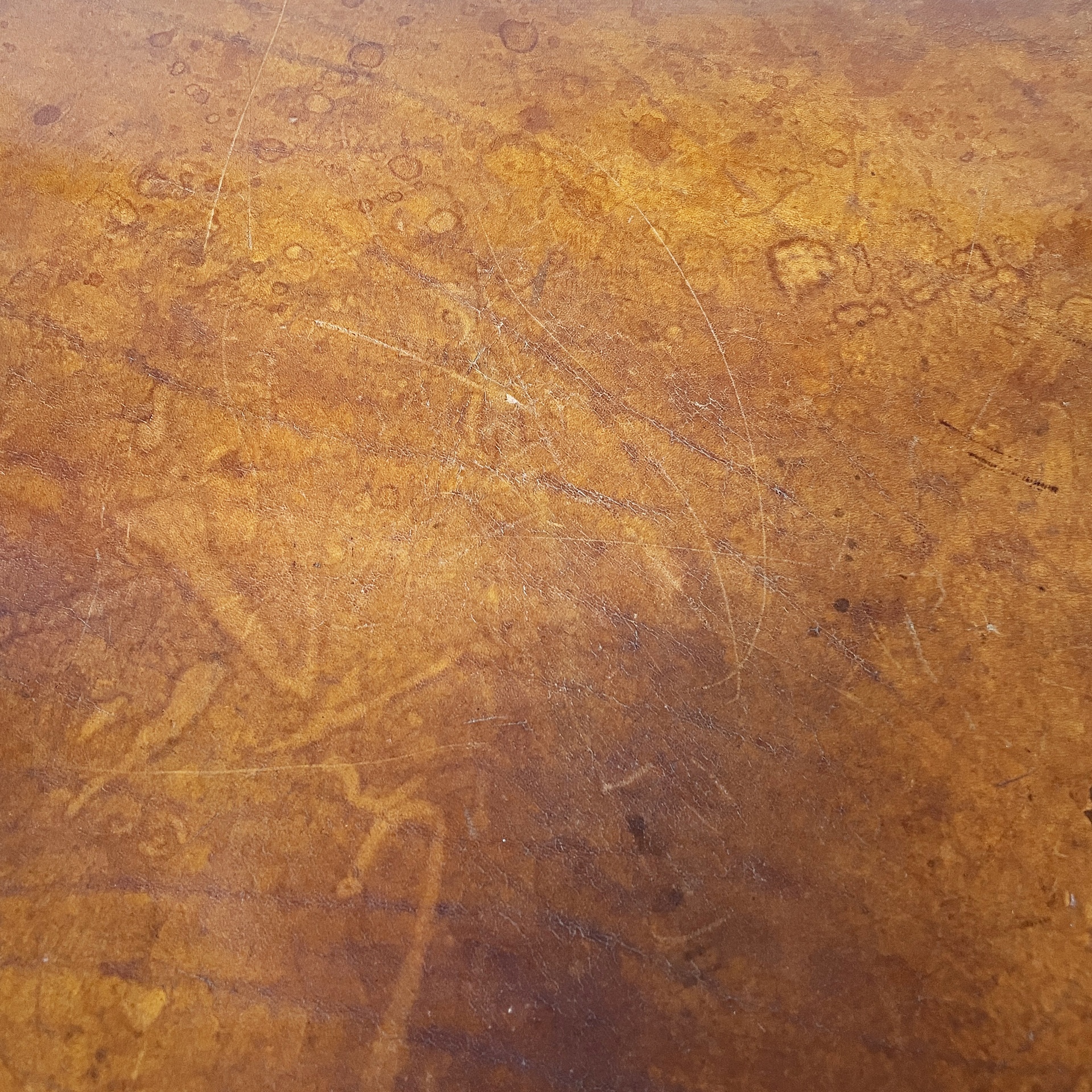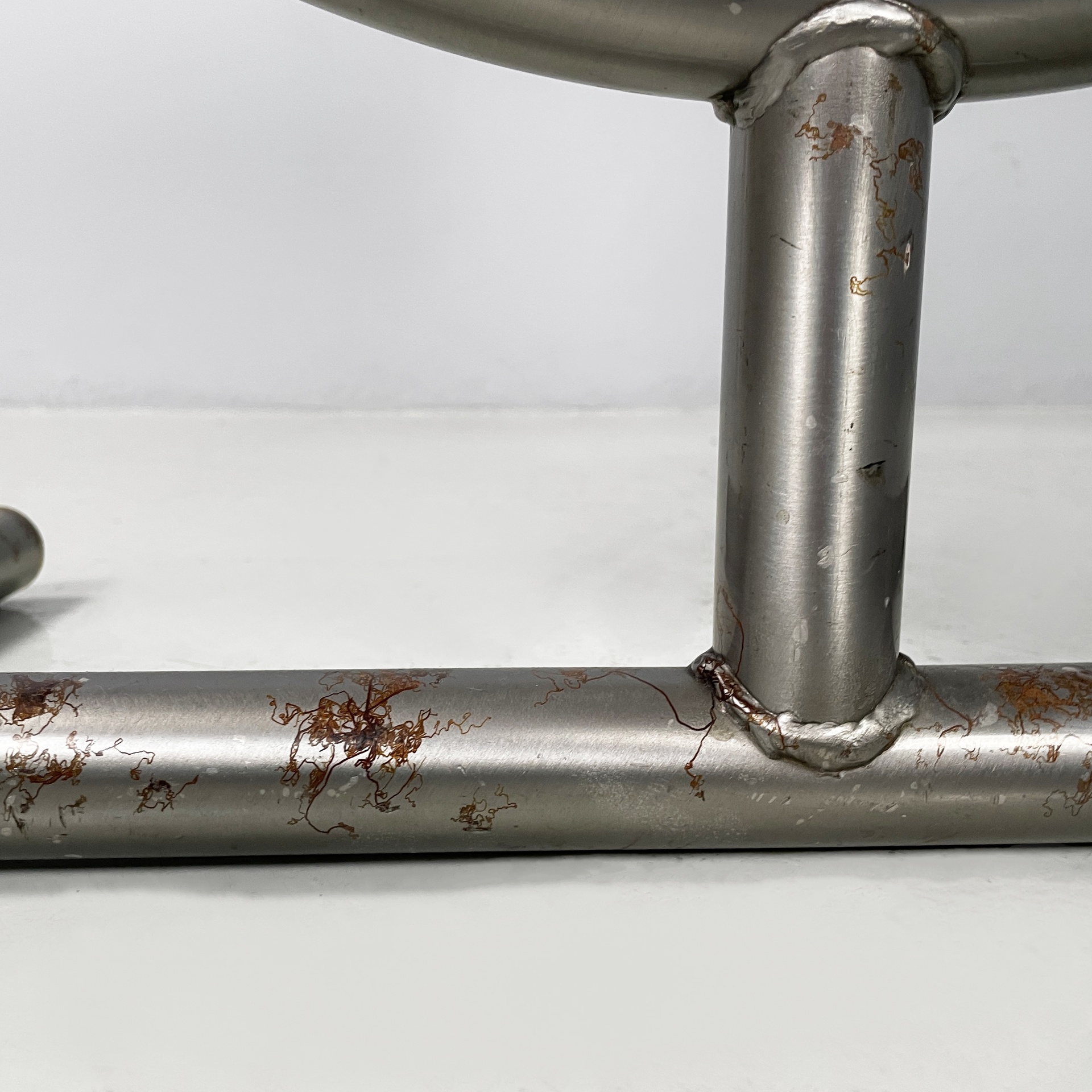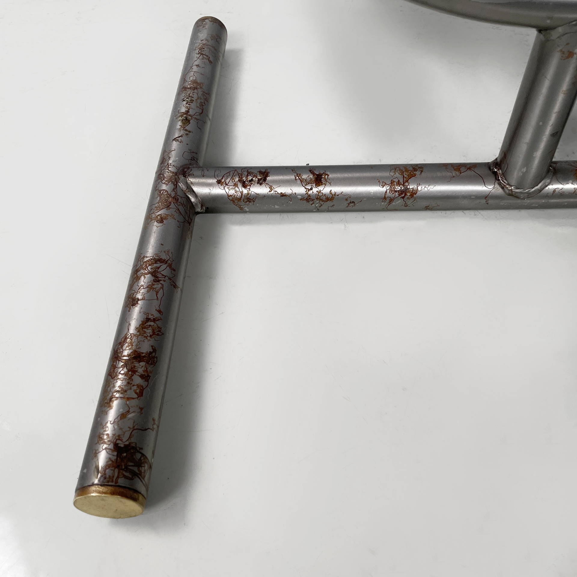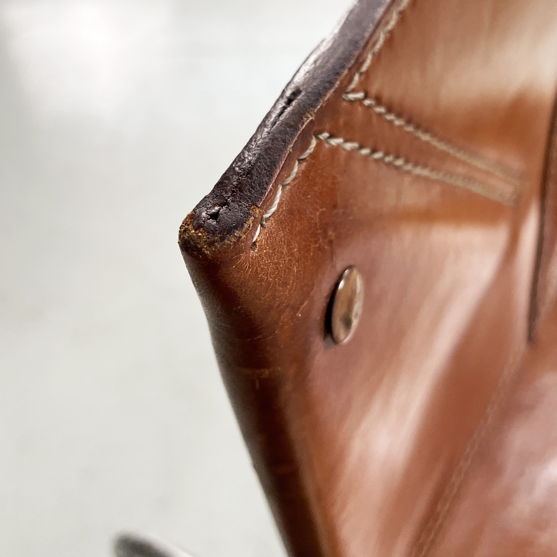 Condizioni discrete. Il cuoio presenta segni dati dal tempo, in particolare uno schienale presenta dei segni neri. Il metallo presenta numerosi segni dati dal tempo.
