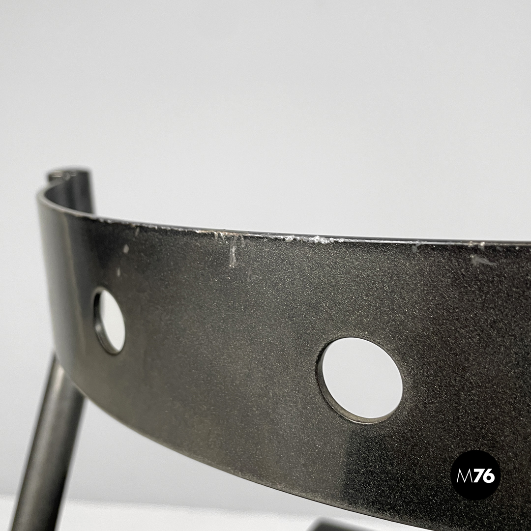 la struttura è in metallo verniciato nero con finitura lucida e glitterata, con lo schienale tondo e avvolgente con cinque fori decorativi. Le gambe sono a sezione tonda e terminano con un piedino tondo in plastica nera.