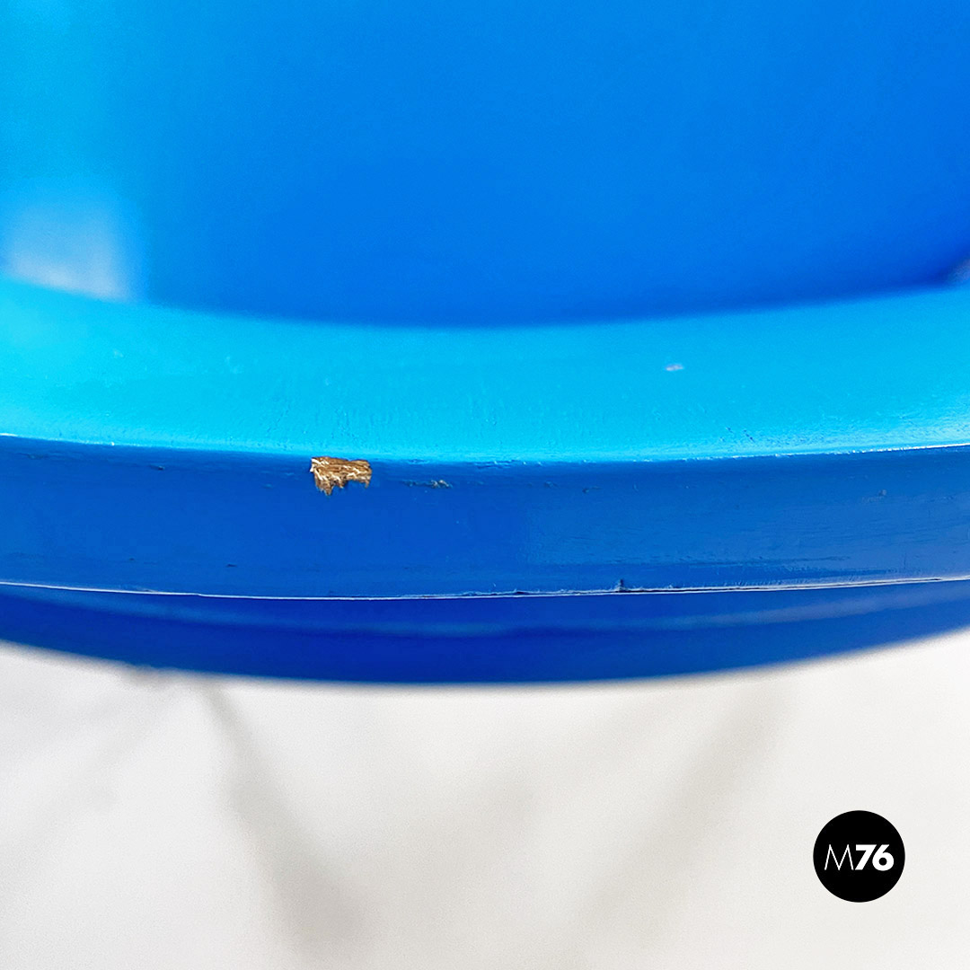 Set di quattro sedie impilabili, modello DSC, con seduta e schienale in legno massello di faggio verniciato in colore azzurro con zampe in alluminio a sezione tonda.