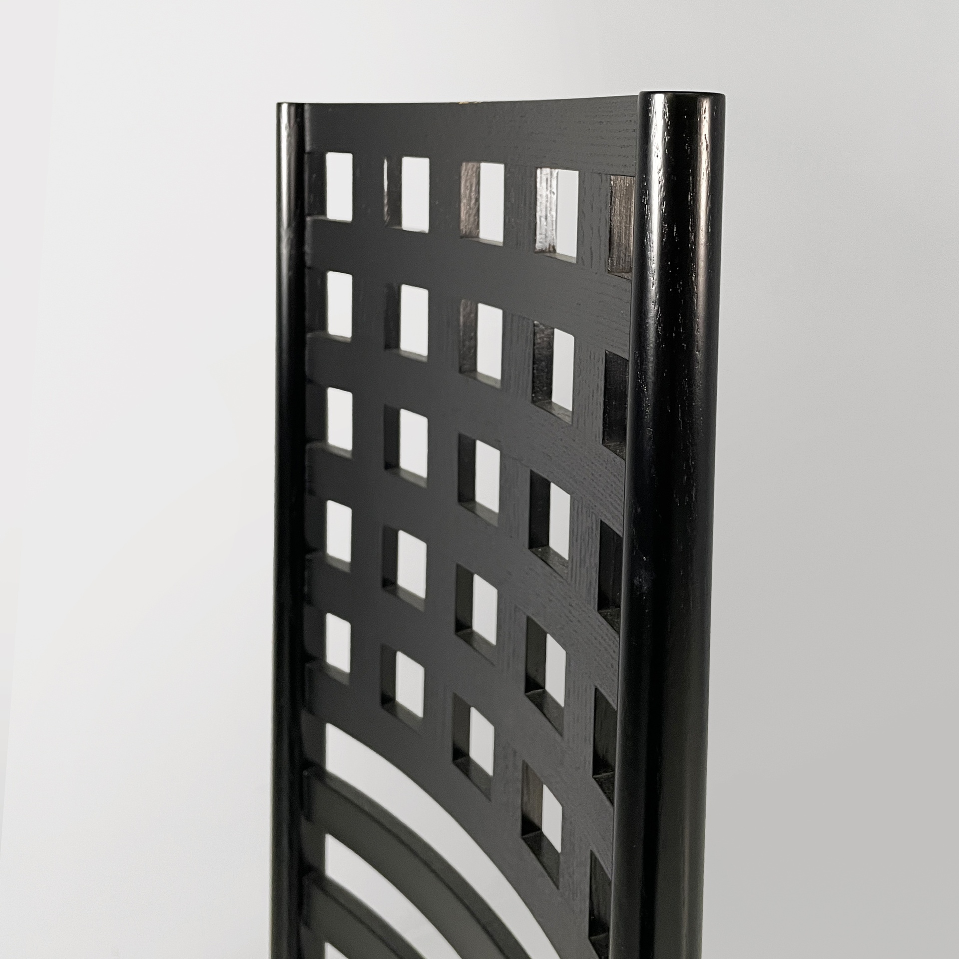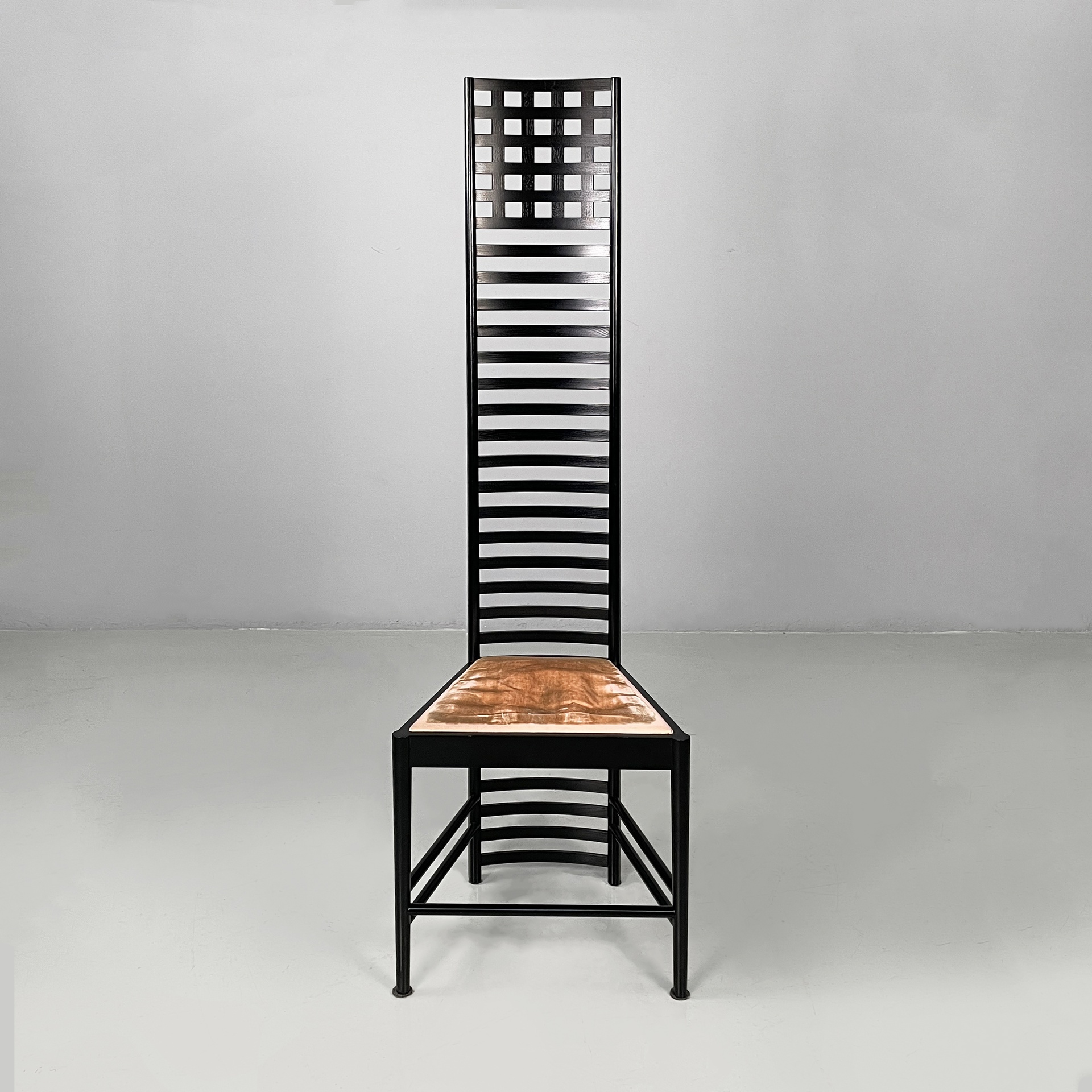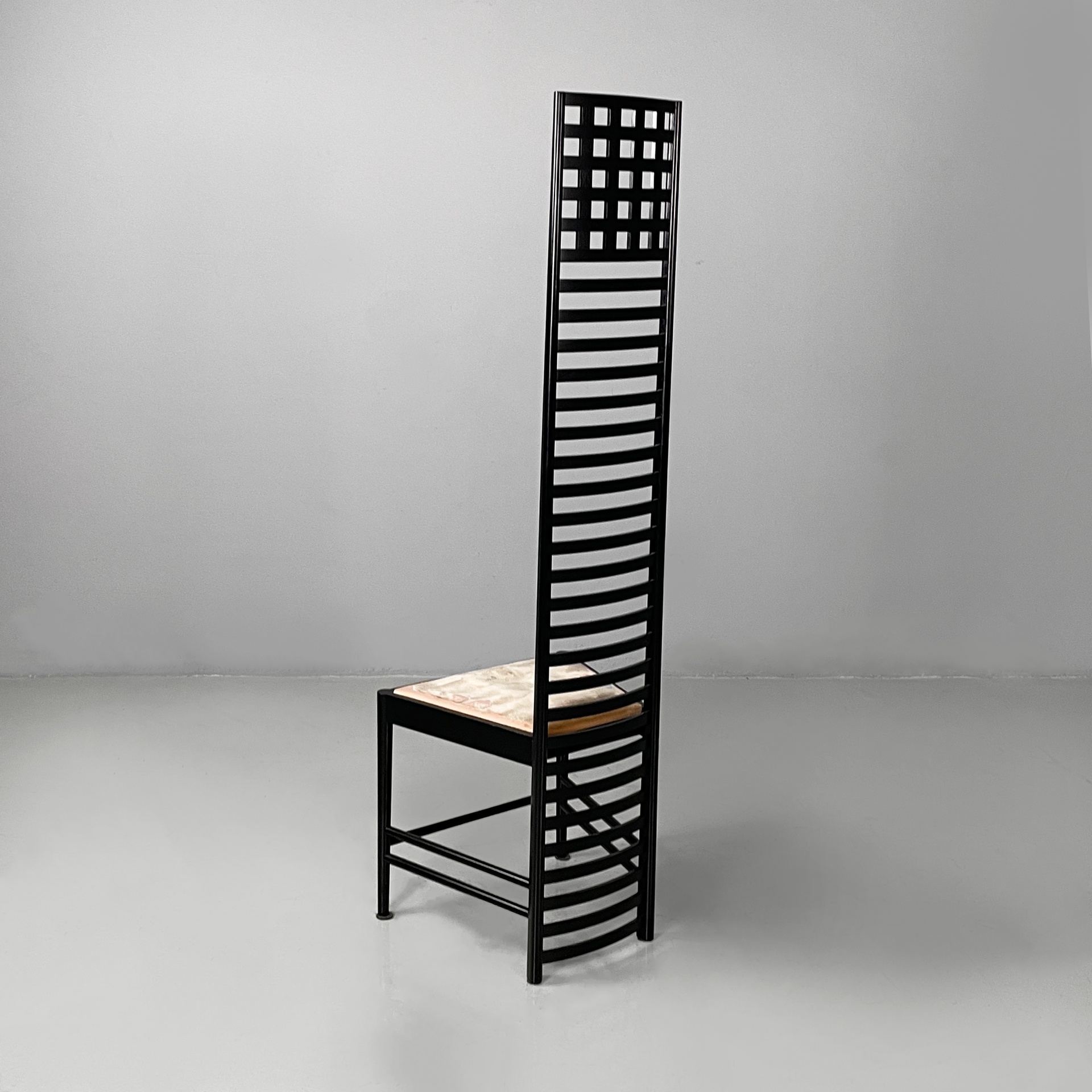 Prodotte Cassina nel 1980 ca. e disegnate da Charles Rennie Mackintosh. Logo impresso sotto la seduta ed etichetta presente.