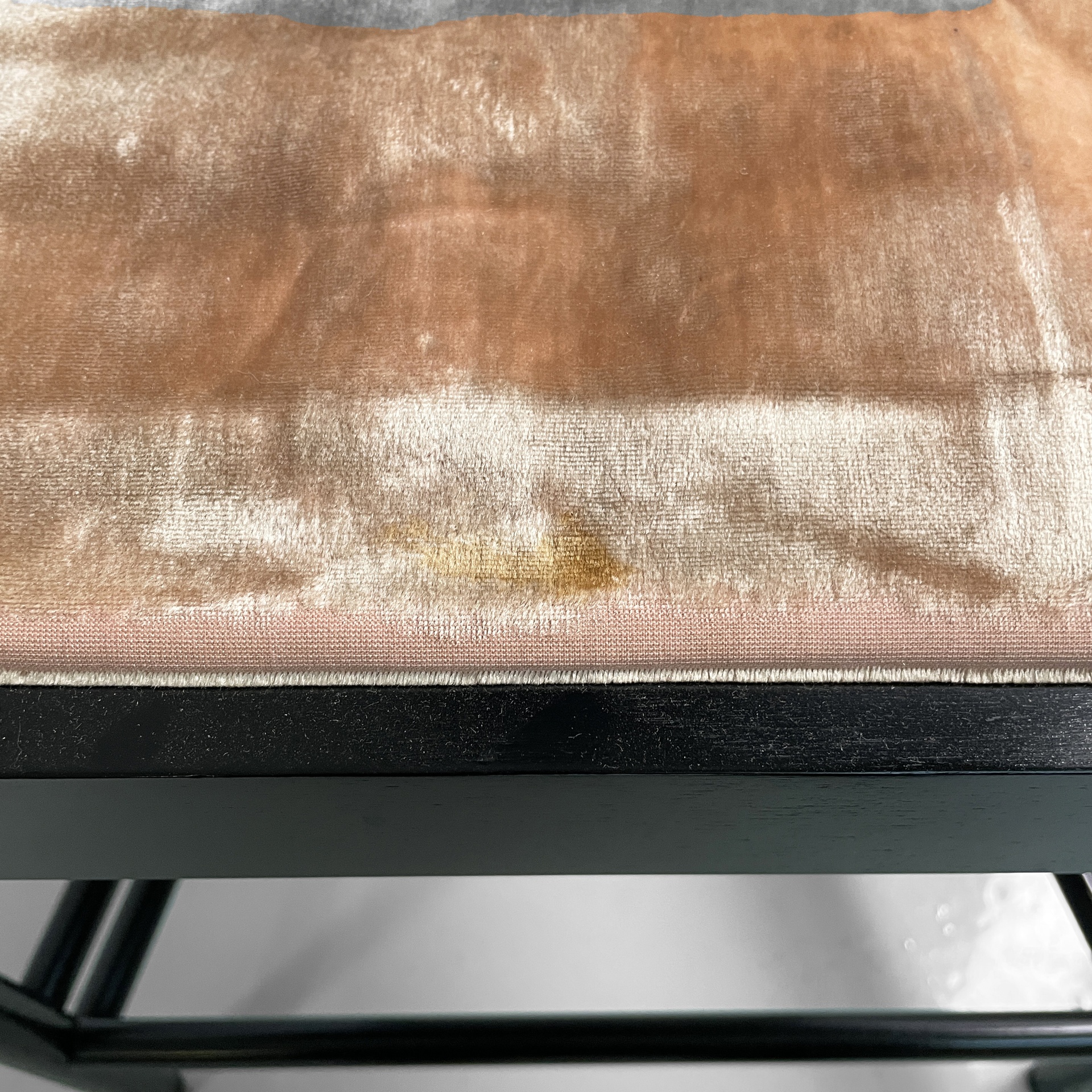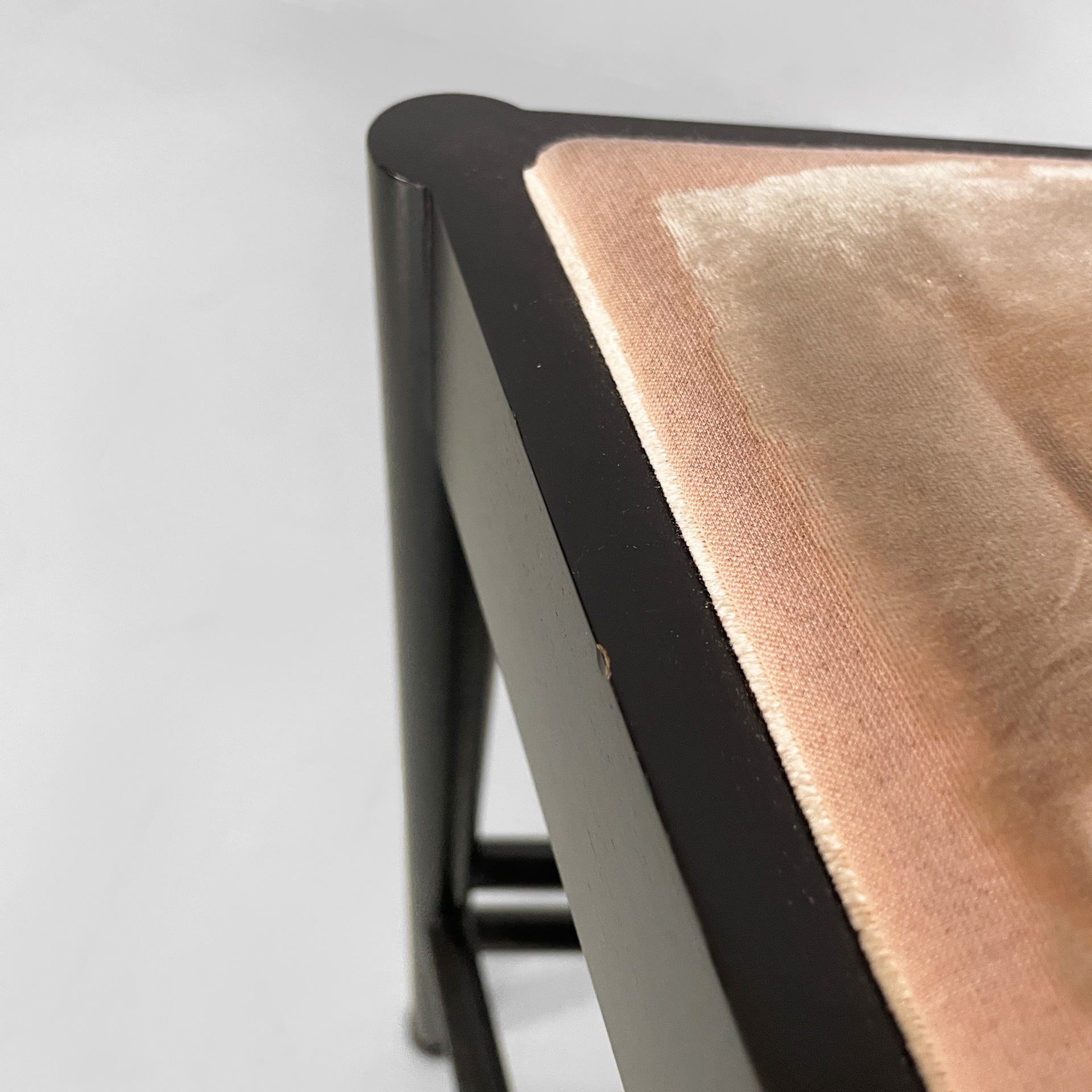 Buone condizioni. Il legno presenta leggeri segni sparsi. Il tessuto presenta un colore non uniforme e segni dati dall’utilizzo.