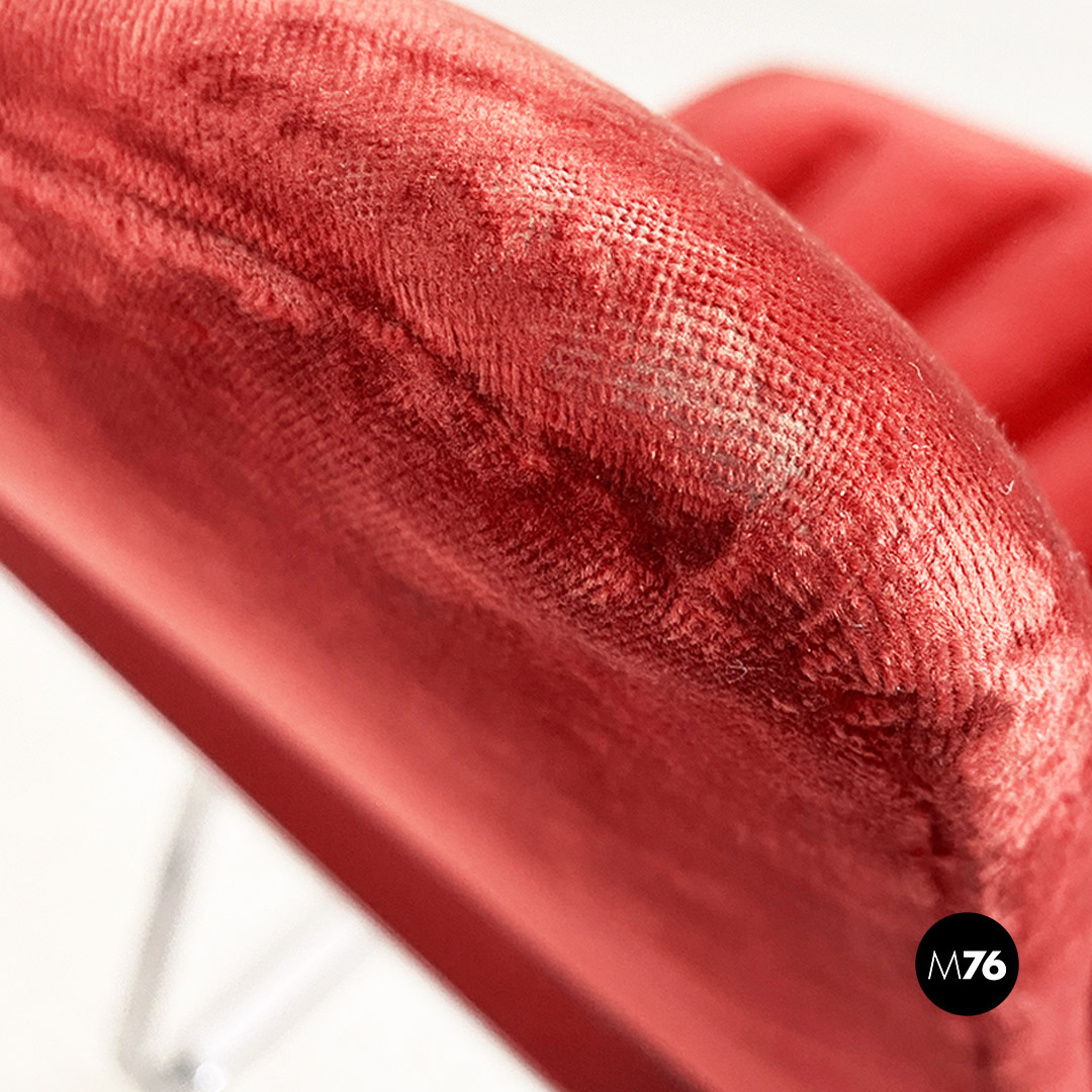 Sedie in acciaio cromato e velluto rosso, 1970 ca.