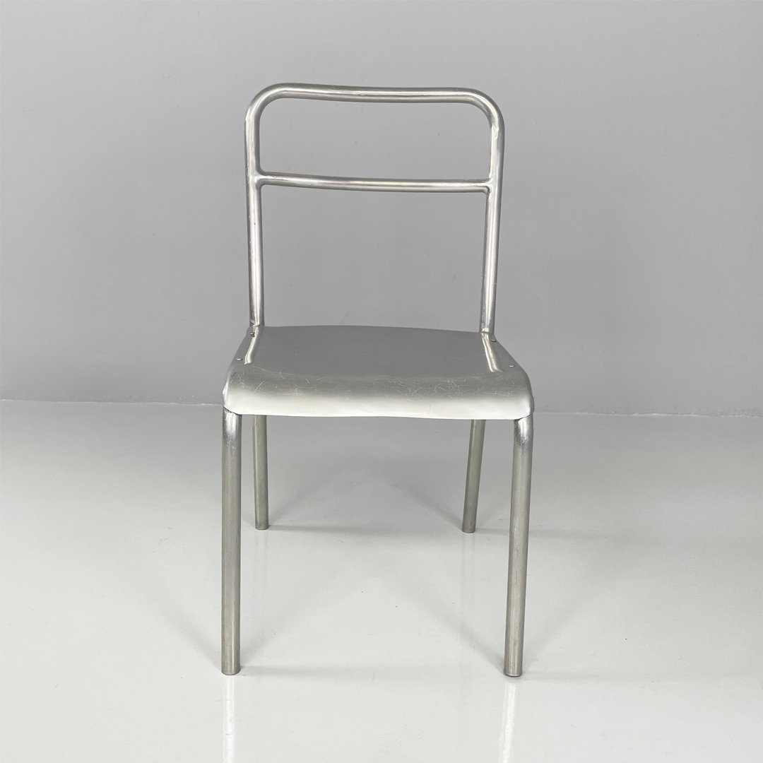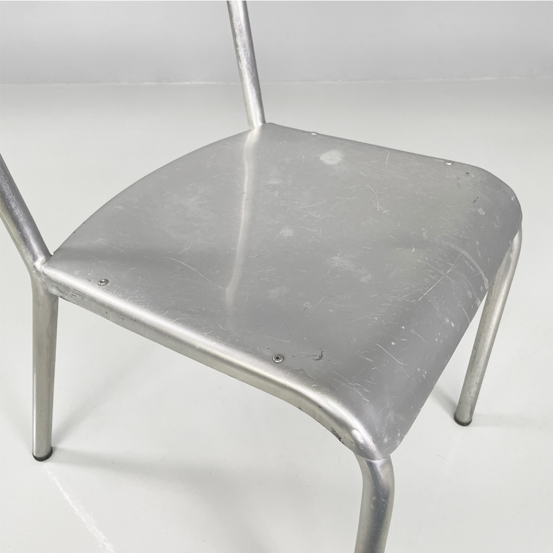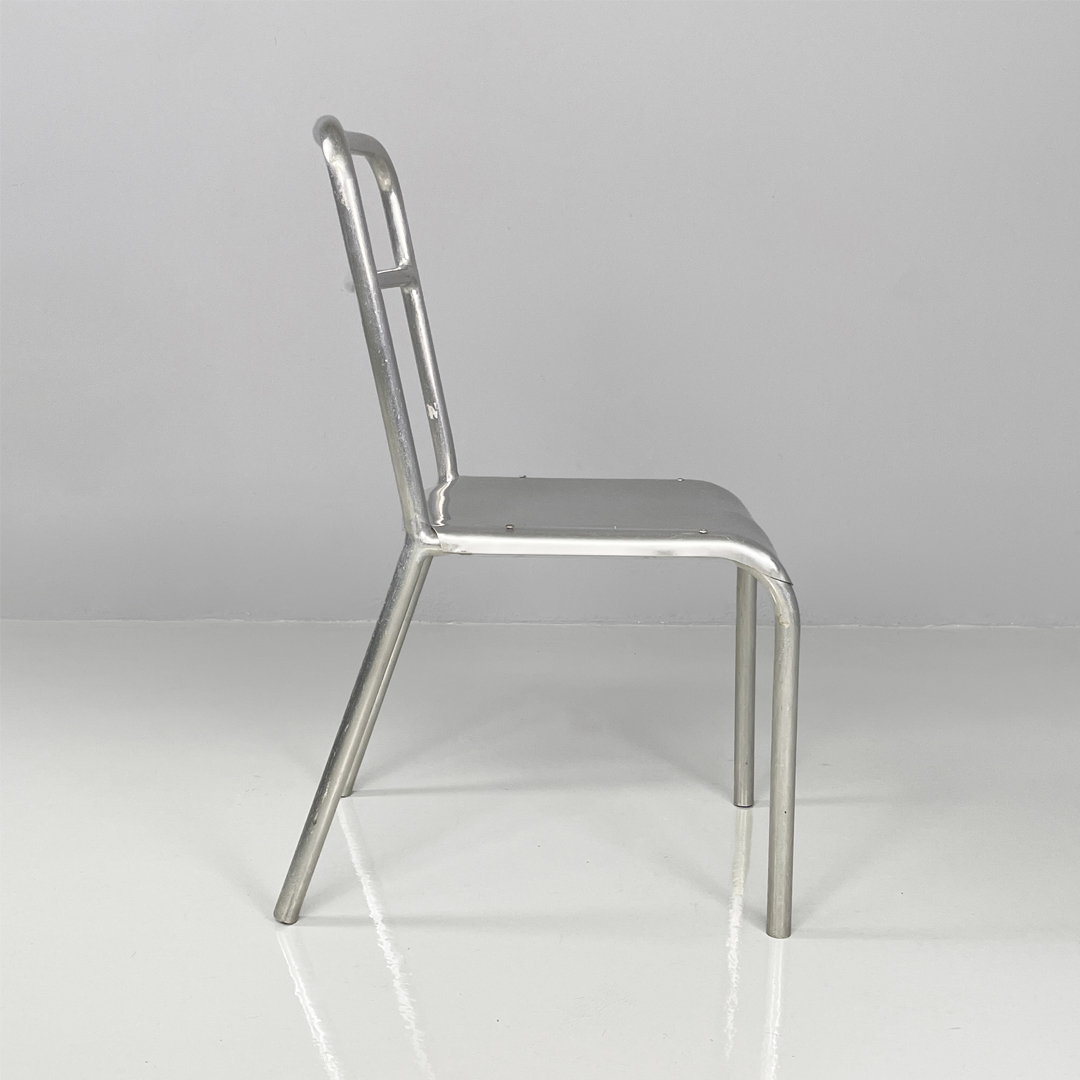 Set di 14 sedie in alluminio. Le zampe sono a sezione tonda con piedini neri in gomma.