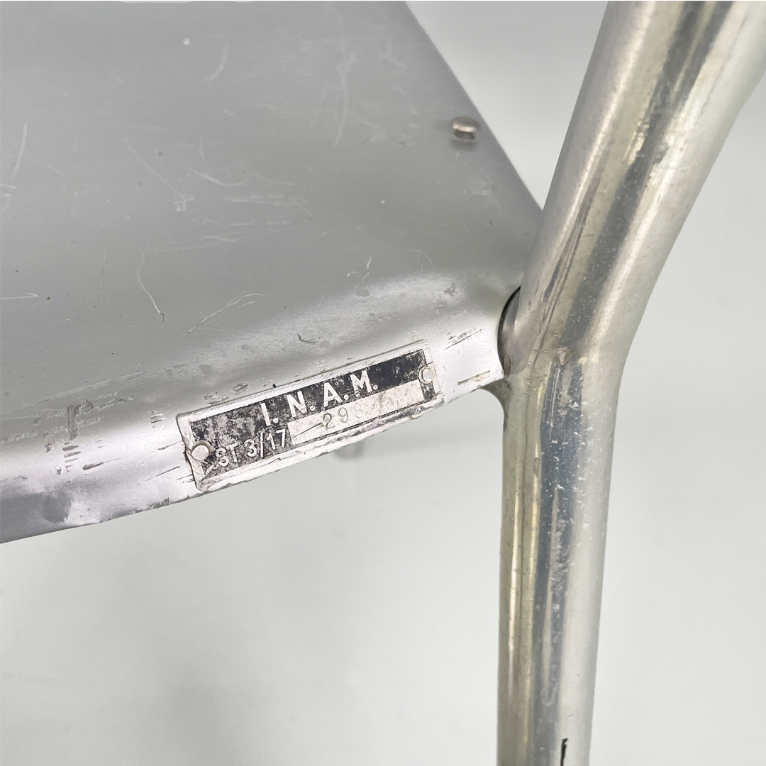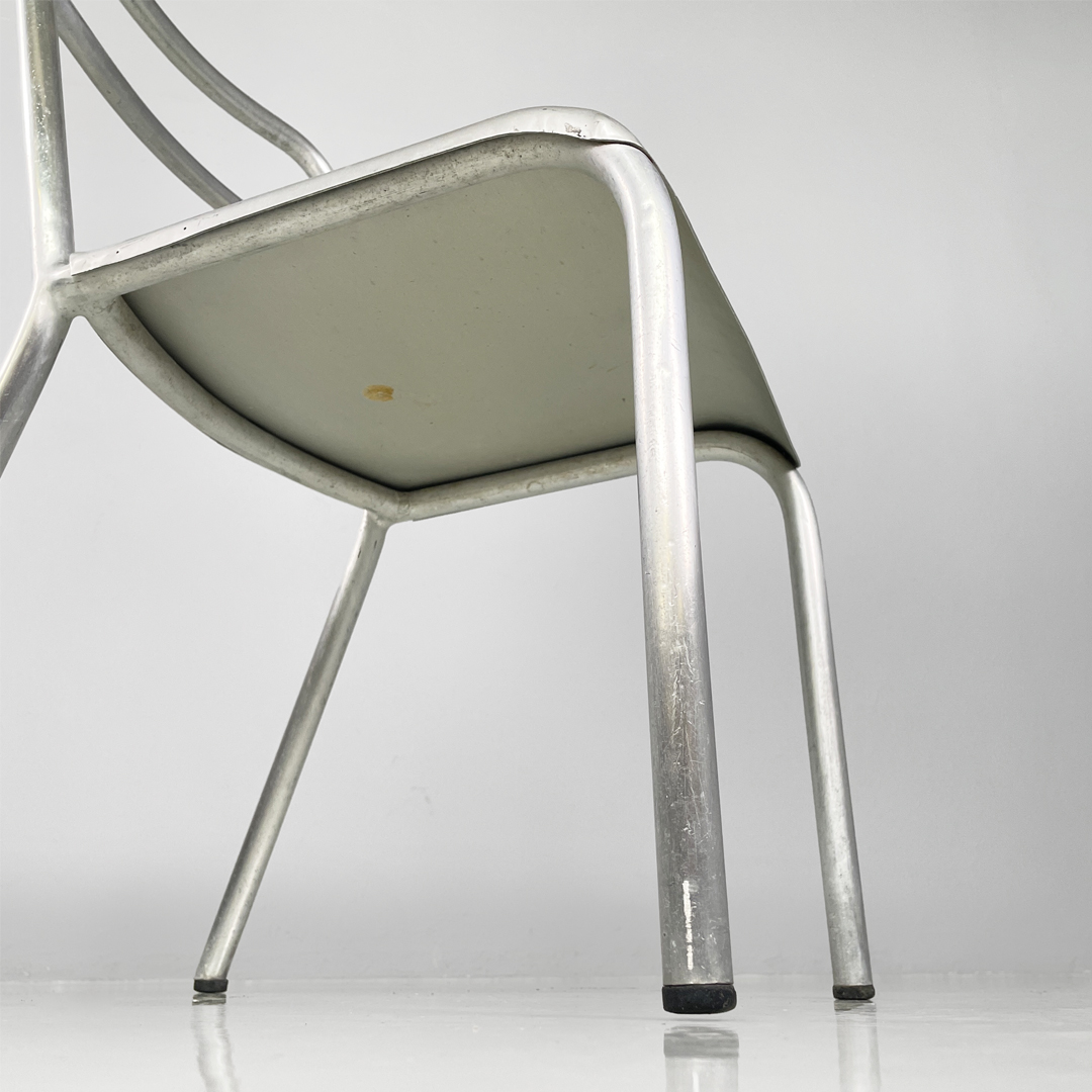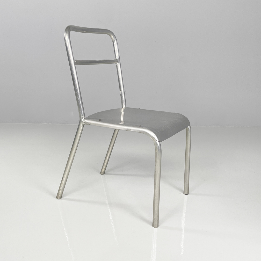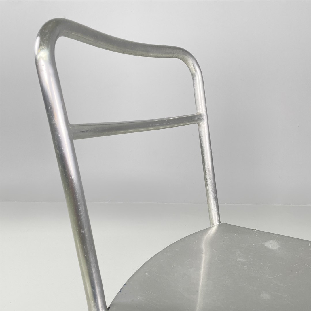 Set di 14 sedie in alluminio. Le zampe sono a sezione tonda con piedini neri in gomma.