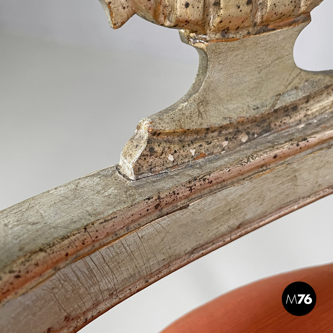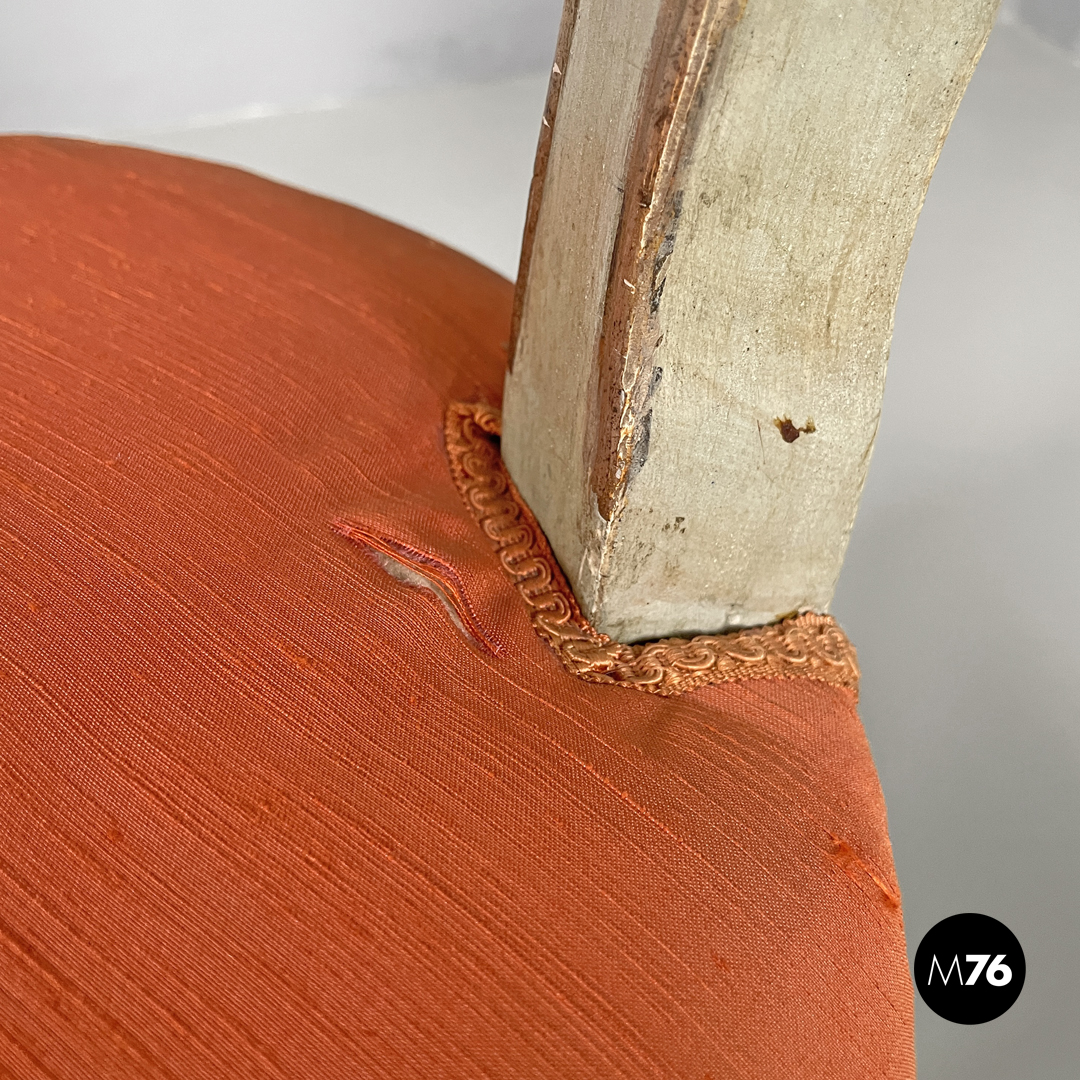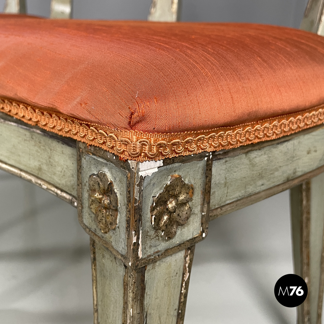 Sedie in legno verde ed oro e tessuto arancio, 1700 ca.