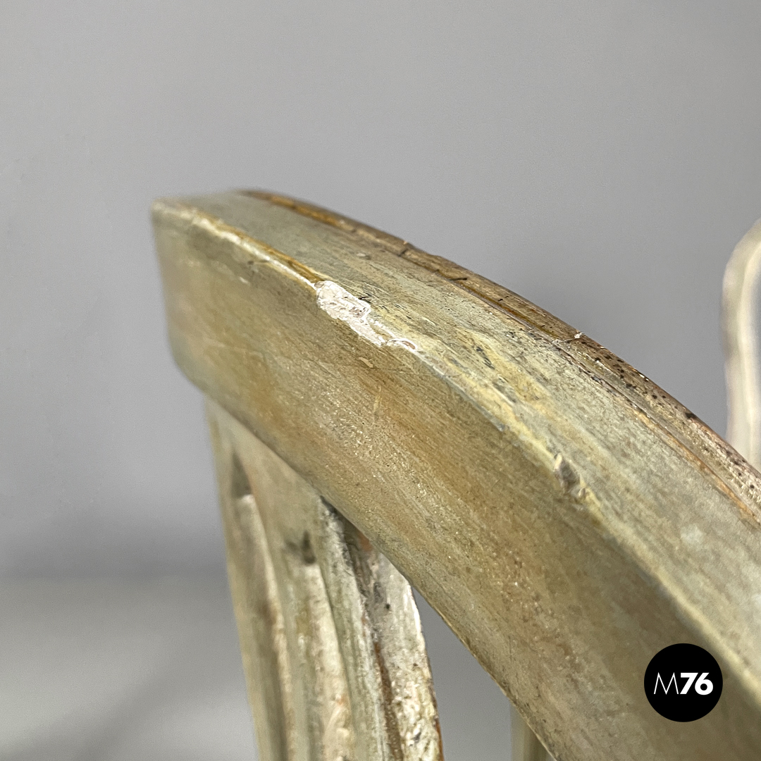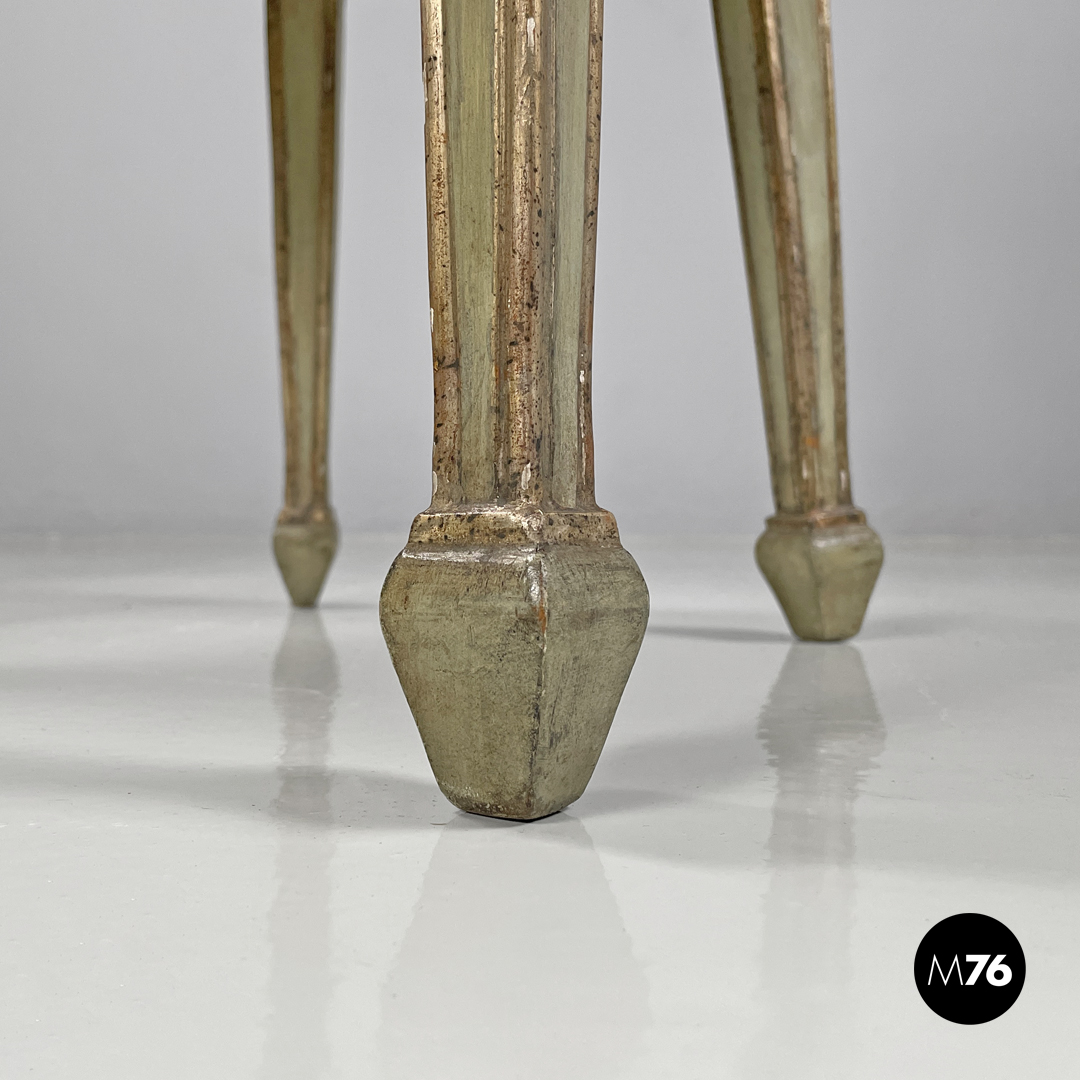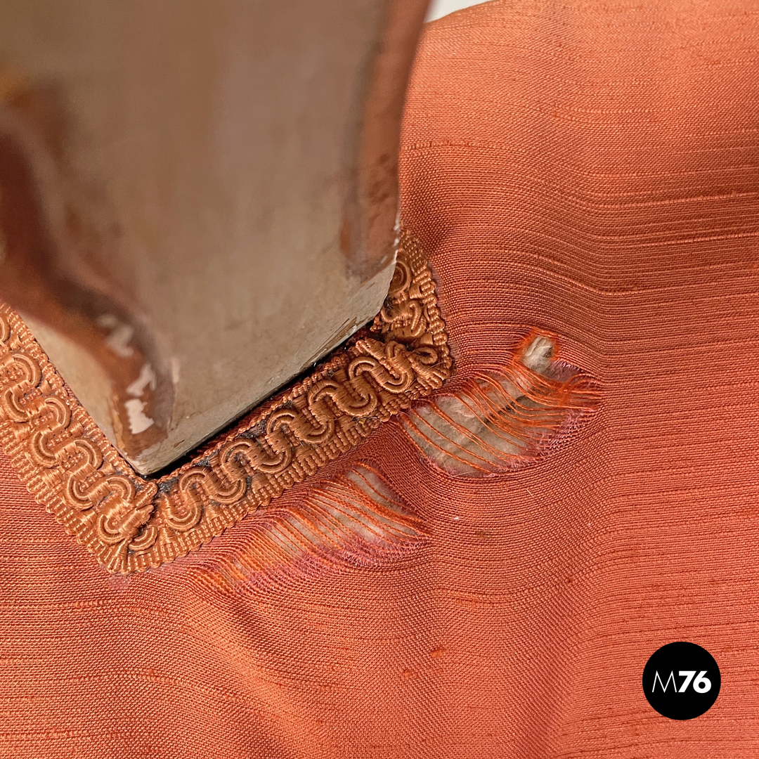 Sedie in legno verde ed oro e tessuto arancio, 1700 ca.