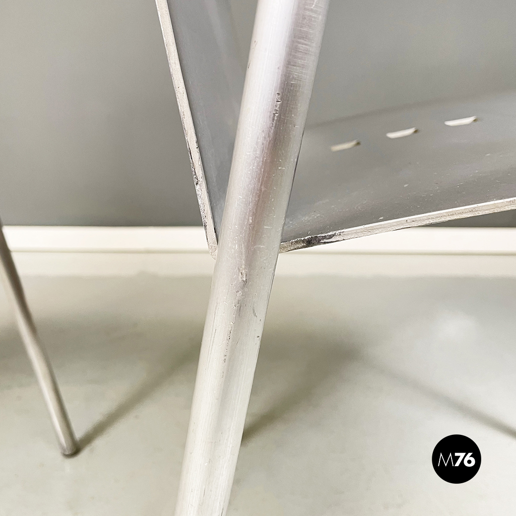 Coppia di sedie con seduta e schienale in metallo curvato. Le zampe e i braccioli della sedia sono composti da tubolari di metallo.