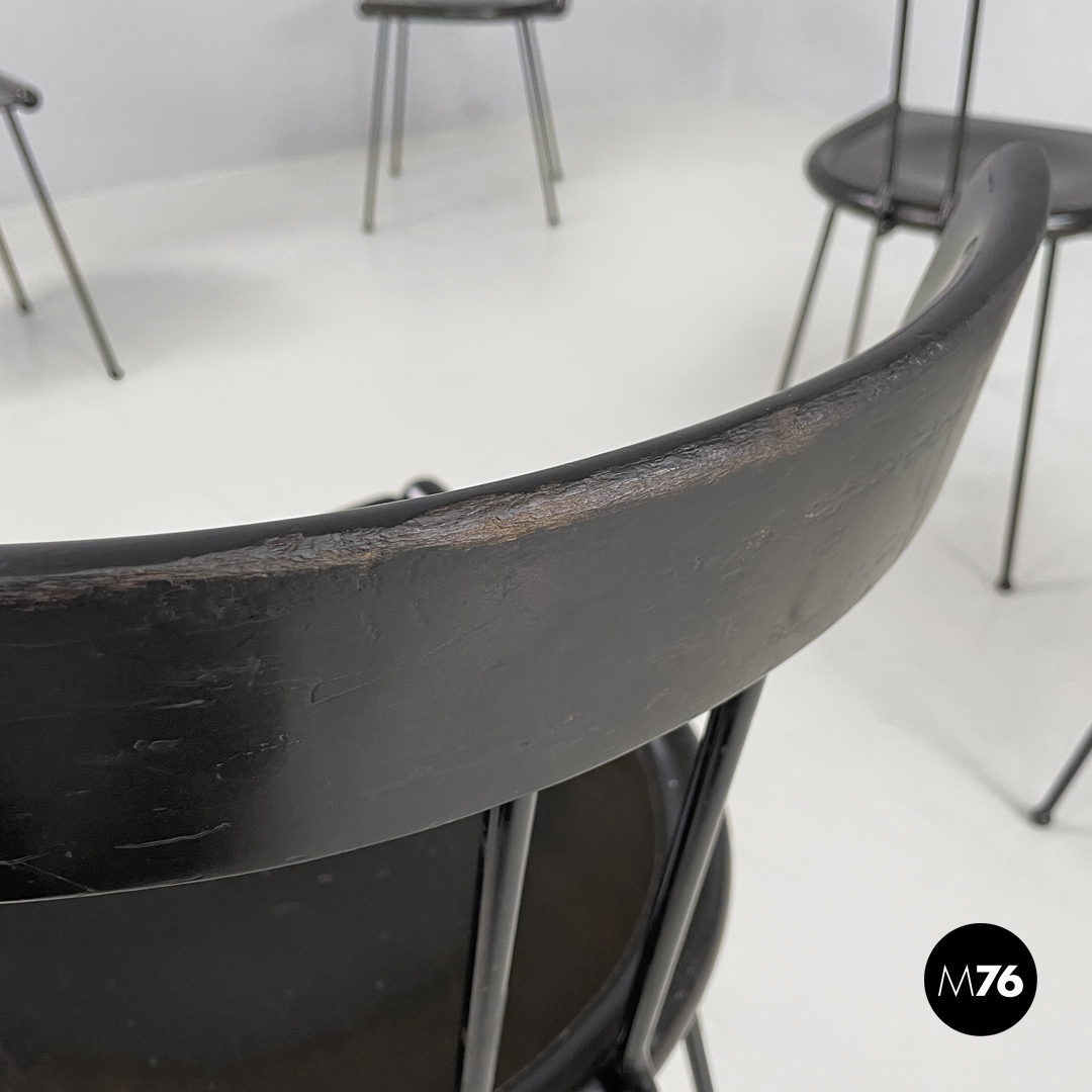 Sedie in metallo e legno nero, 1980 ca.