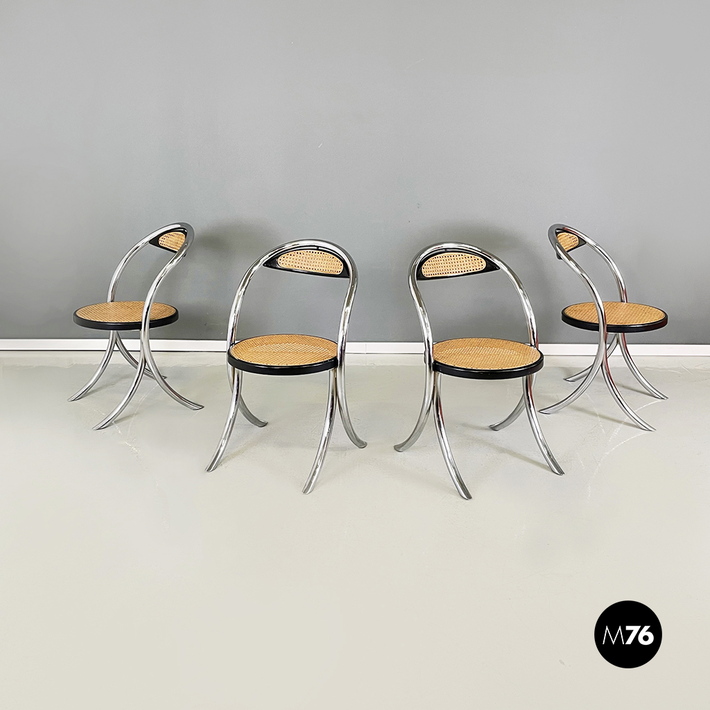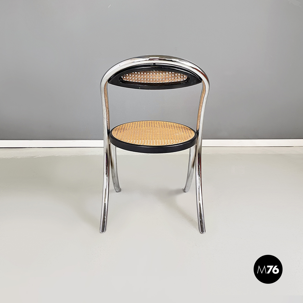 Sedie in paglia, acciaio e legno nero, 1970 ca.