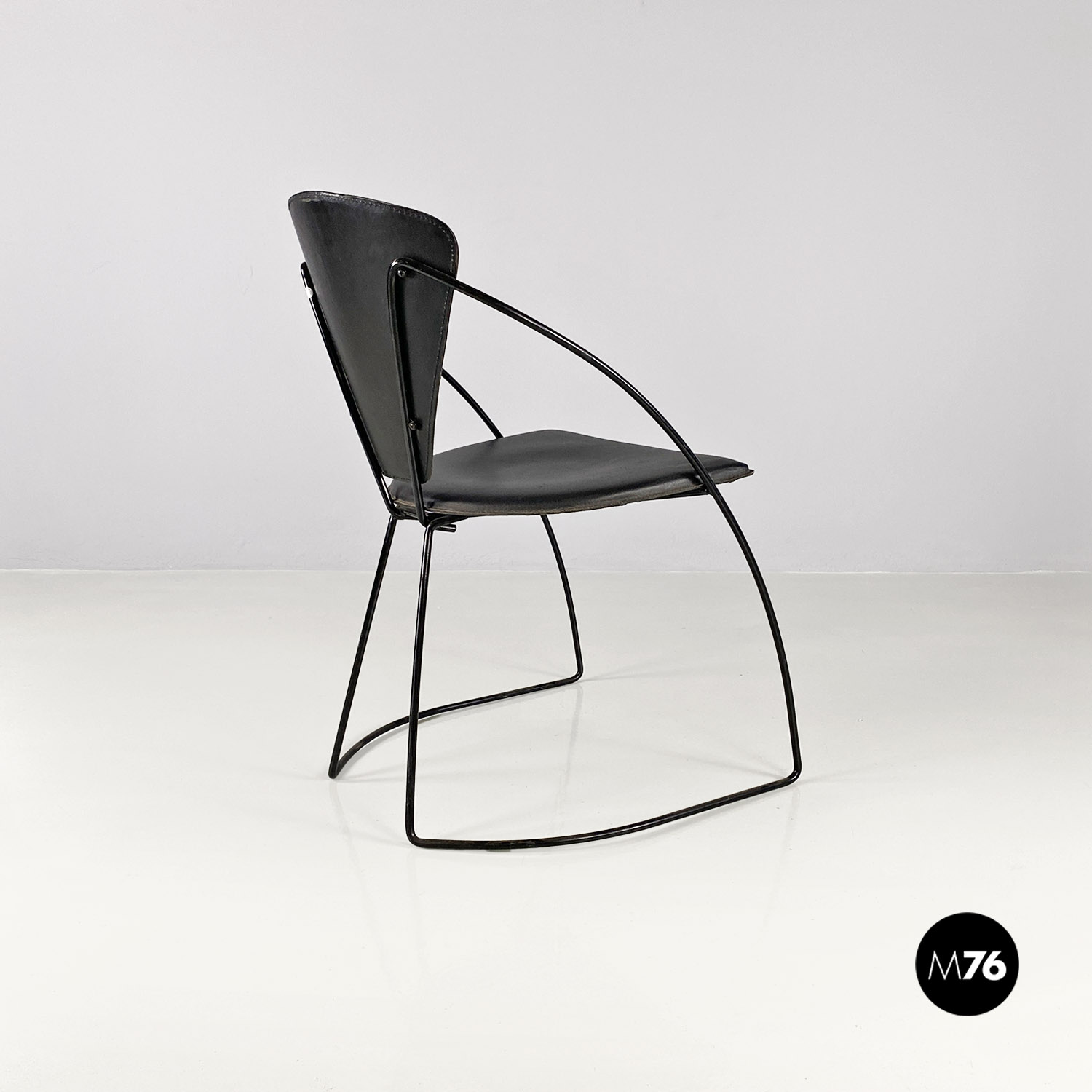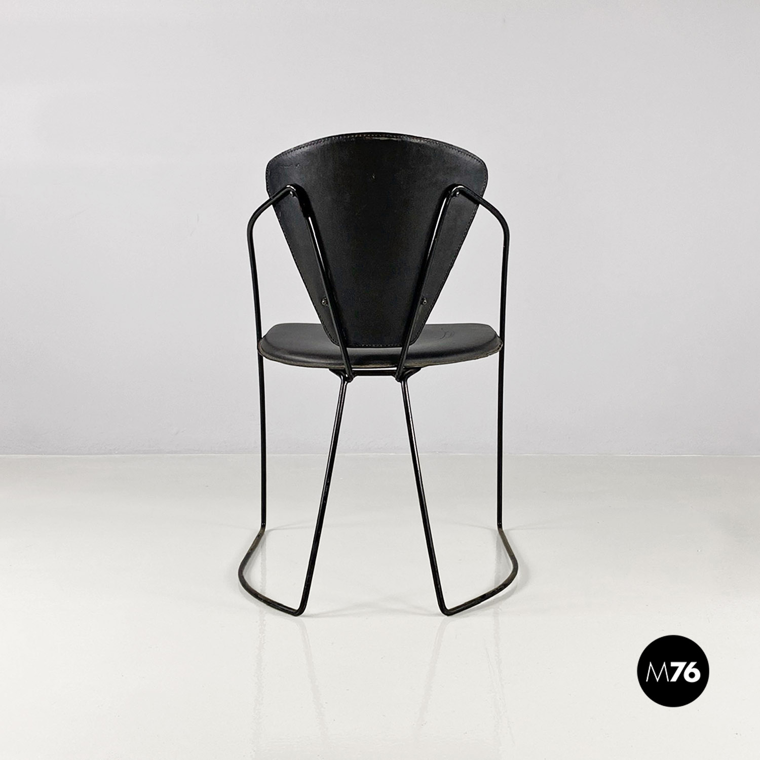 Sedie in pelle e metallo verniciato nero, 1980 ca.