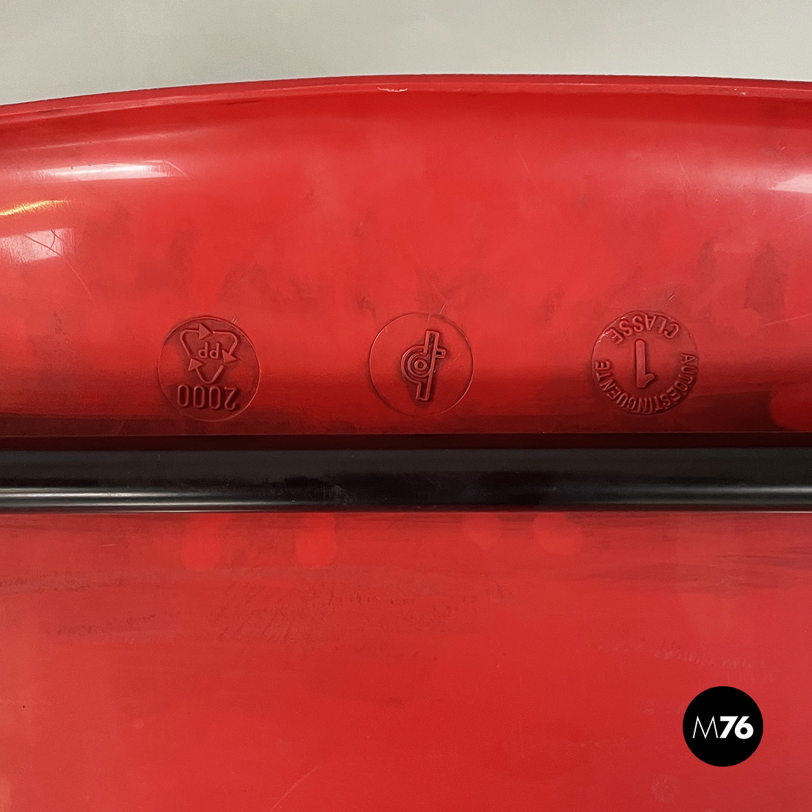 Sedie in plastica rossa e metallo nero, 2000