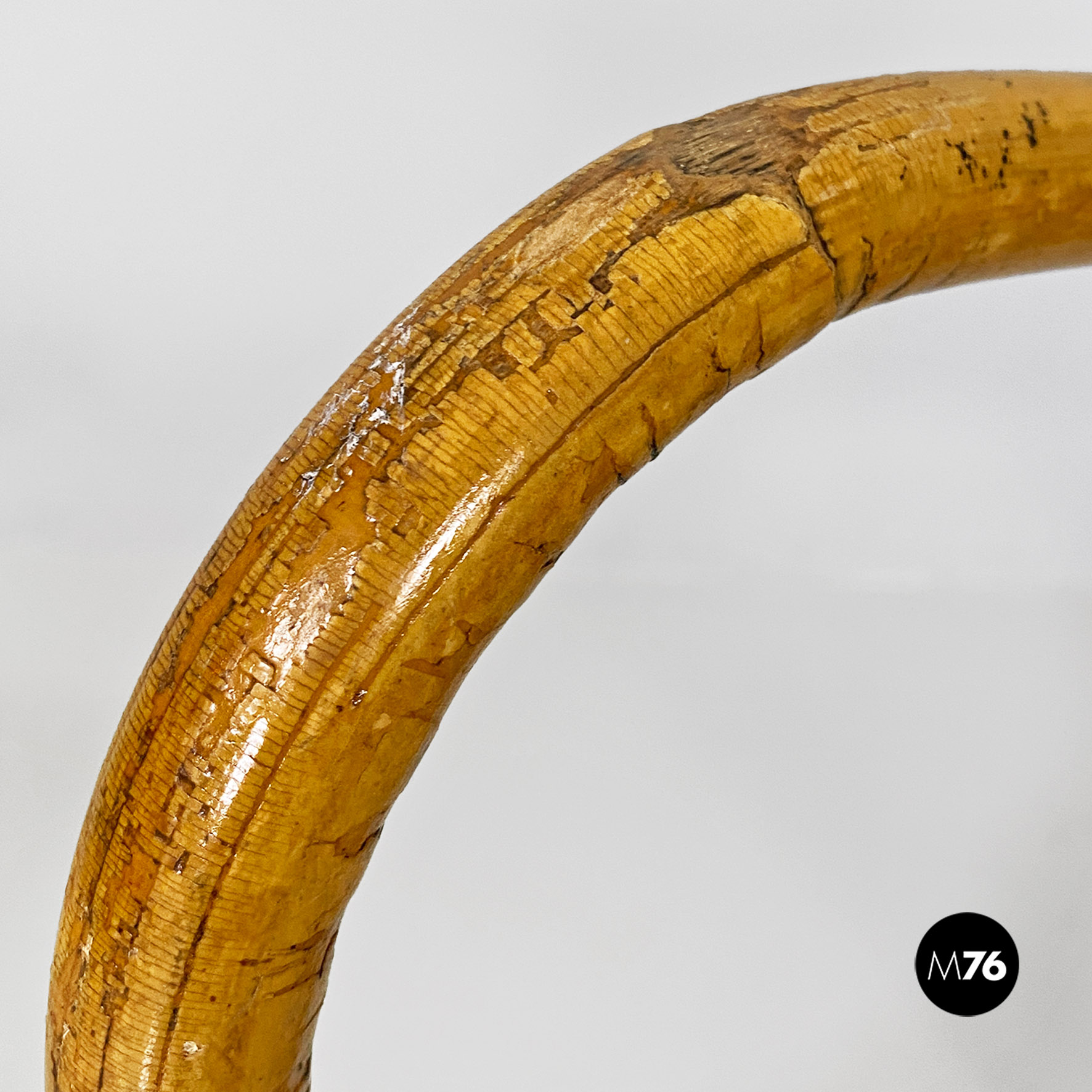 Condizioni discrete, con segni dell’uso e del tempo sparsi, uno degli schienali presenta una rottura del rattan.
