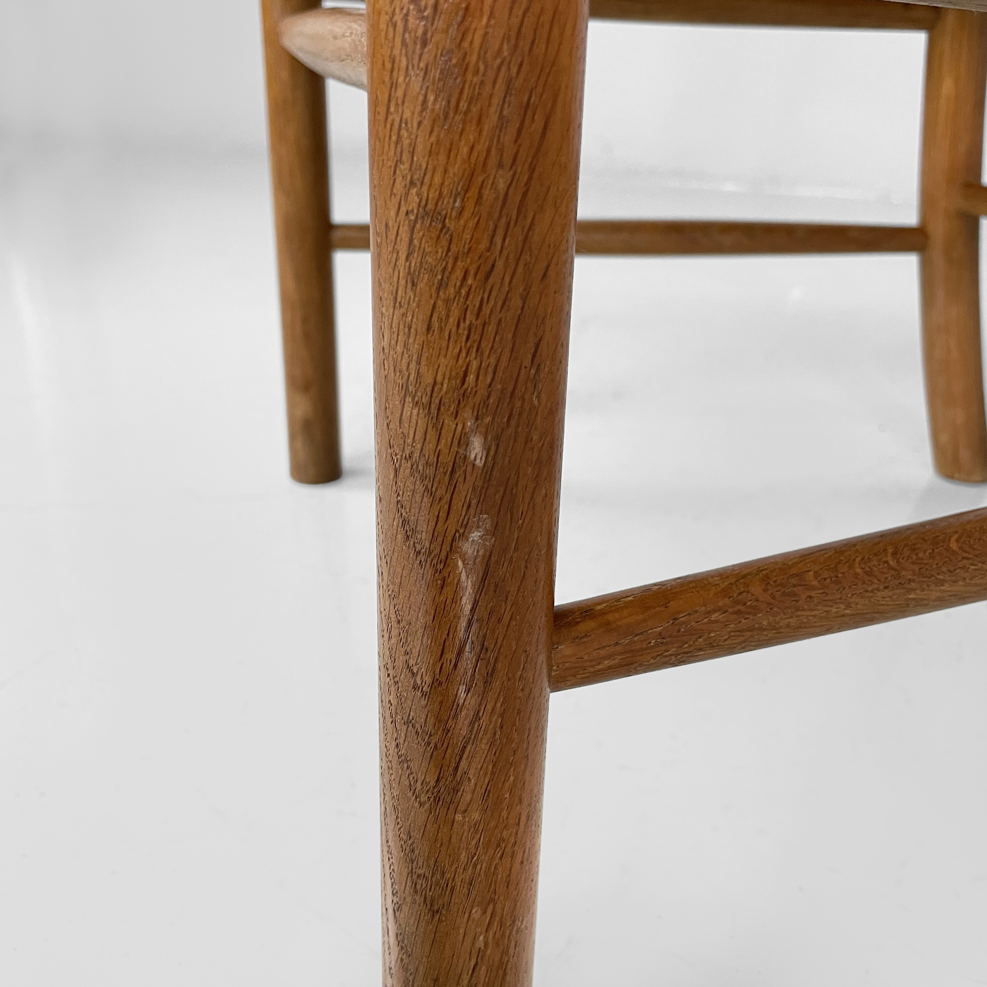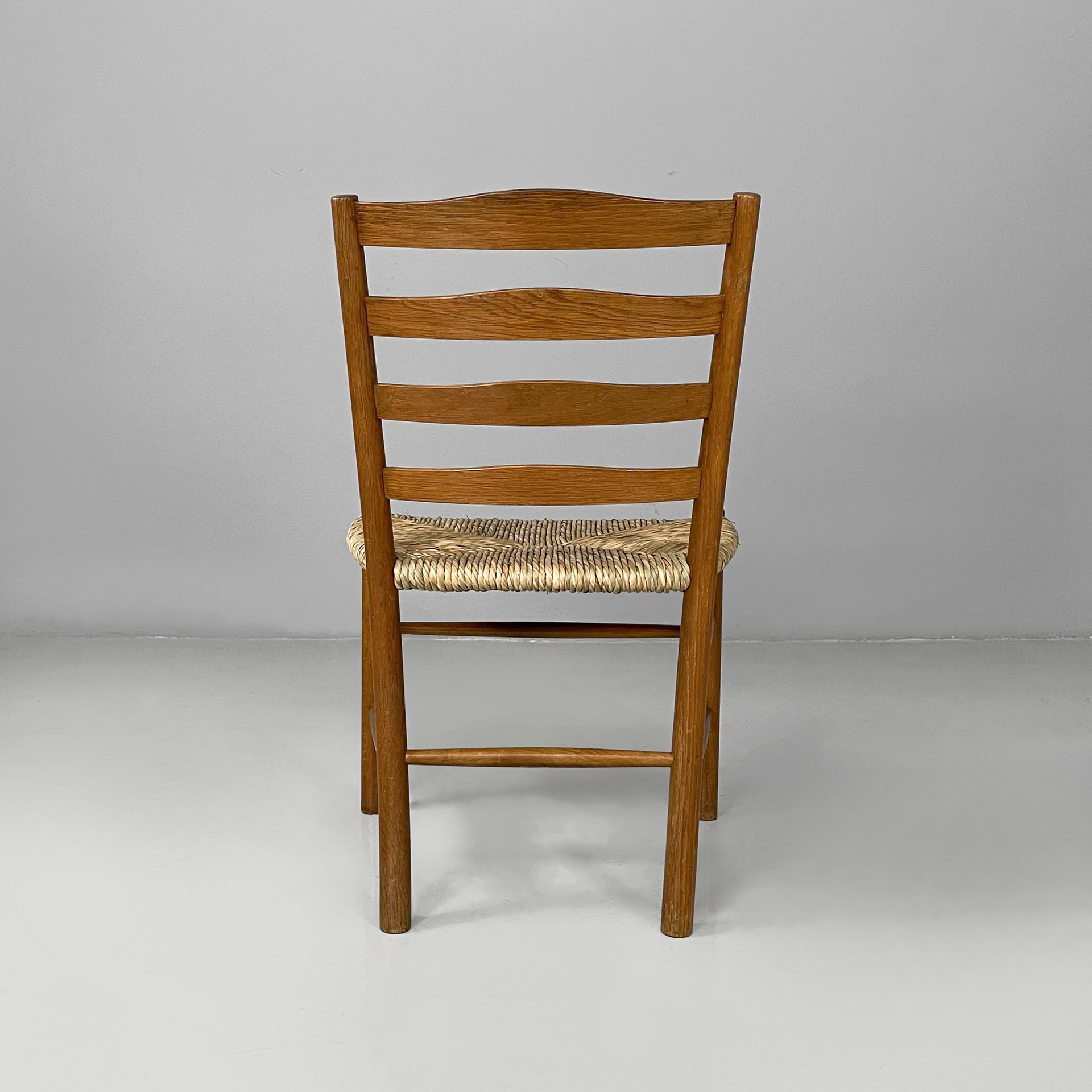 Set di cinque sedie modello Church Chair o Kirkestol con seduta in paglia intrecciata. Lo schienale è composto da listelli sagomati in legno. Le zampe a sezione tonda sono anche esse in legno.