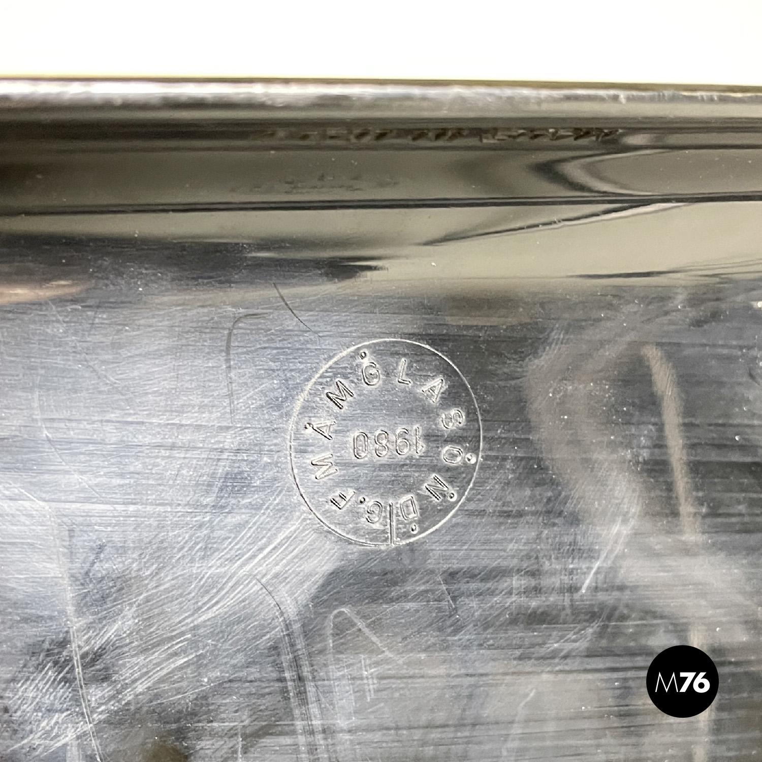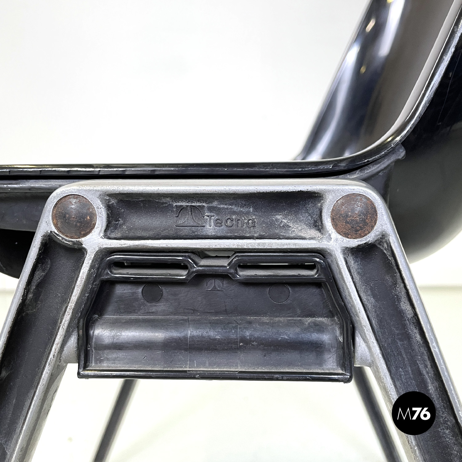 Prodotte da Tecno nel 1980 ca. e disegnate da Osvaldo Borsani nel 1973. Logo dell’azienda impresso su un fianco e sullo schienale, dove si trova anche un’etichetta con il numero di serie di ciascuna sedia. Un’ulteriore logo con il nome del modello è presente sotto la seduta.