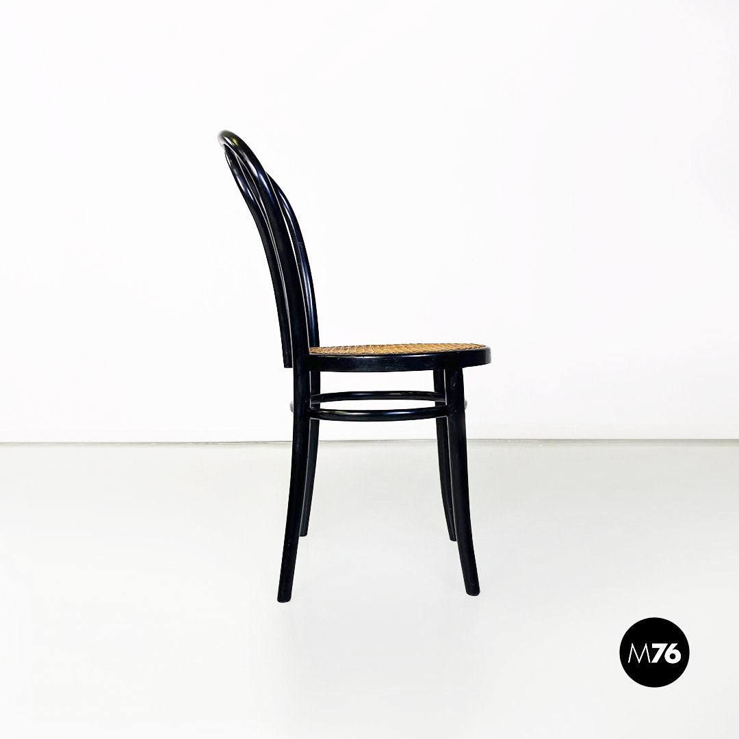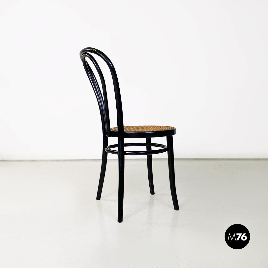 Set di sei sedie note come modello N.18, con struttura in legno di faggio curvato con verniciatura nera ed impagliatura con paglia di Vienna dell’epoca fatta a mano, ancora integra.