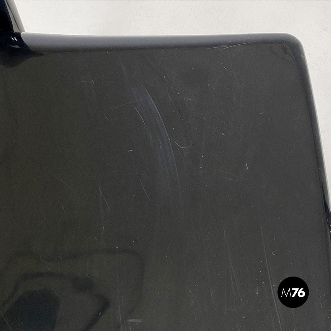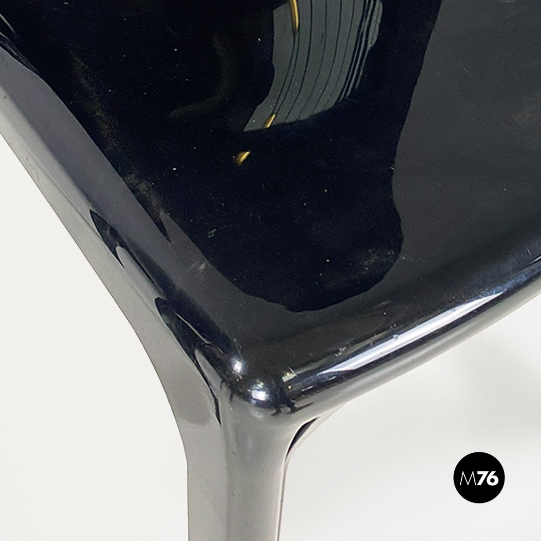 Coppia sedie modello Selene con struttura a monoscocca in plastica nera lucida, con seduta dalla forma quadrata e con scanalature lungo le zampe che permettono di impilare le sedie.