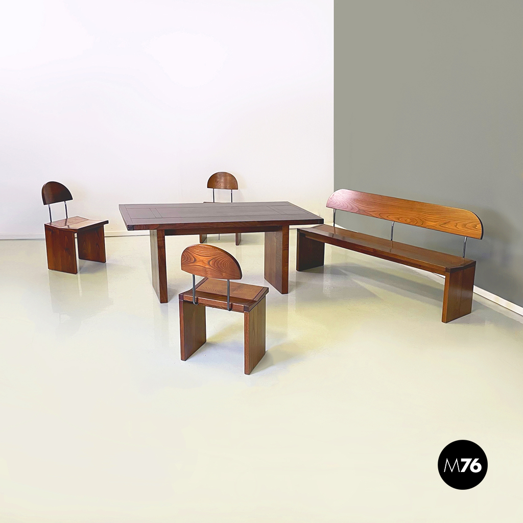 Sedie, tavolo da pranzo e panca in legno, 1980 ca.