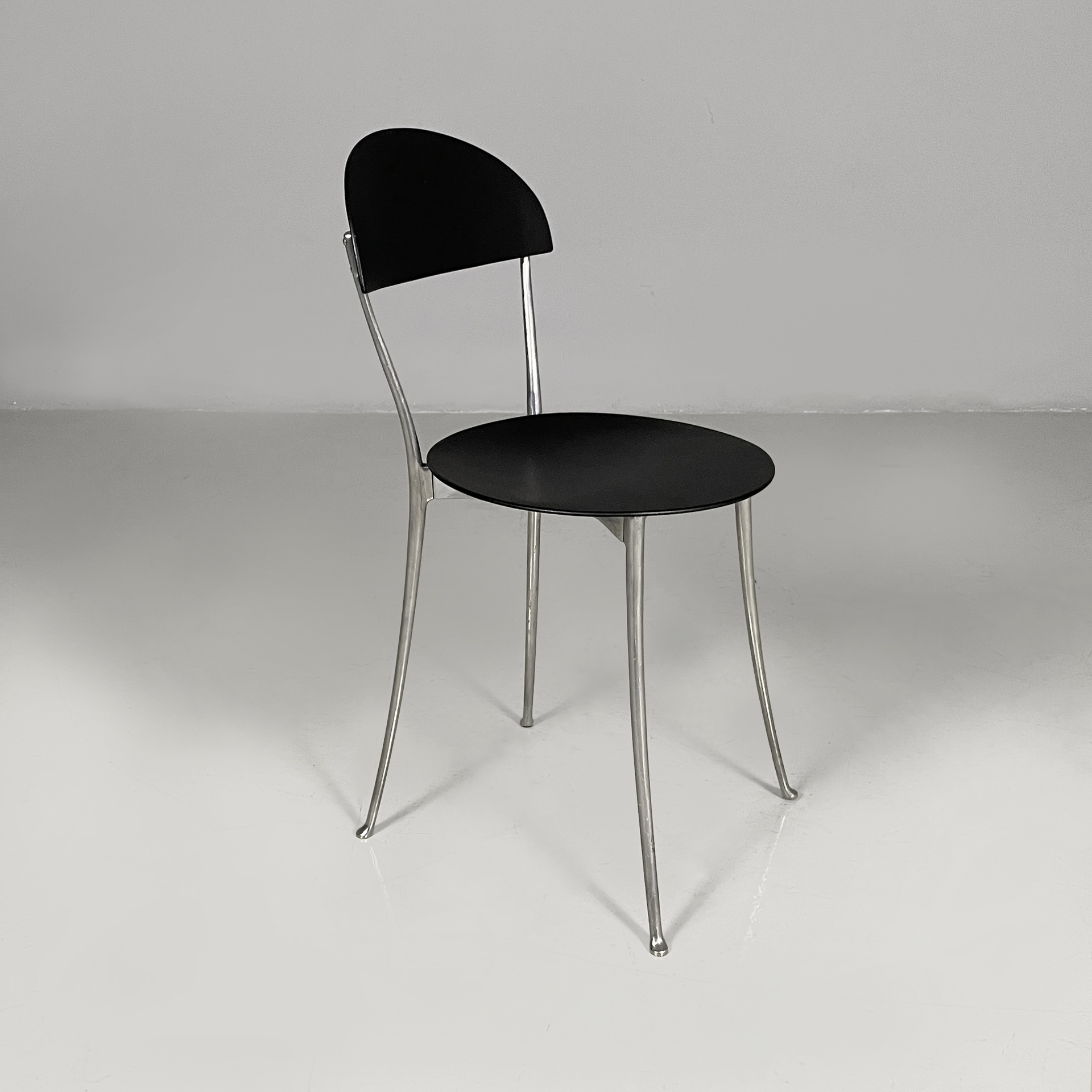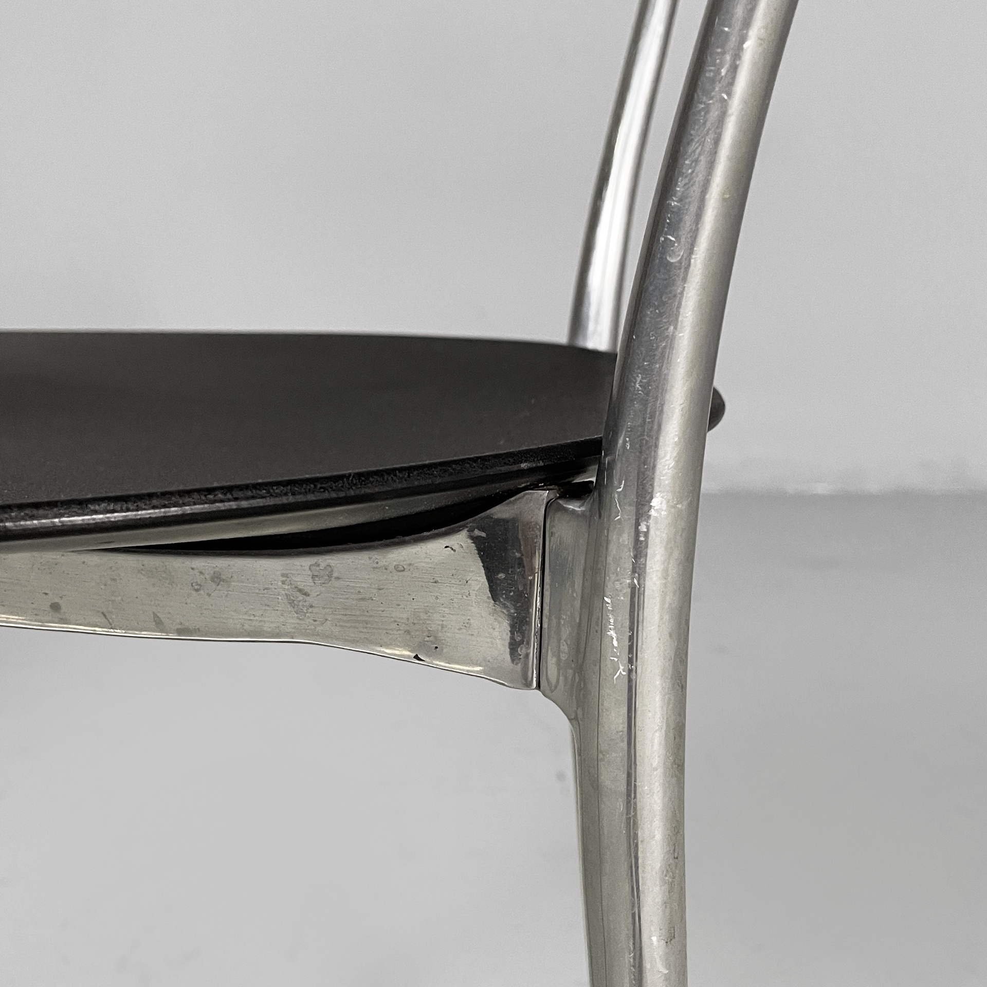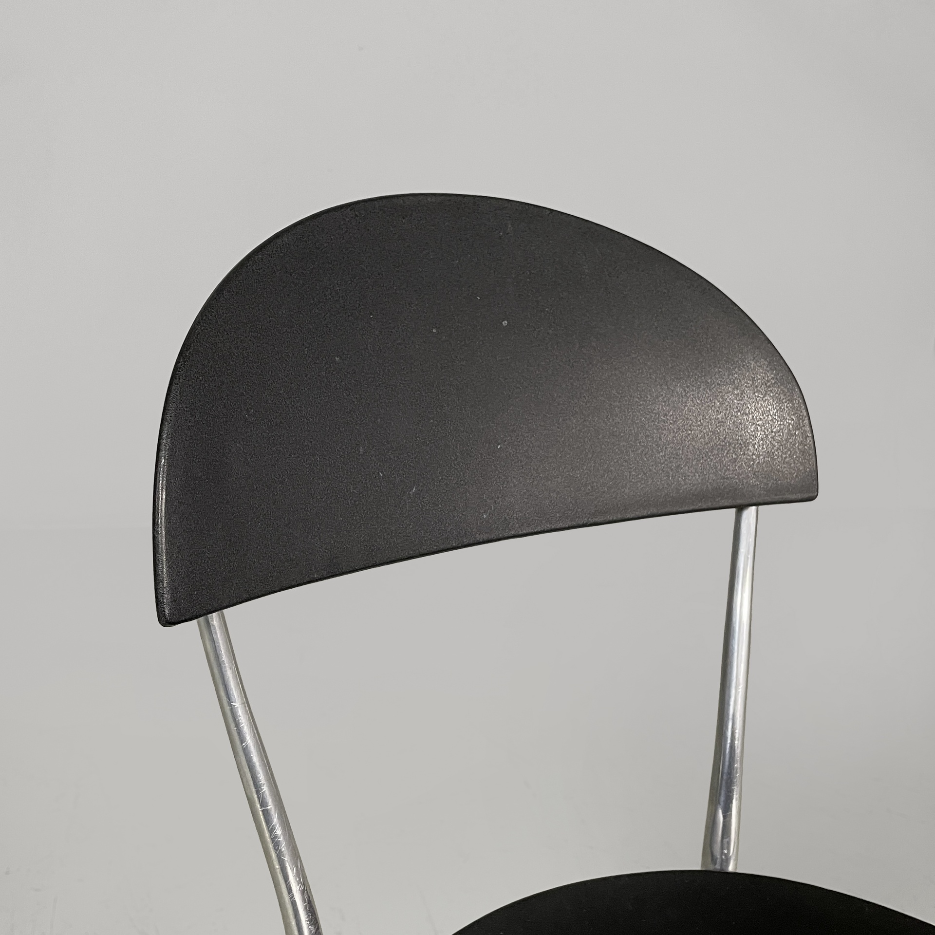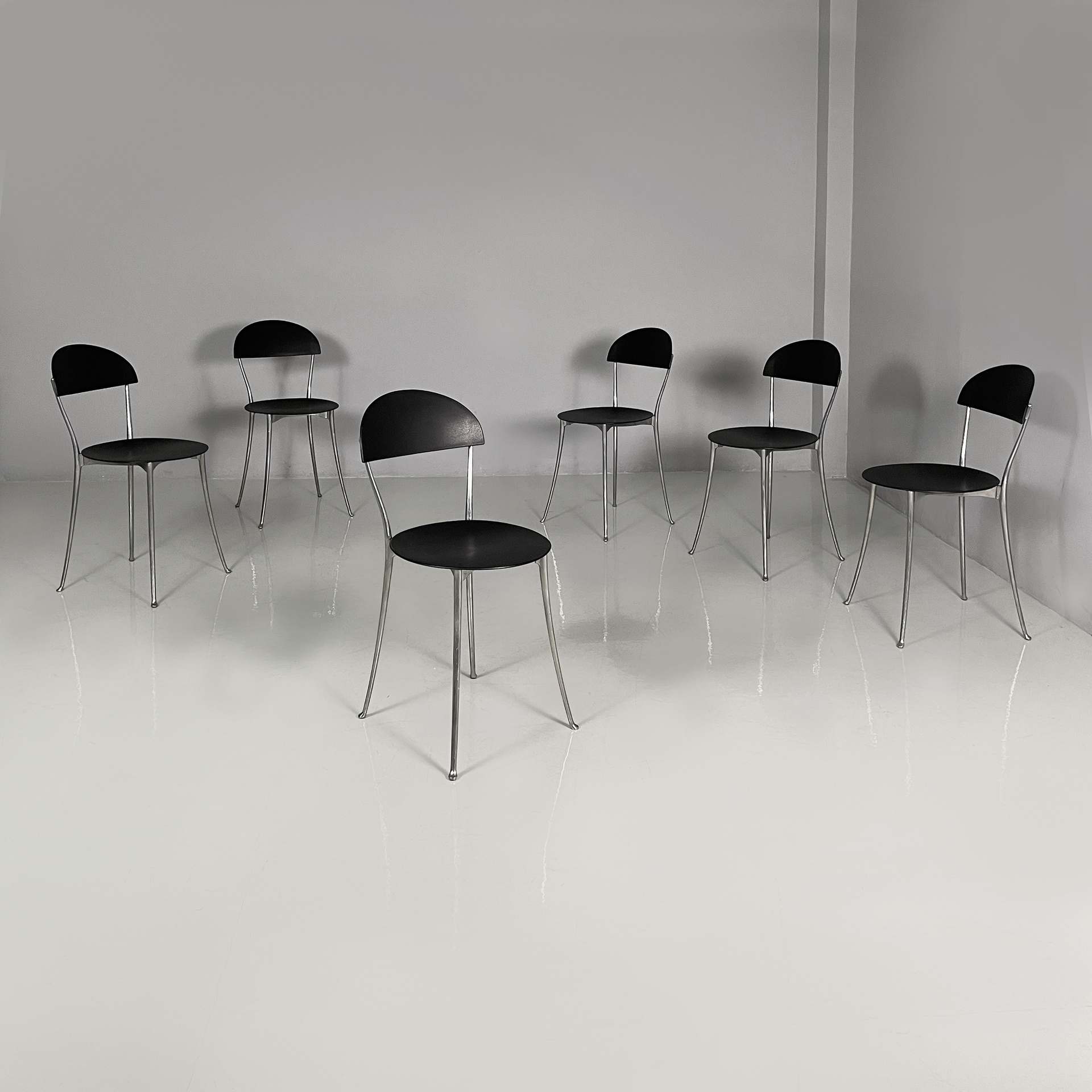 Set di sei sedie modello Tonietta, conosciute anche come 2090, con schienale a mezzaluna e seduta tonda in plastica nera. La struttura e le zampe a sezione tonda sono in alluminio.