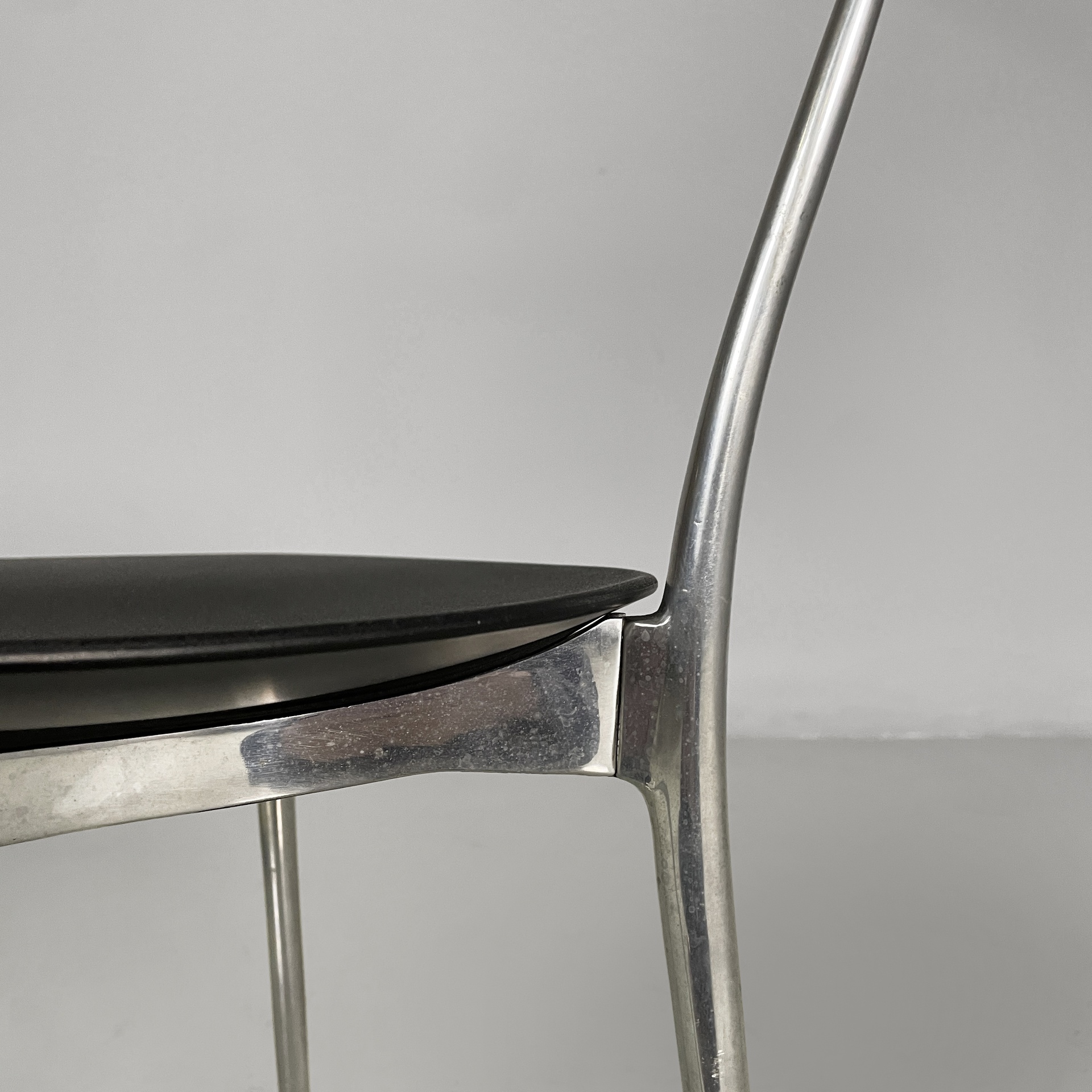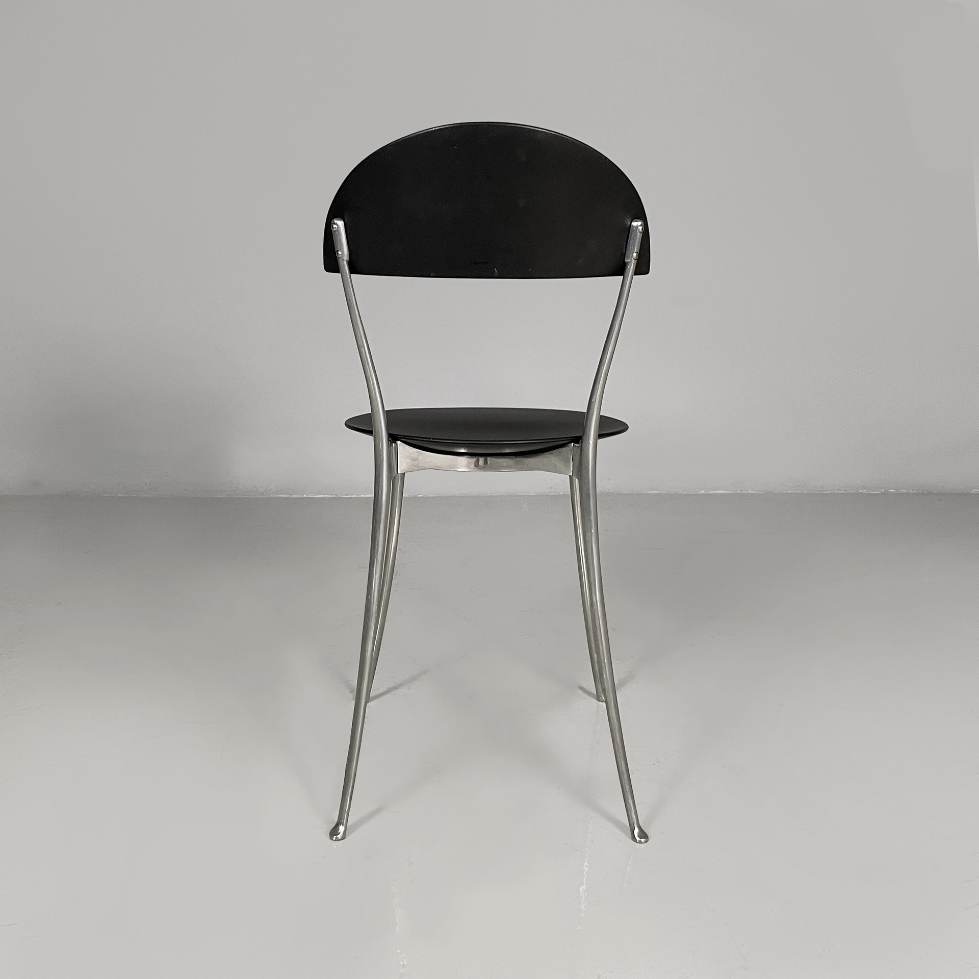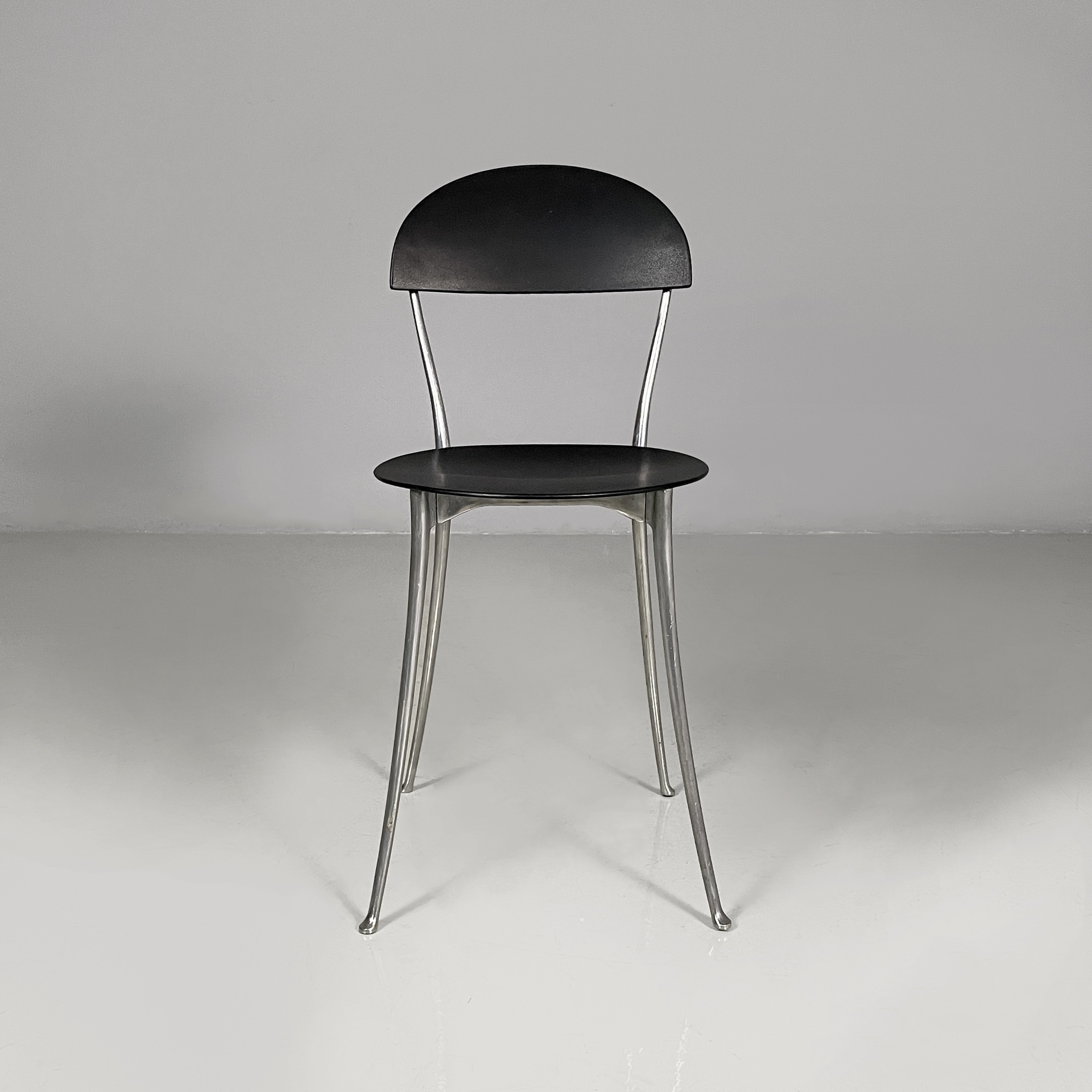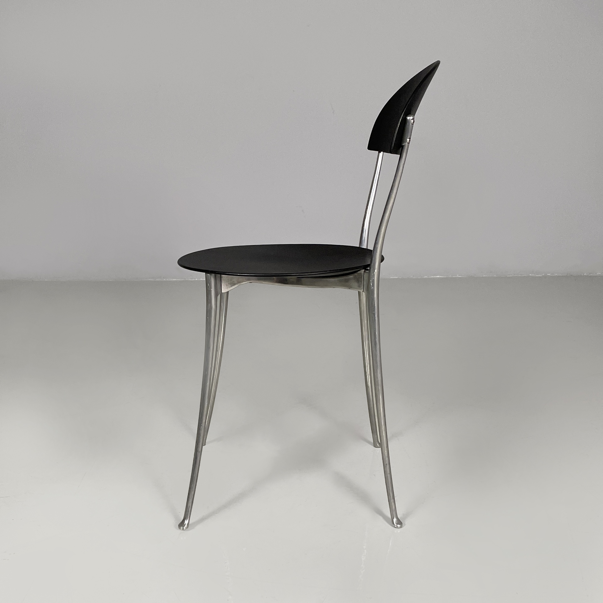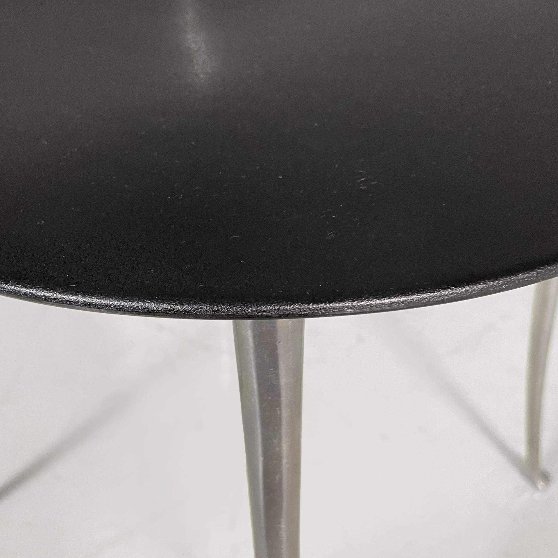 Set di sei sedie modello Tonietta, conosciute anche come 2090, con schienale a mezzaluna e seduta tonda in plastica nera. La struttura e le zampe a sezione tonda sono in alluminio.