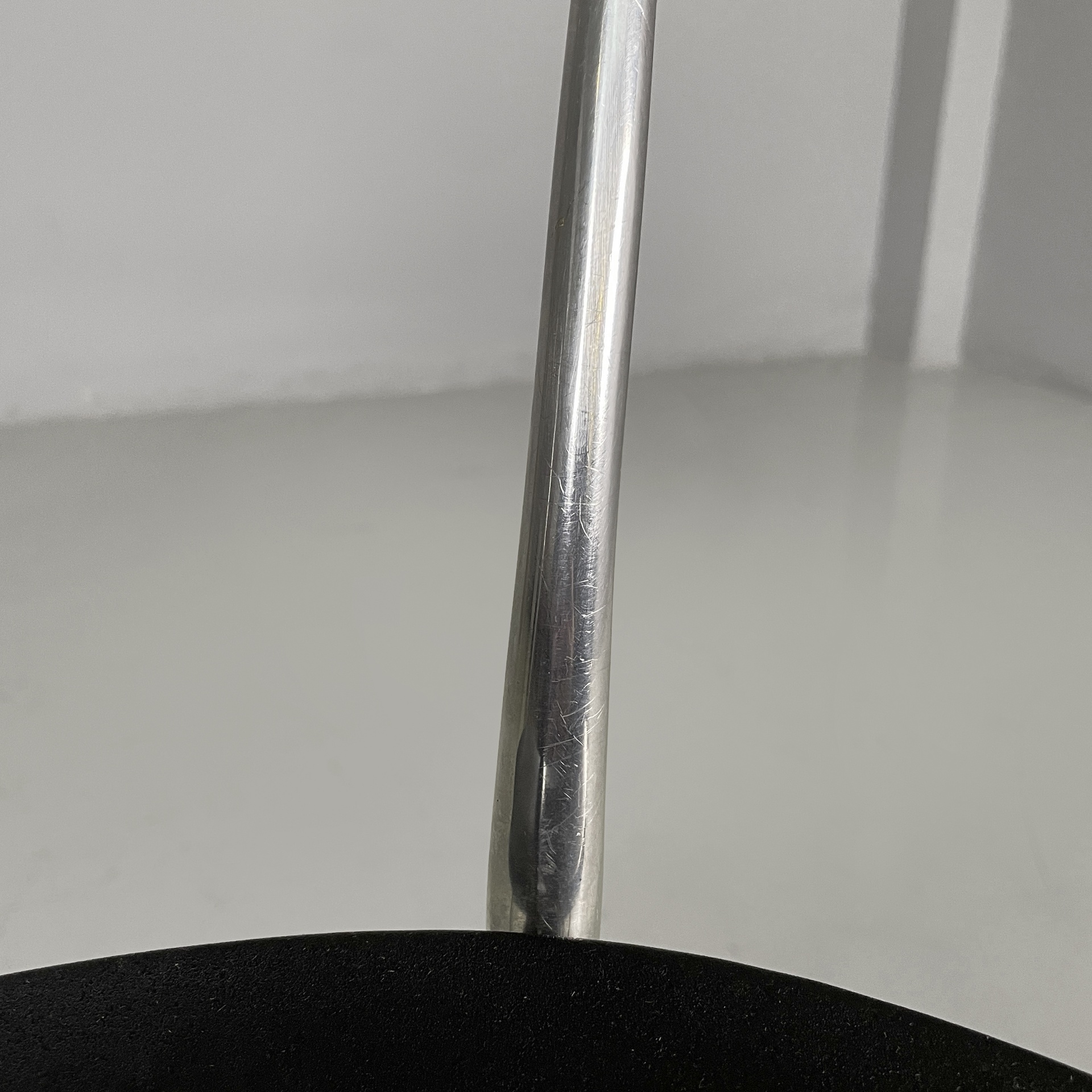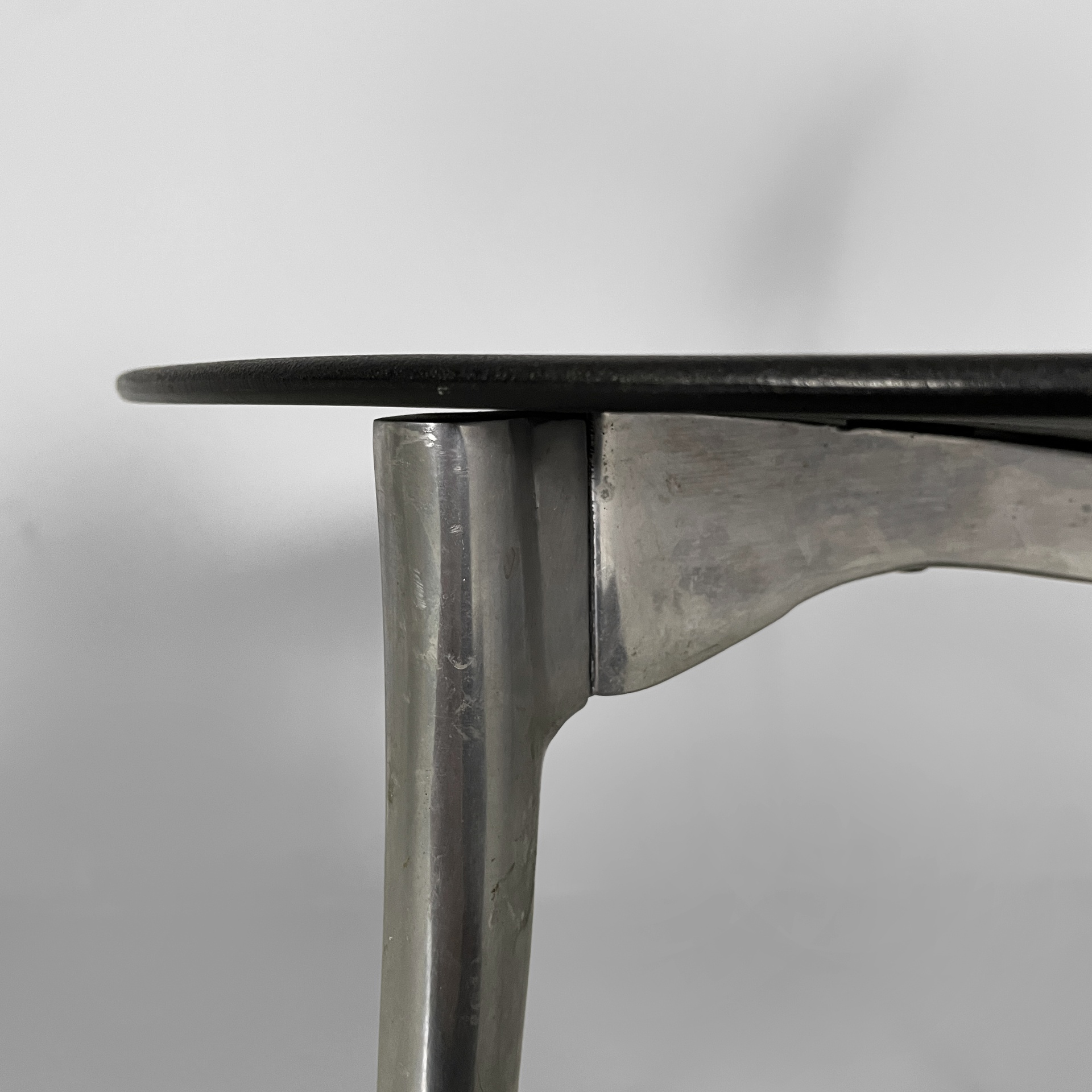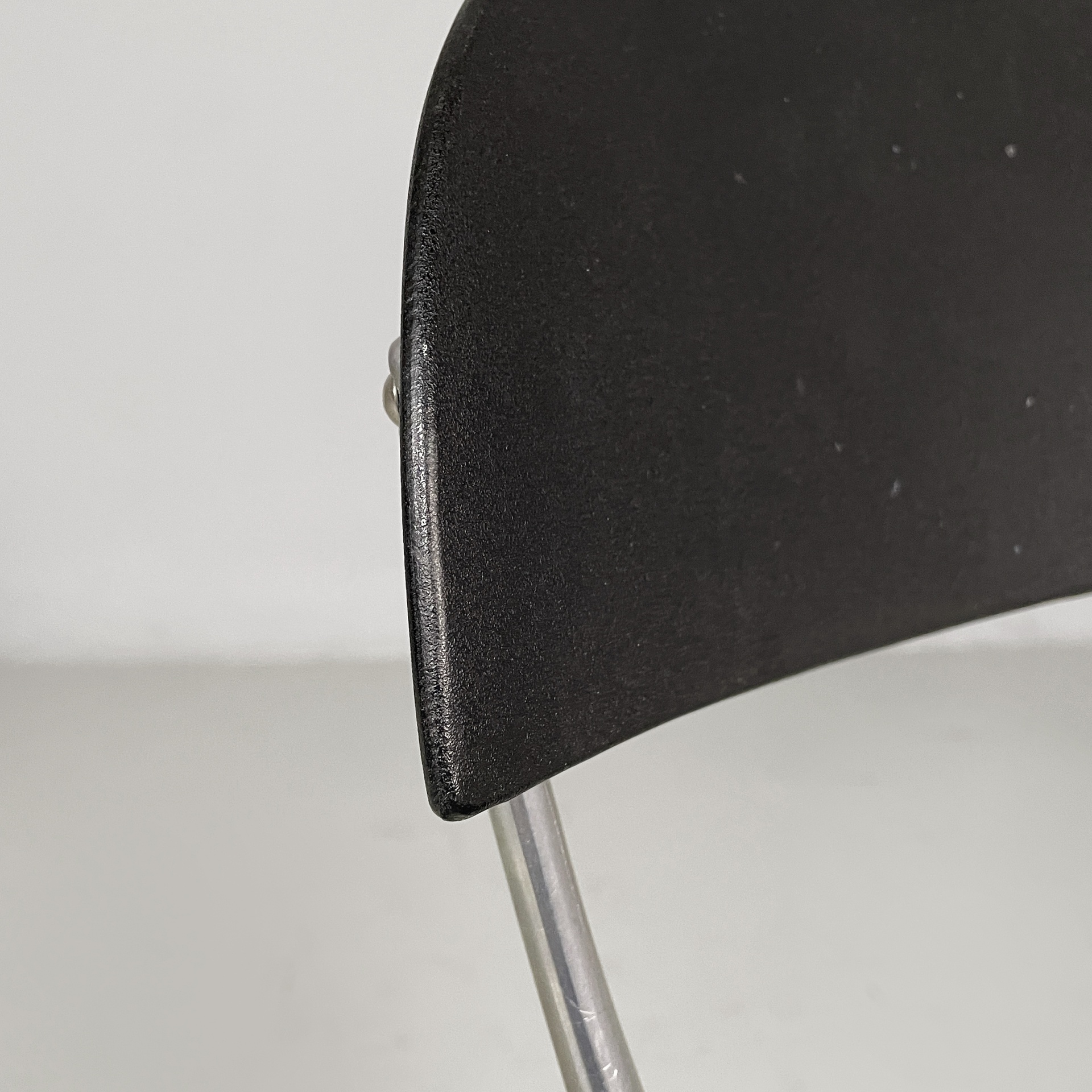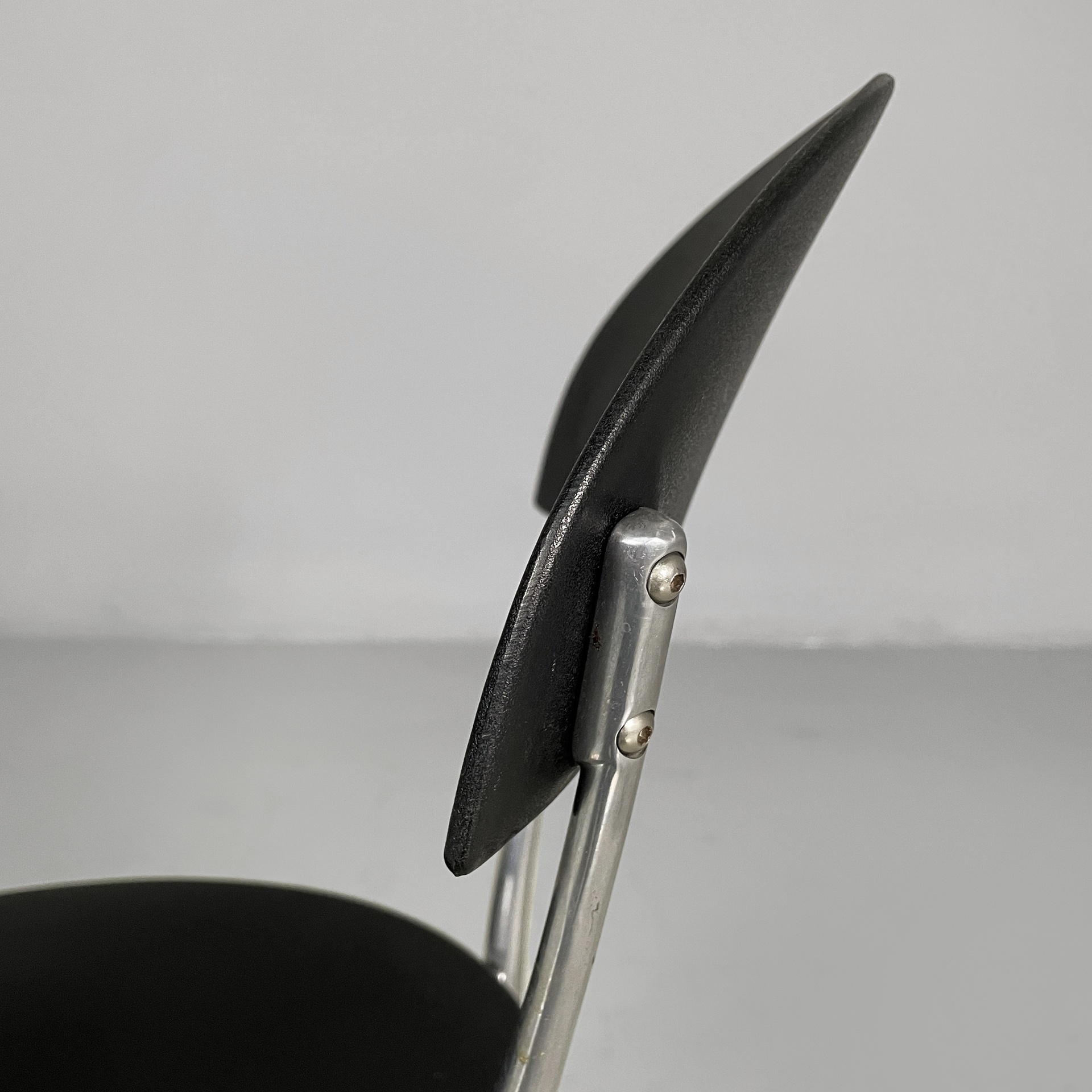 Set di sei sedie modello Tonietta, conosciute anche come 2090, con schienale a mezzaluna e seduta tonda in plastica nera. La struttura e le zampe a sezione tonda sono in alluminio.
