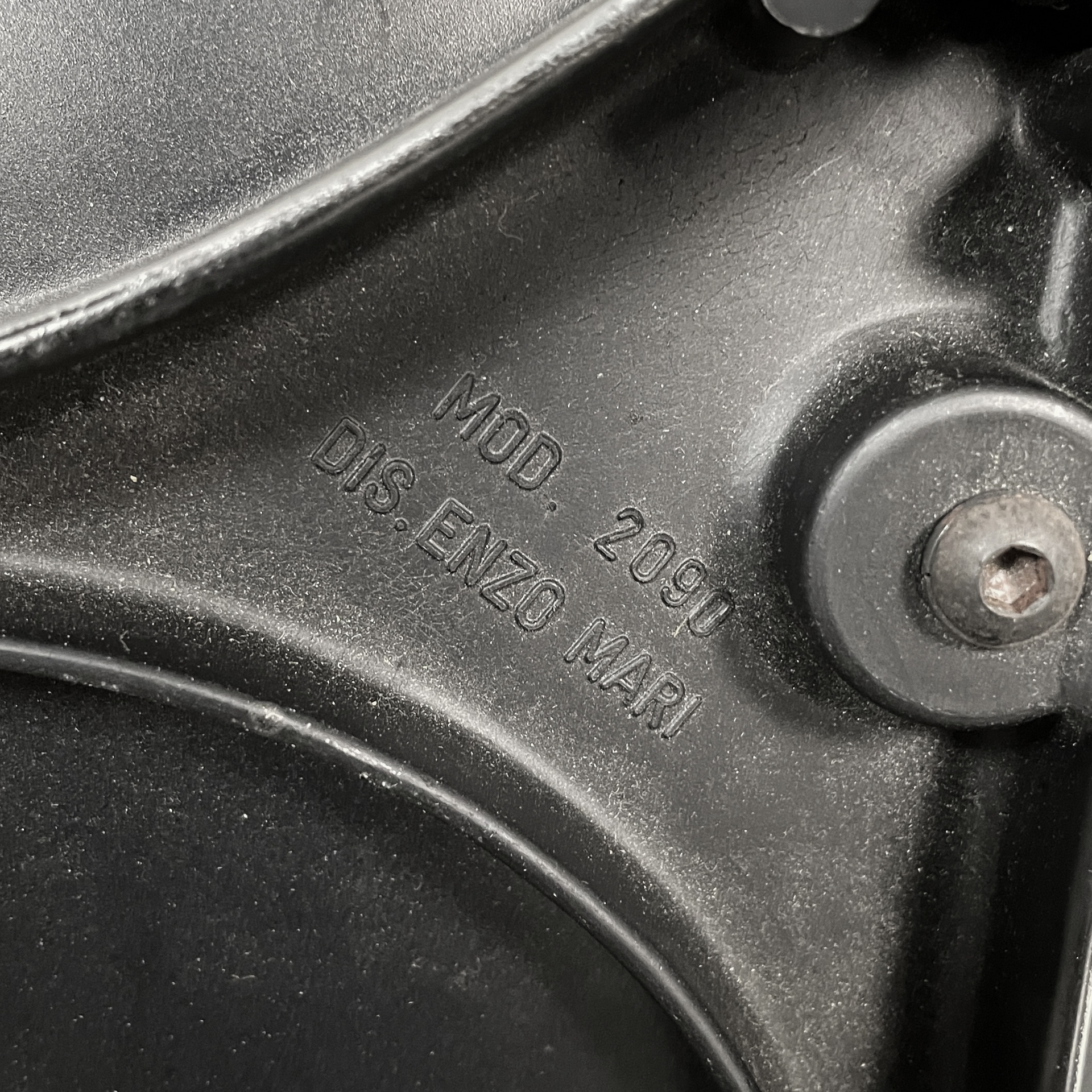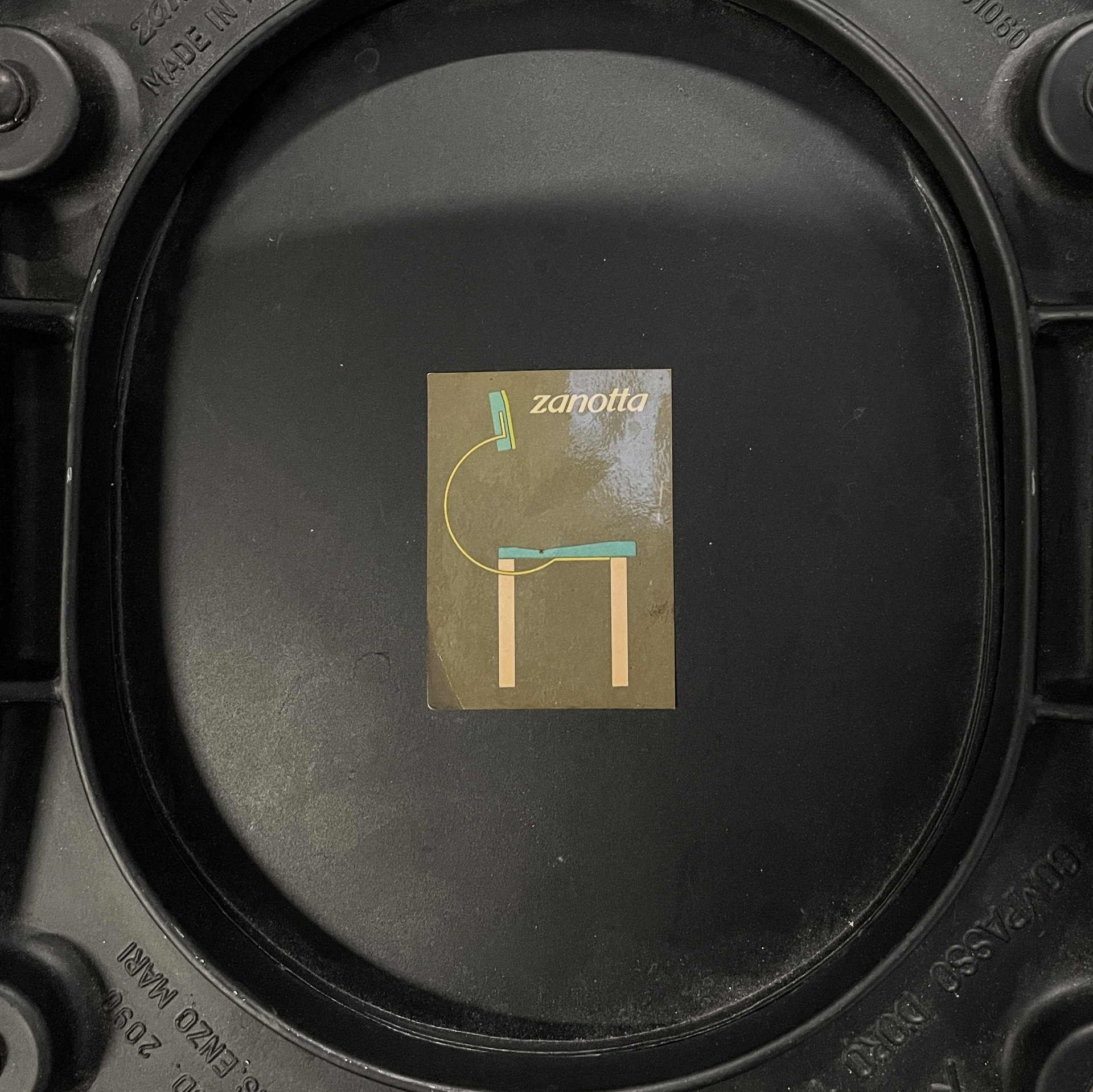 Prodotte da Zanotta nel 1980 ca. e disegnate da Enzo Mari. Logo impresso nella plastica ed etichetta sotto la seduta. Vincitore del Compasso d’Oro nel 1987.