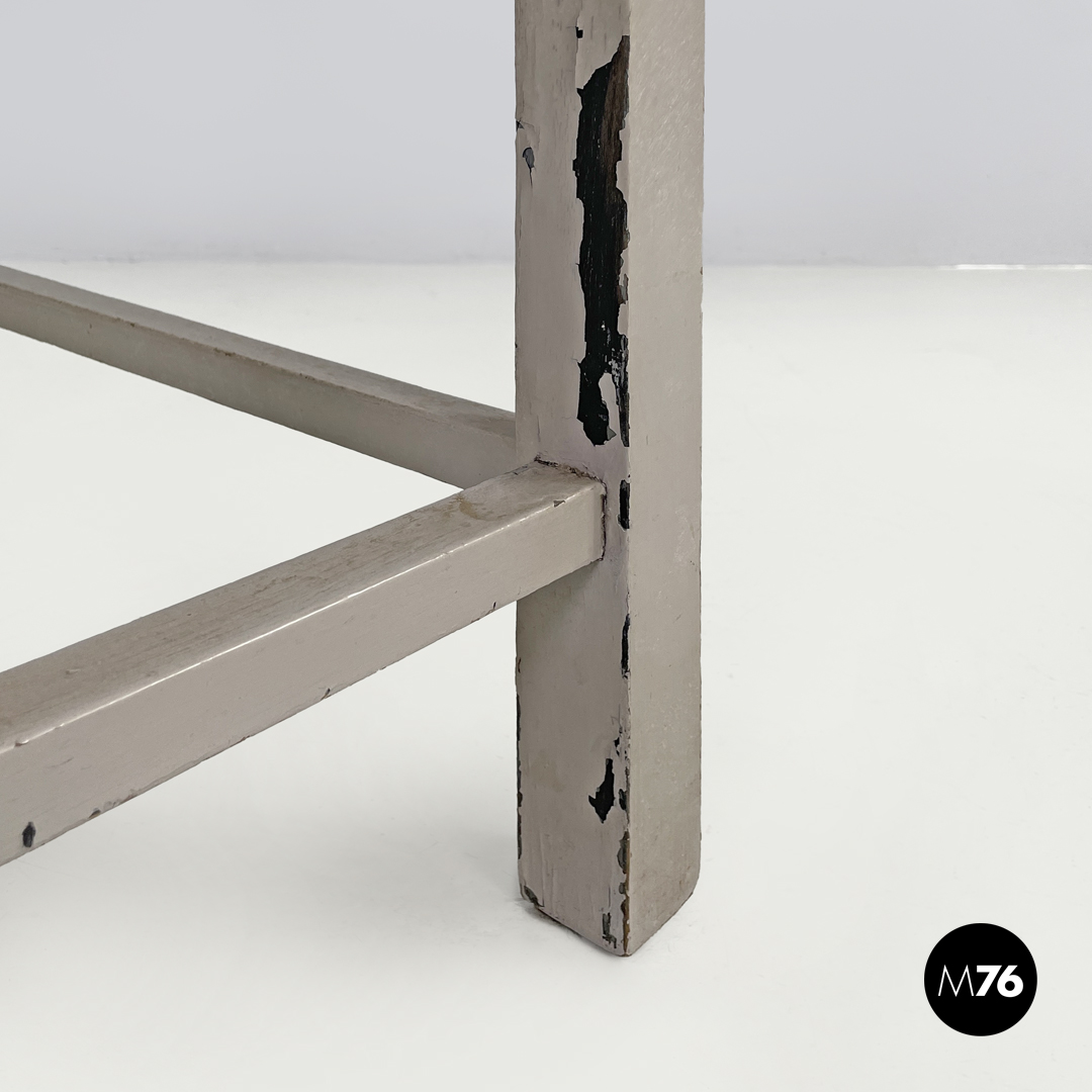 Condizioni vintage, con segni dell’uso e del tempo, con graffi e mancanze di colore della struttura. La seduta presenta imbottitura e tessuto nuovi.