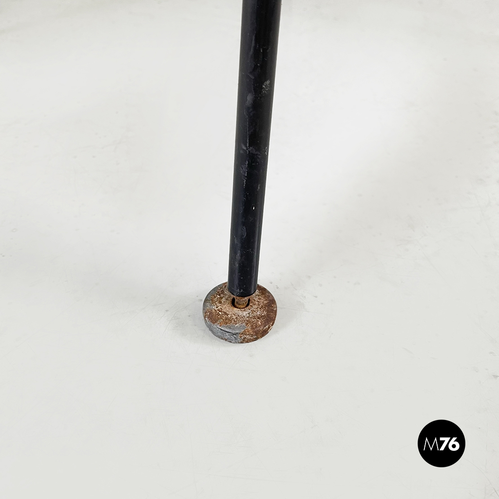 Buone condizioni, piccoli segni sparsi. Ad uno sgabello manca un piccolo pezzetto di tondino di metallo.