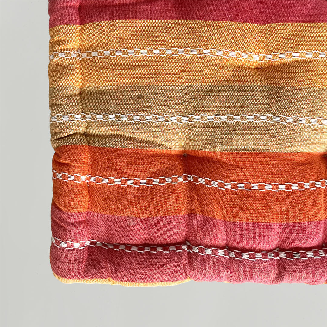 Condizioni vintage, presenti segni del tempo sul metallo delle sedie e sui cuscini.
