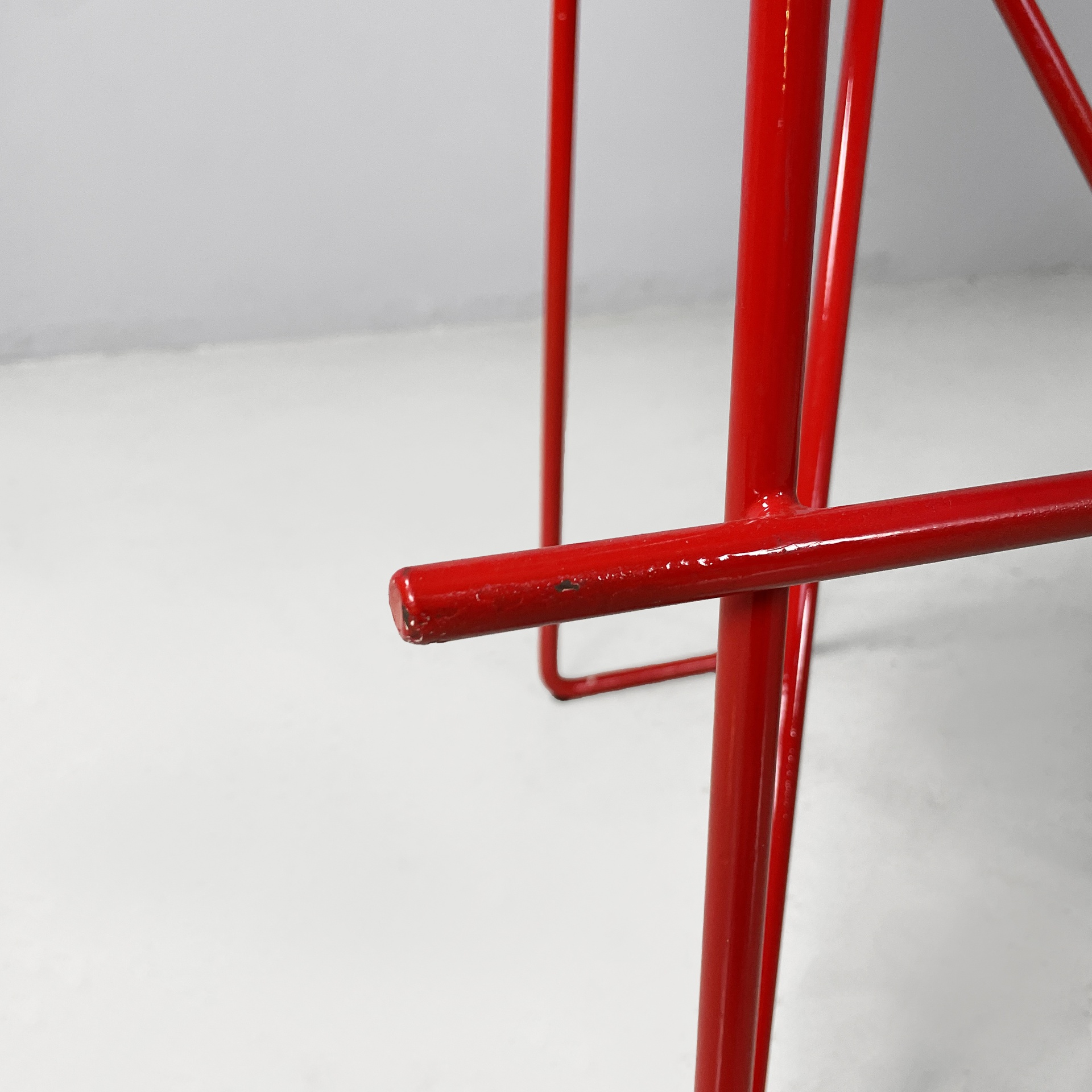 Sgabelli in legno e metallo rosso, 1980 ca.