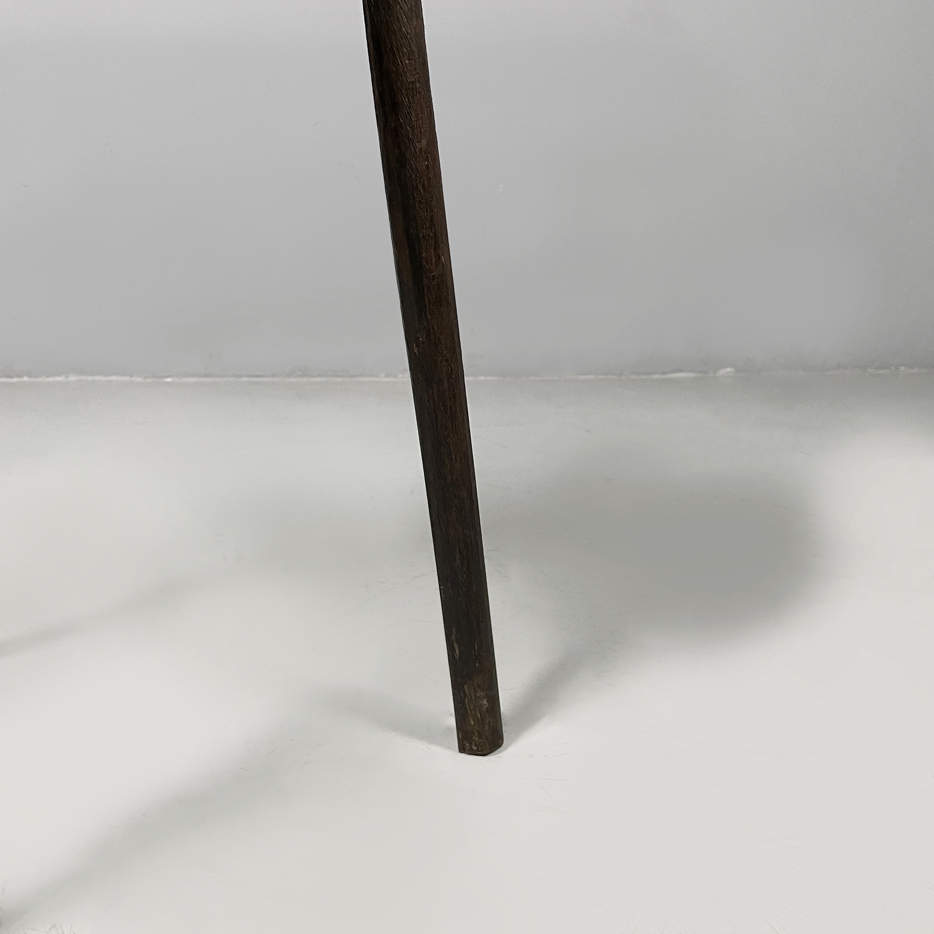Sgabello da tavolo in legno scuro. La seduta tonda è sostenuta da tre zampe a sezione tonda. In stile 1800 ca.