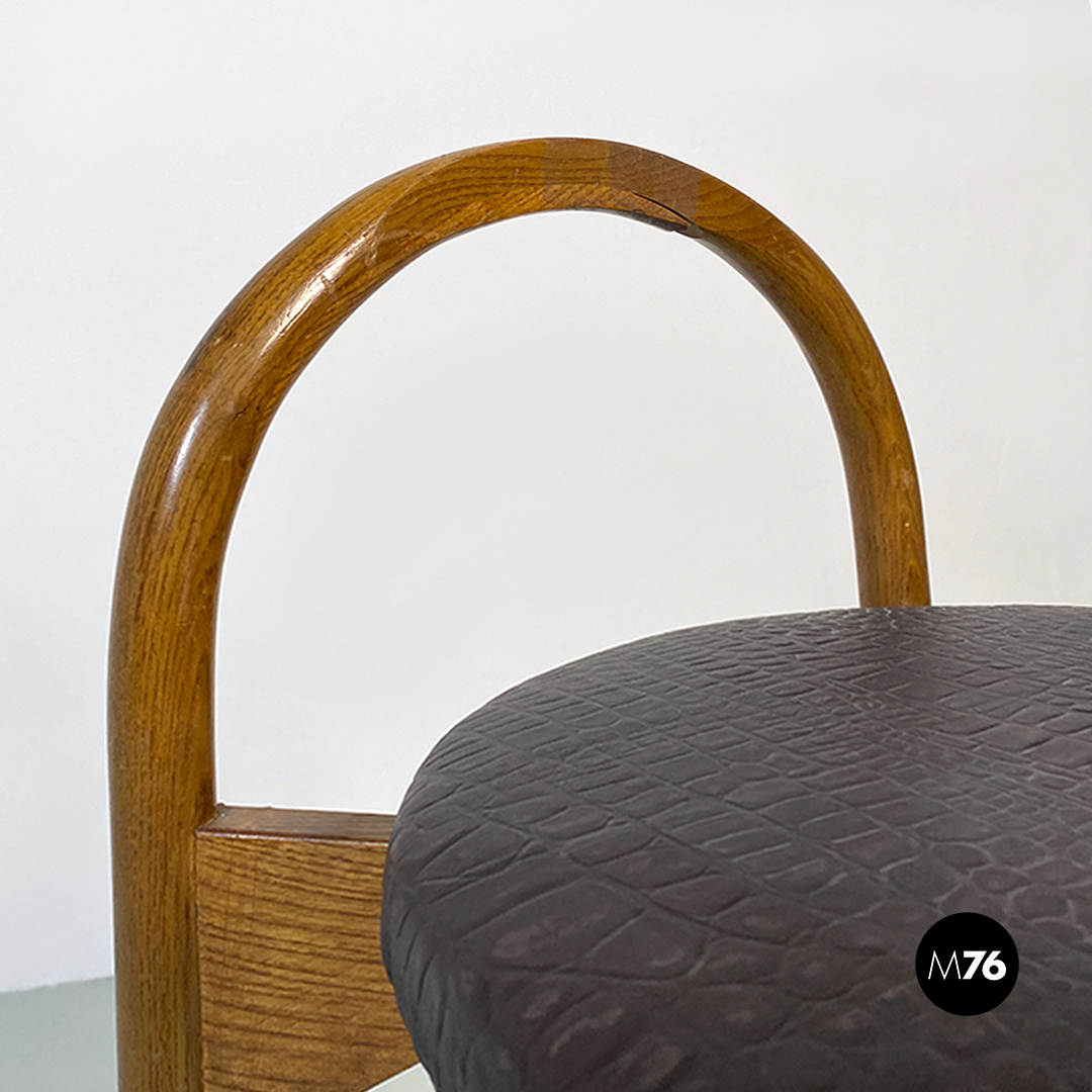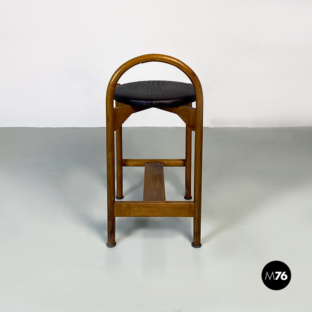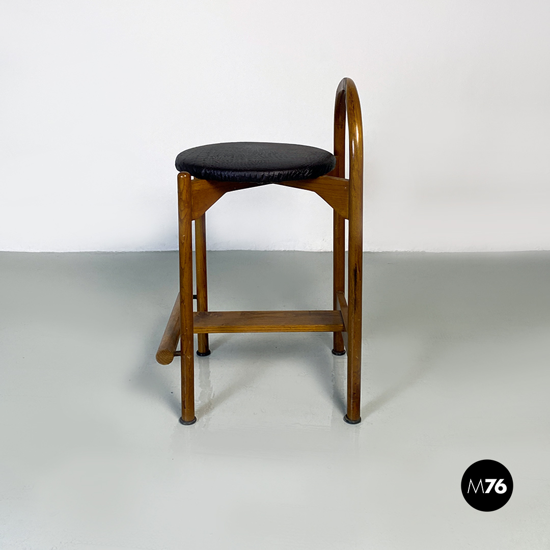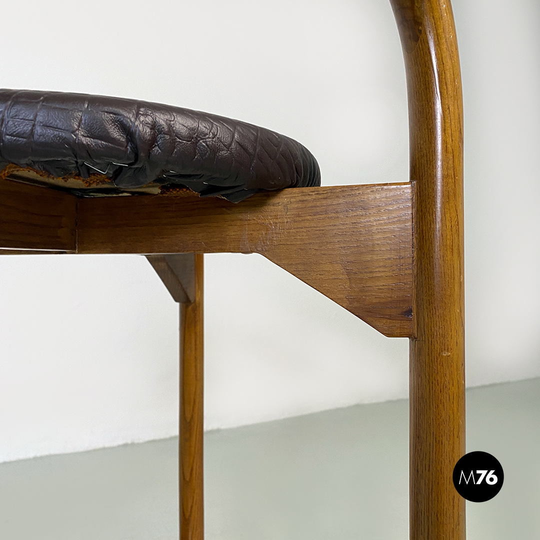 Sgabello in legno e finta pelle marrone, 1970 ca.