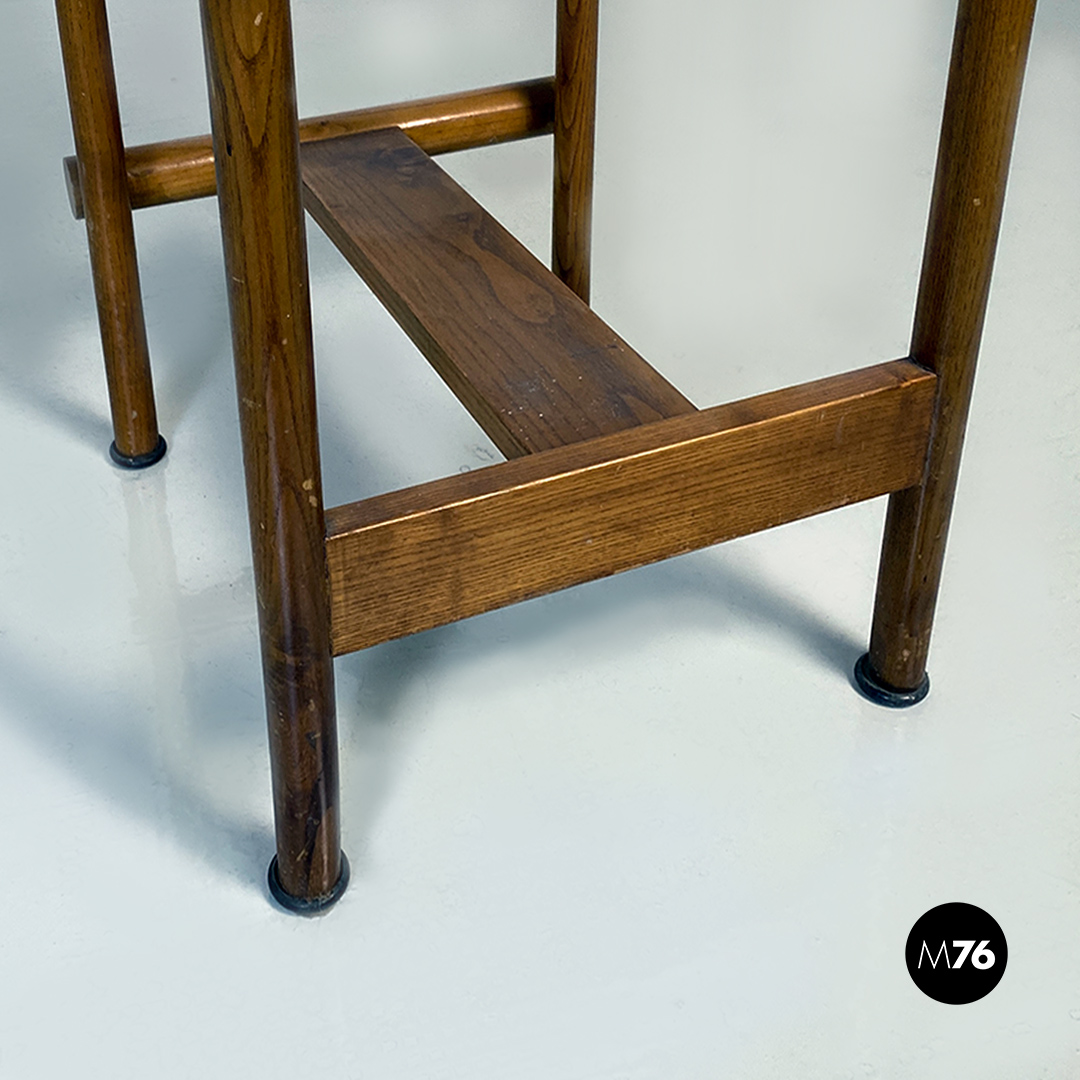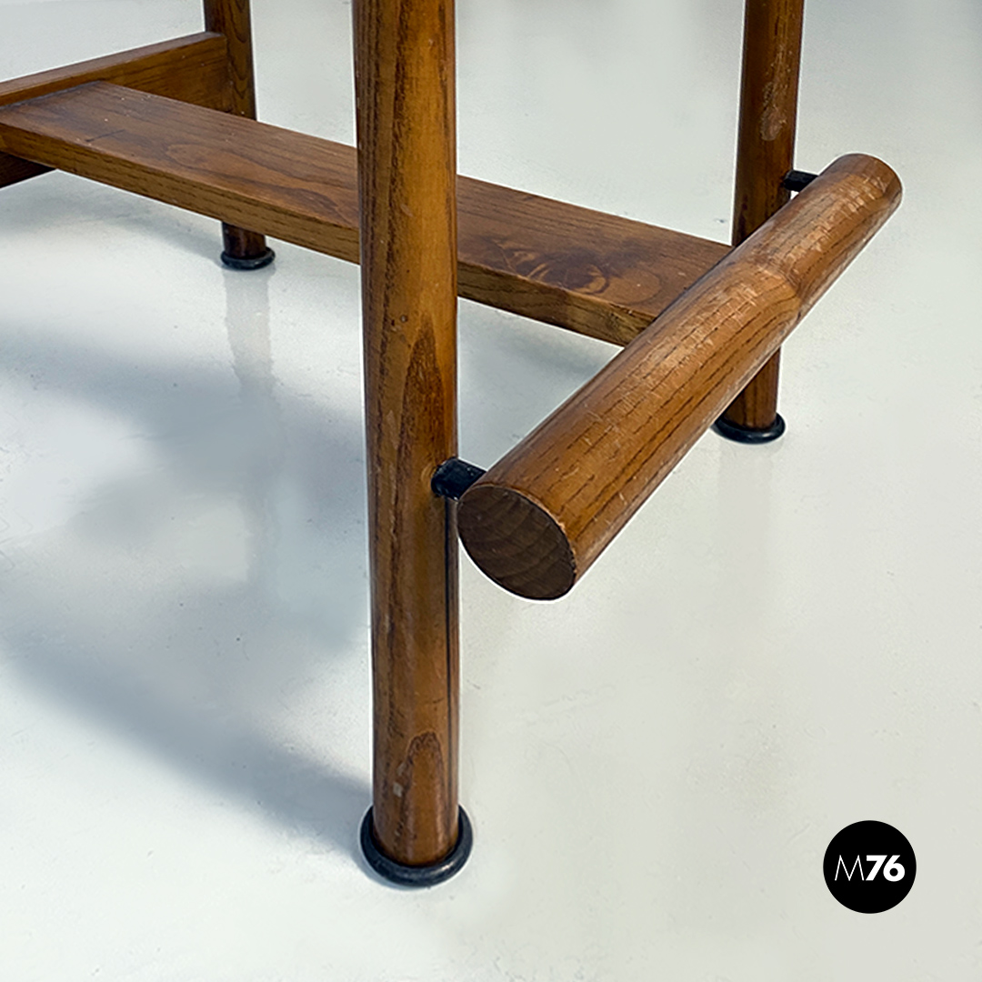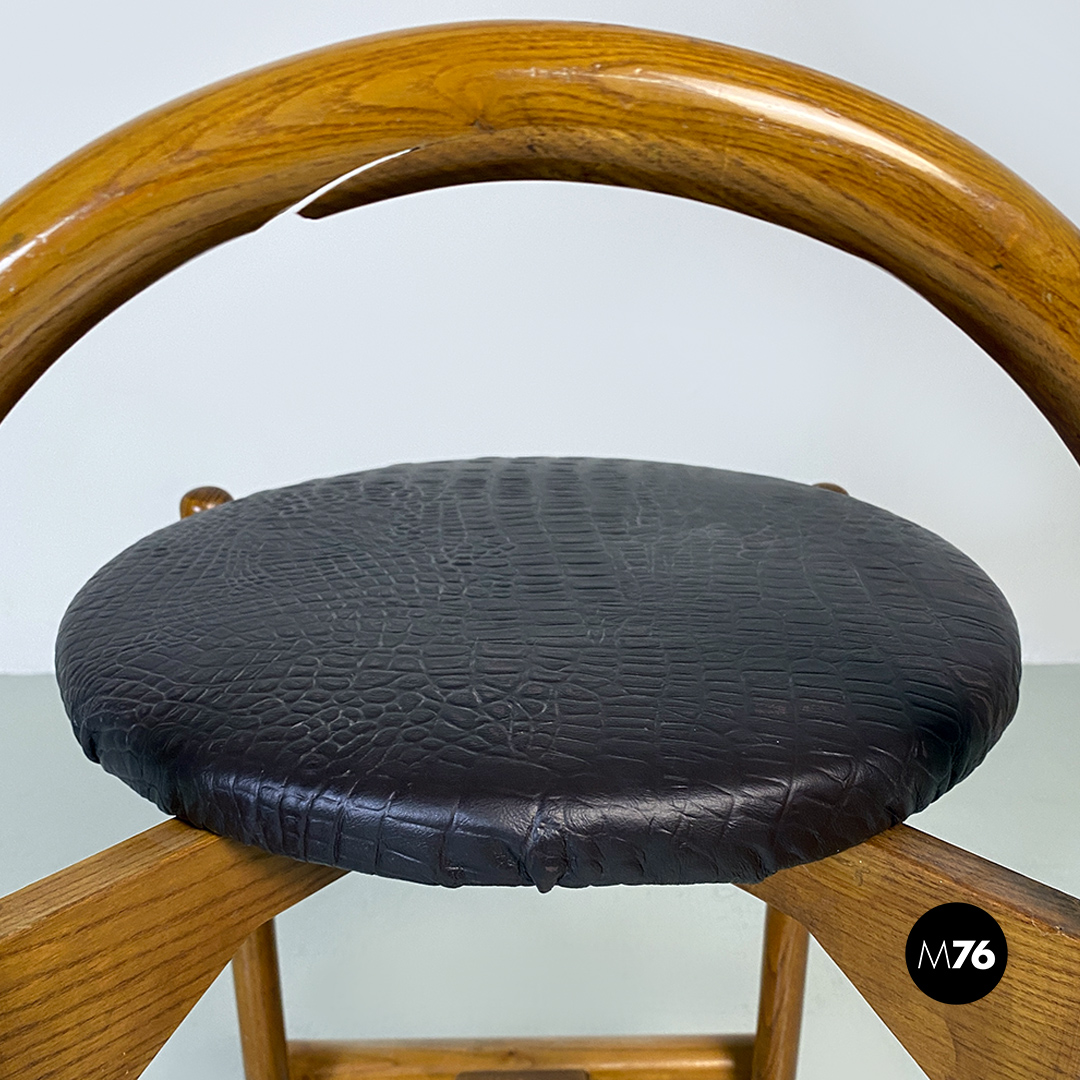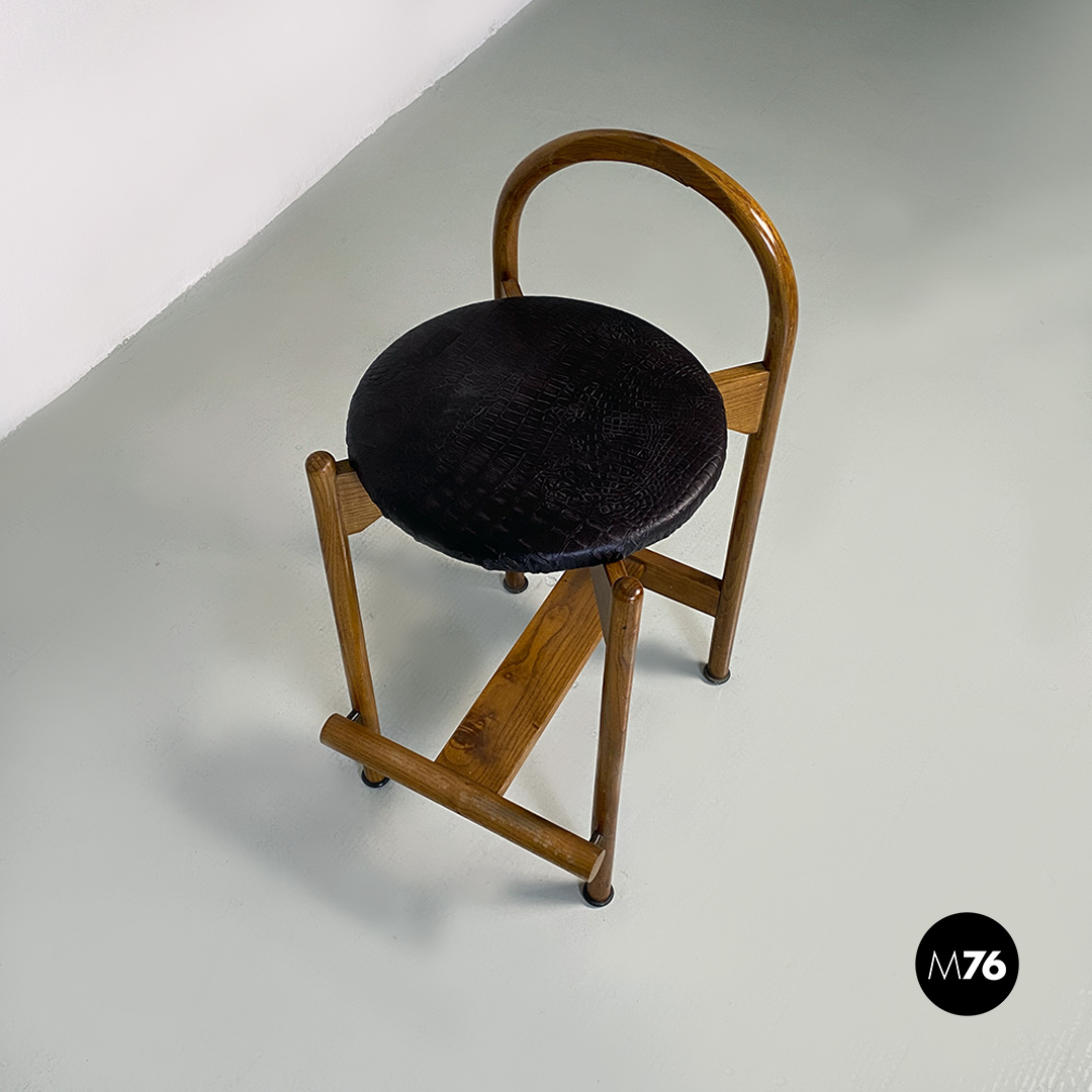 Sgabello in legno e finta pelle marrone, 1970 ca.
