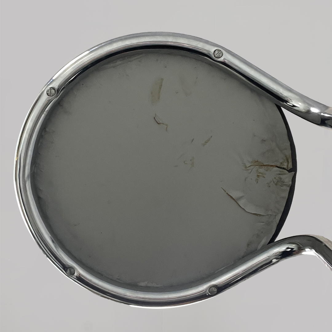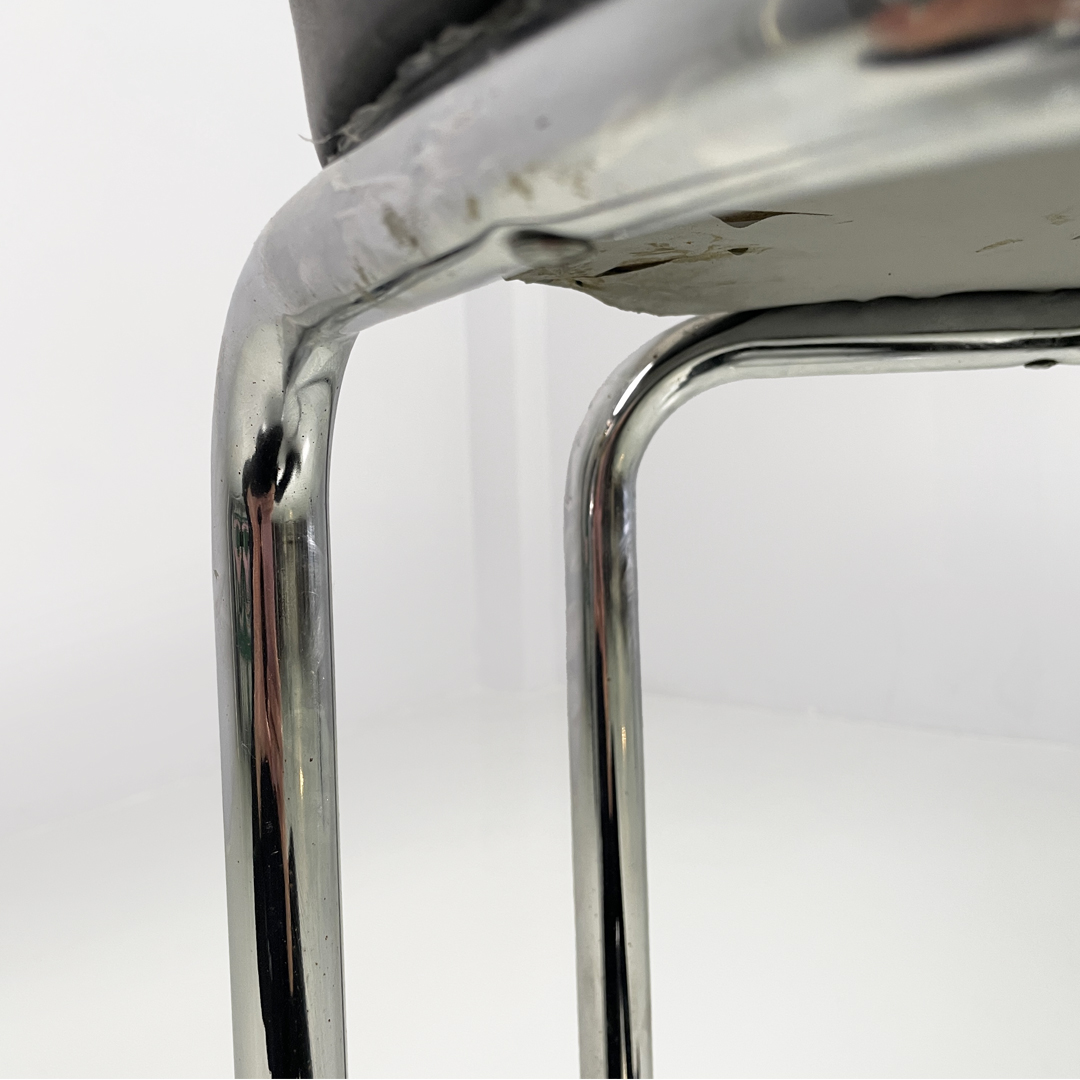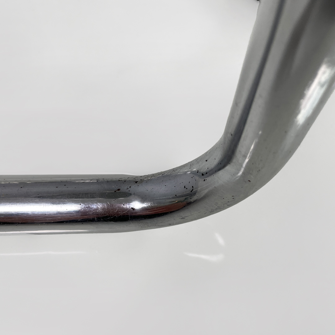 Condizioni vintage. La seduta presenta segni sparsi. Il metallo presenta segni e macchie dati dal tempo.