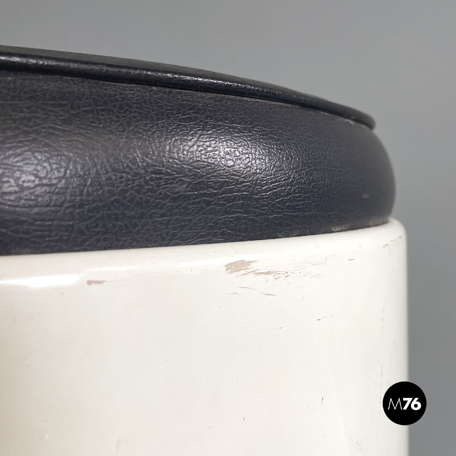 Sgabello in plastica bianca e pelle nera, 1970 ca.
