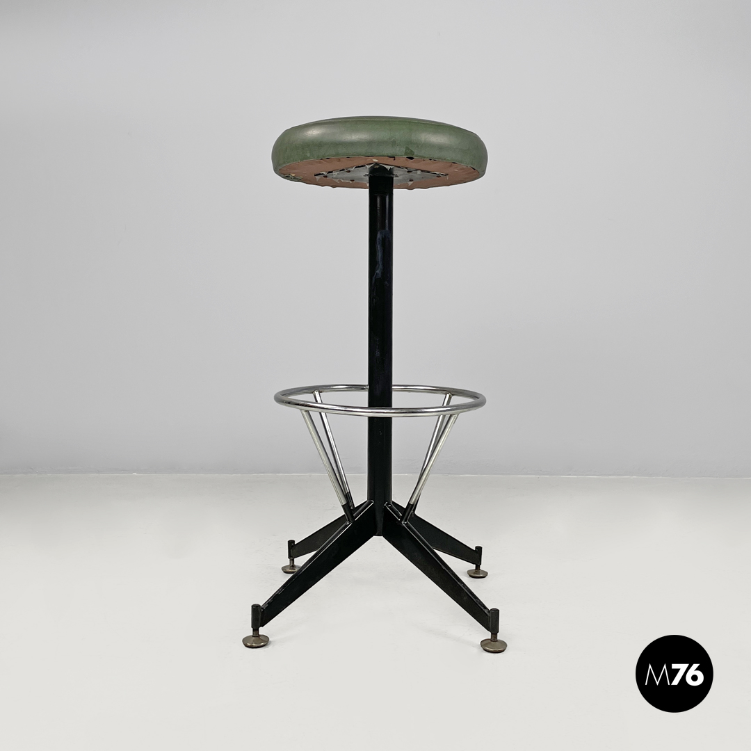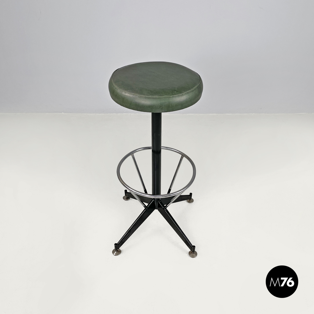 Sgabello in similpelle verde e metallo nero, 1960 ca.
